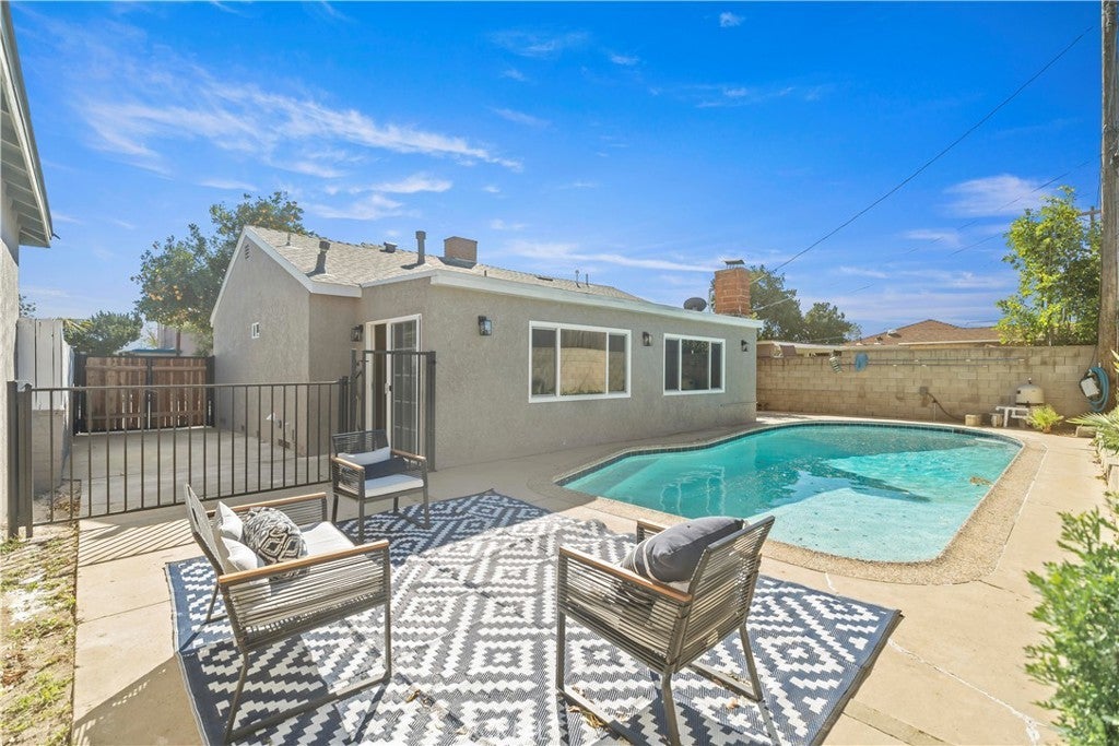 Welcome to 14519 Dyer St in Sylmar — A fully remodeled, move-in ready pool home featuring a permitted 4-bedroom, 3-bathroom floor plan with an oversized primary suite and another en-suite bedroom. This home has been completely renovated with major system upgrades, including a new electrical panel, new HVAC system, and new windows for improved comfort and energy efficiency. Interior upgrades include new waterproof flooring, a brand-new modern kitchen, and fully remodeled bathrooms with stylish finishes throughout. The open-concept design offers a spacious kitchen with center island that flows seamlessly into the family room — perfect for everyday living and entertaining. Step outside to your private backyard oasis featuring a swimming pool and mature fruit trees, including orange, tangerine, and guava trees. Conveniently located near parks, schools, shopping, dining, and major freeways, offering both neighborhood charm and easy commuting access. A rare opportunity to own a fully upgraded home with resort-style outdoor living.
