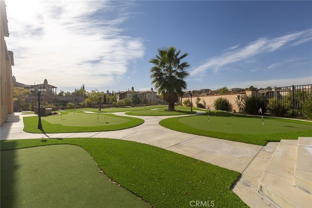 Perched high in the hills in a quiet neighborhood, this stunning two-story residence offers an exceptional blend of luxury, space, and privacy. With 7 bedrooms, including a primary suite, a Jack and Jill configuration, and an attached upstairs guest quarters with its own private staircase, this home is thoughtfully designed to accommodate a variety of lifestyles. The 7 full bathrooms and 2 half bathrooms ensure comfort for family and guests alike. Designed for both relaxation and entertainment, the property features a 22-hole putting green complete with 2 sand bunkers, perfect for golf enthusiasts. The central outdoor courtyard adds to the serene ambience, while the expansive windows and high ceilings flood the interior with natural light. The heart of the home is a spacious kitchen, complemented by an attached butler pantry and a dedicated kitchen office. A 3-car garage provides ample storage and convenience. Whether you're enjoying quiet evenings in this peaceful hillside retreat or hosting gatherings in the thoughtfully designed spaces, this home offers it all.