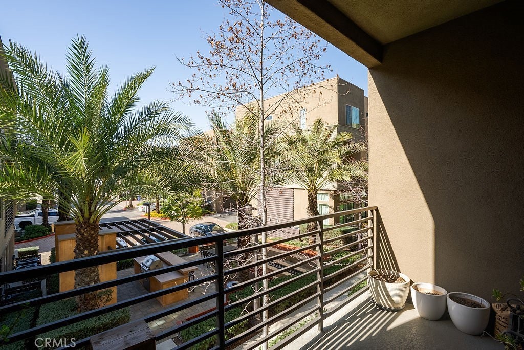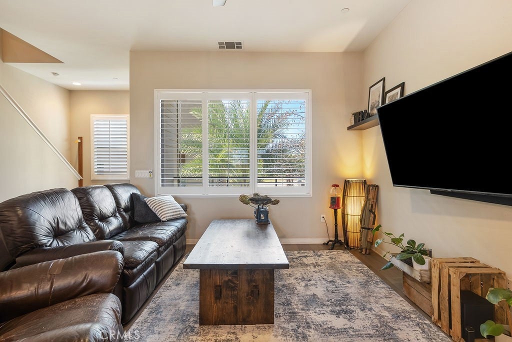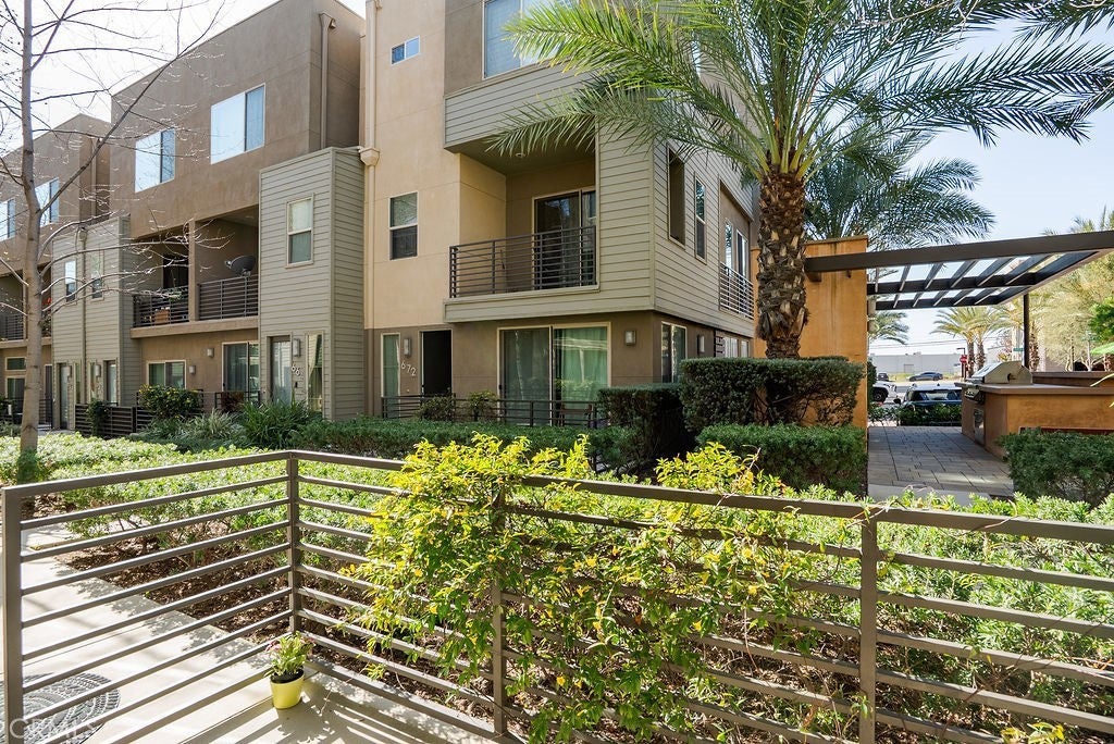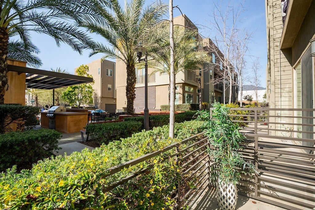 Built in 2017 and impeccably maintained, this contemporary multi-level townhome offers comfort, style, and breathtaking views of the San Gabriel Mountains. Thoughtfully designed by the builder to maximize light and scenery, the community showcases timeless modern architecture you’ll love. The first level features direct garage access and a versatile room ideal for a home office or additional bedroom, complete with a private patio, ADA-compliant full bathroom, custom shades, and ample flexibility. The second level opens to a bright and airy living space anchored by a sleek modern kitchen with stainless steel appliances, white cabinetry, and elegant stone granite countertops. A spacious pantry offers additional storage or the perfect spot for a custom coffee station. Step out onto the living room balcony to enjoy your morning coffee with peaceful community views. A convenient guest bathroom on this level makes entertaining easy.Upstairs, the third level boasts two generously sized primary suites, each featuring deep walk-in closets, double-sink vanities, and beautiful mountain views. A dedicated laundry room with storage sits conveniently between the suites. Natural light fills every level, enhancing the open layout. Custom plantation shutters accent the windows, complementing the rich wood flooring and light-colored carpeting throughout. Residents enjoy resort-style amenities including a community pool and BBQ areas, all while being just minutes from Target, shopping, dining, the mall, and quick access to the 10 and 210 freeways.