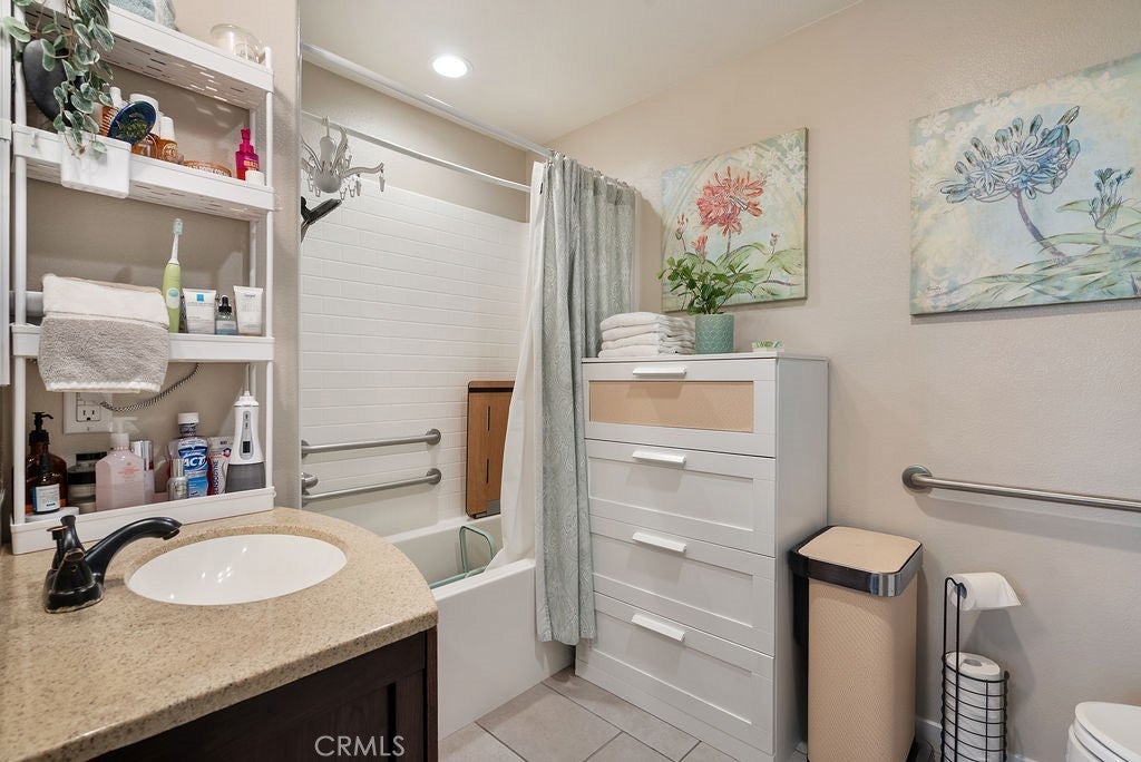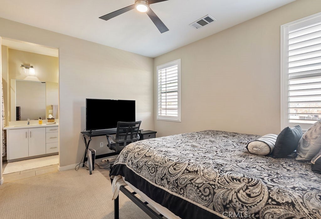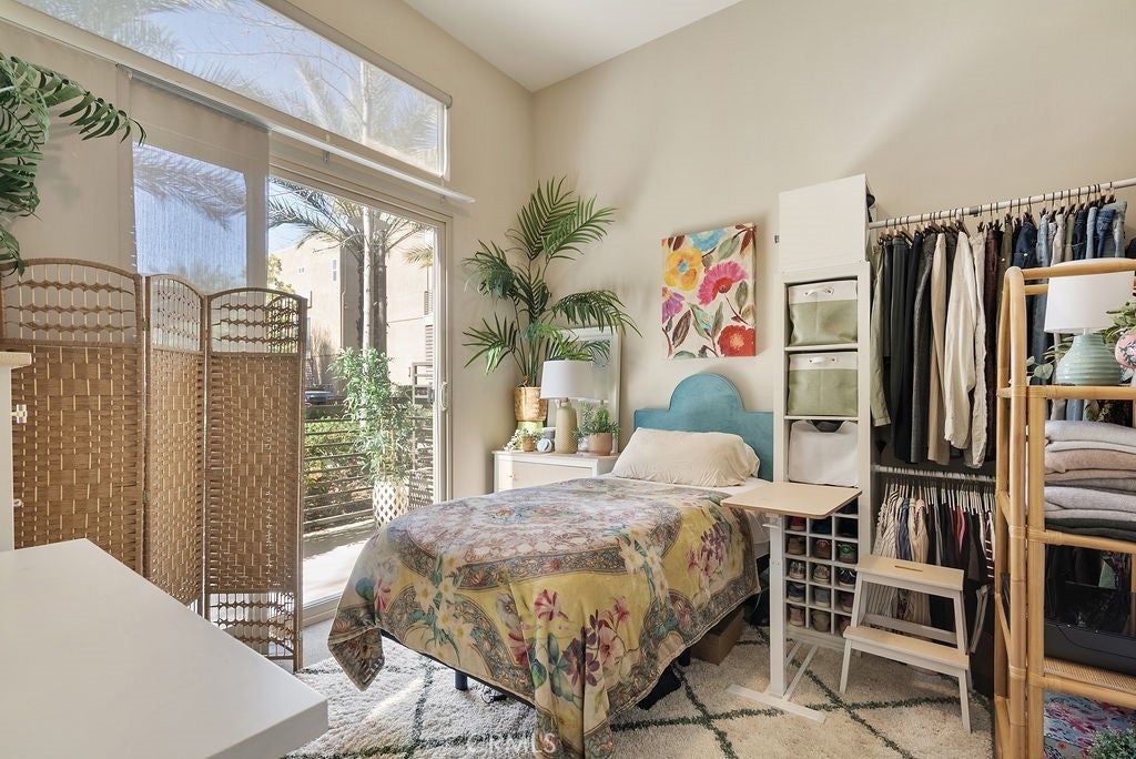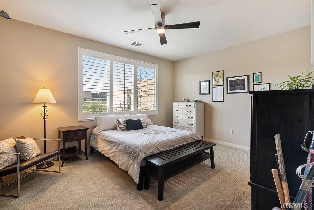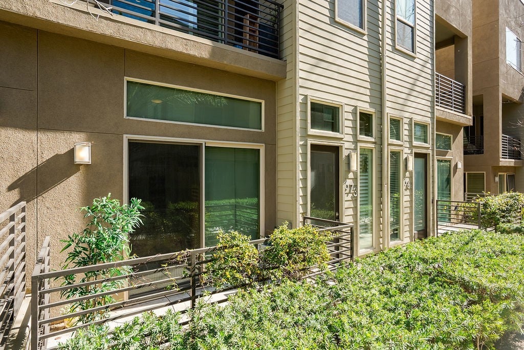 Built in 2017 and impeccably maintained, this contemporary multi-level townhome offers comfort, style, and breathtaking views of the San Gabriel Mountains. Thoughtfully designed by the builder to maximize light and scenery, the community showcases timeless modern architecture you’ll love. The first level features direct garage access and a versatile room ideal for a home office or additional bedroom, complete with a private patio, ADA-compliant full bathroom, custom shades, and ample flexibility. The second level opens to a bright and airy living space anchored by a sleek modern kitchen with stainless steel appliances, white cabinetry, and elegant stone granite countertops. A spacious pantry offers additional storage or the perfect spot for a custom coffee station. Step out onto the living room balcony to enjoy your morning coffee with peaceful community views. A convenient guest bathroom on this level makes entertaining easy.Upstairs, the third level boasts two generously sized primary suites, each featuring deep walk-in closets, double-sink vanities, and beautiful mountain views. A dedicated laundry room with storage sits conveniently between the suites. Natural light fills every level, enhancing the open layout. Custom plantation shutters accent the windows, complementing the rich wood flooring and light-colored carpeting throughout. Residents enjoy resort-style amenities including a community pool and BBQ areas, all while being just minutes from Target, shopping, dining, the mall, and quick access to the 10 and 210 freeways.