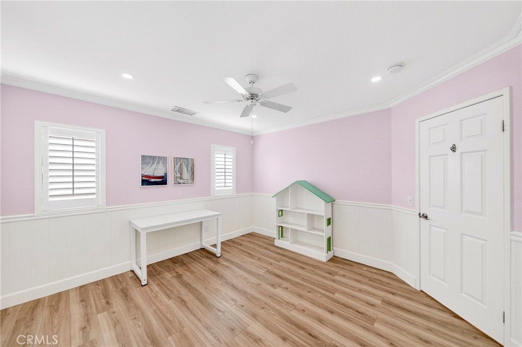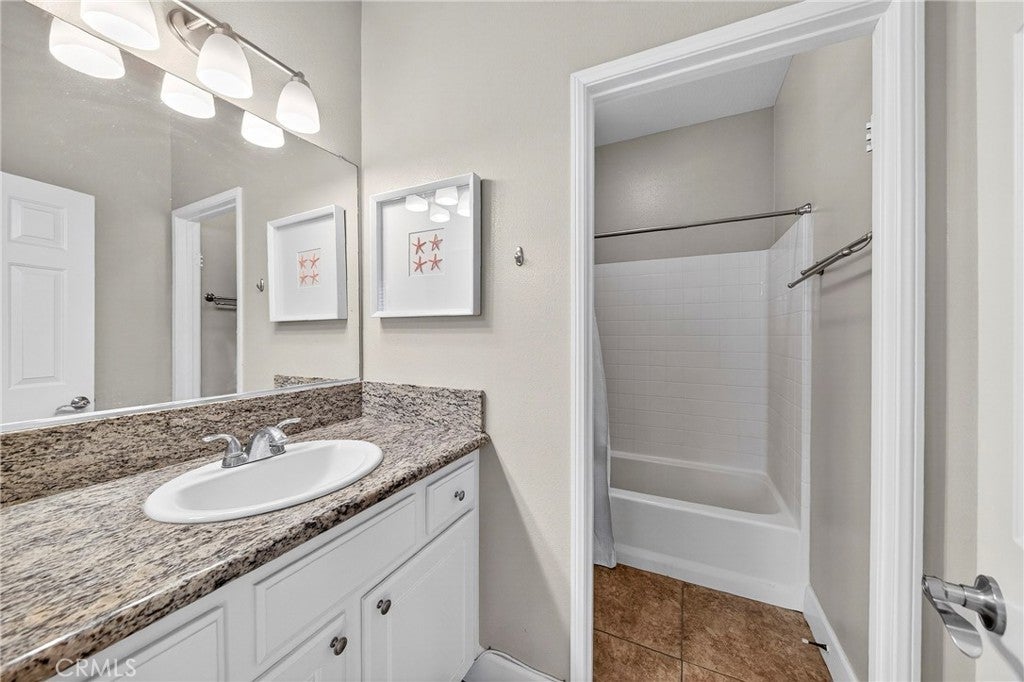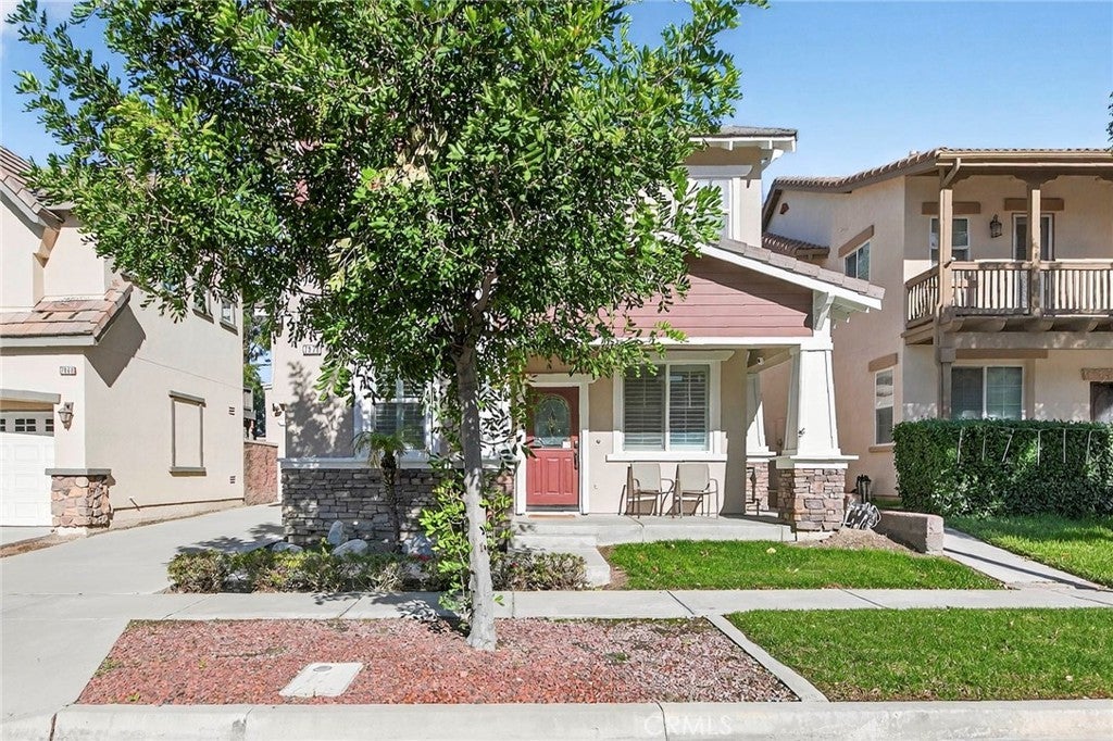 Beautifully upgraded two-story home in the desirable Preserve Community. This home offers 4 bedrooms, 3 bathrooms, a loft, a 2-car garage, and a long driveway. The formal living room creates a welcoming entry, while the downstairs bedroom with a full bathroom is ideal for guests or a home office. The open kitchen connects directly to the family room and features a center island, granite countertops, white shaker cabinets, pendant lighting, and stainless steel appliances. The spacious family room includes a fireplace and ceiling fan. The primary bedroom offers a large walk-in closet and a private bathroom with dual sinks, soaking tub, separate shower, and an enclosed toilet area. Upgrades throughout the home include wood-look flooring, custom interior paint, recessed lighting, ceiling fans, shutters, mirrored closet doors, and a 220-volt outlet for electric vehicle charging. The garage provides direct interior access, and the extended driveway allows for multiple vehicles. The private backyard features low-maintenance landscaping with ample space for entertaining. Residents have full access to the Preserve Master HOA amenities, including on-site management and all three clubhouses—Parkhouse, Gardenhouse, and Meadowhouse. Community features also include three pools and spas, tennis courts, fitness centers, walking trails, and a dog park. Excellent schools: Cal Aero Preserve Academy (K-8) and Chino Hills High School. One pet under 20 lbs permitted.