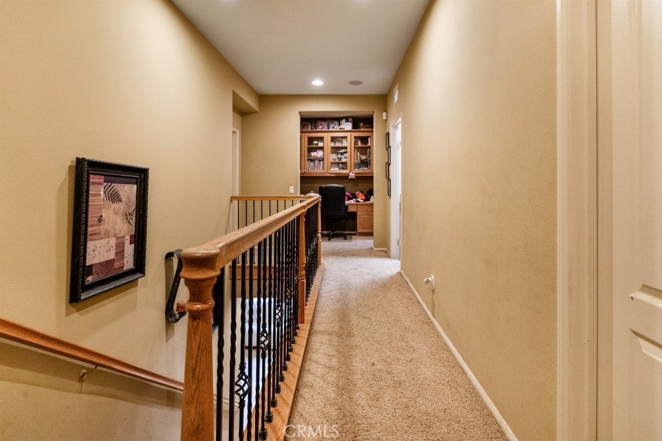 First time on the market, one of the original MODEL HOMES in the desirable Chantrelle Community of The Colonies in Upland. Nearby shopping and freeway access. Sited on a generous lot at the gentle curve of Richards Pl., this elegant residence welcomes you with a long driveway and a three-car garage, offering abundant parking and curb appeal. Thoughtfully designed for entertaining and everyday living, the main level features a flexible den ideal for a home office or guest suite, a dramatic living room with a cinematic projector screen, and an open dining area flowing into the chef-ready kitchen. Upstairs are four spacious bedrooms including a serene primary suite with a luxurious private bath (separate tub and shower), a large walk-in closet, and a balcony with sweeping mountain views. Two bedrooms share a convenient Jack-and-Jill bath with individual sinks, while the fourth bedroom enjoys its own private bath, perfect for family or guests. The oversized laundry room includes a utility sink and dedicated hang-dry space for maximum convenience. Outside, the backyard is one of the best setups in The Colonies: a large wood patio, mature trees and lush landscaping create a private oasis for relaxing and entertaining. This meticulously maintained model home combines thoughtful upgrades, generous living spaces and an unbeatable lot, don’t miss your chance to make it yours.