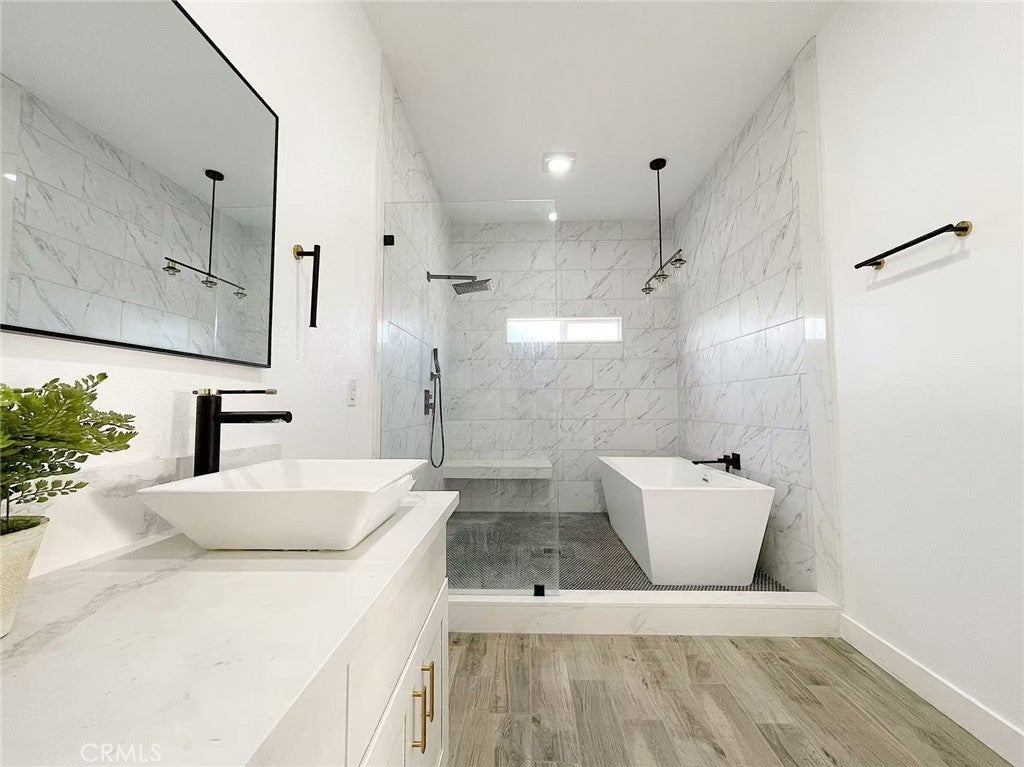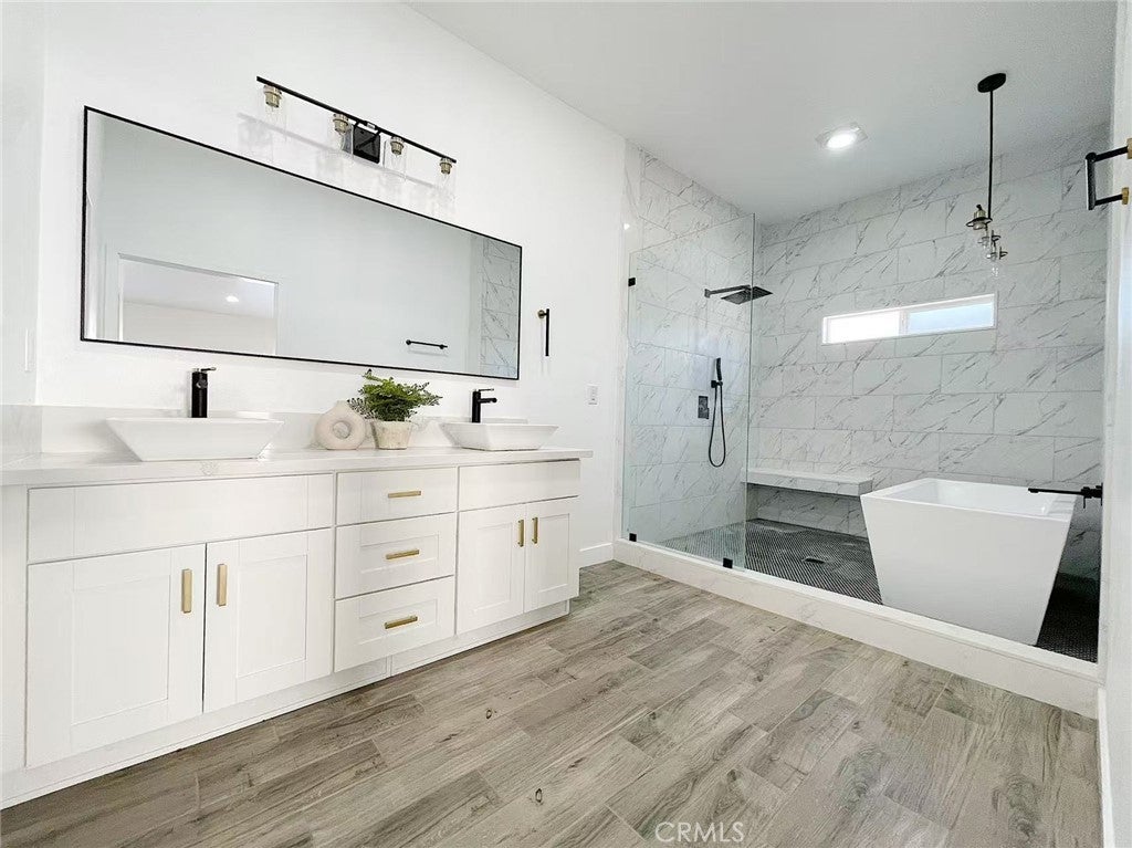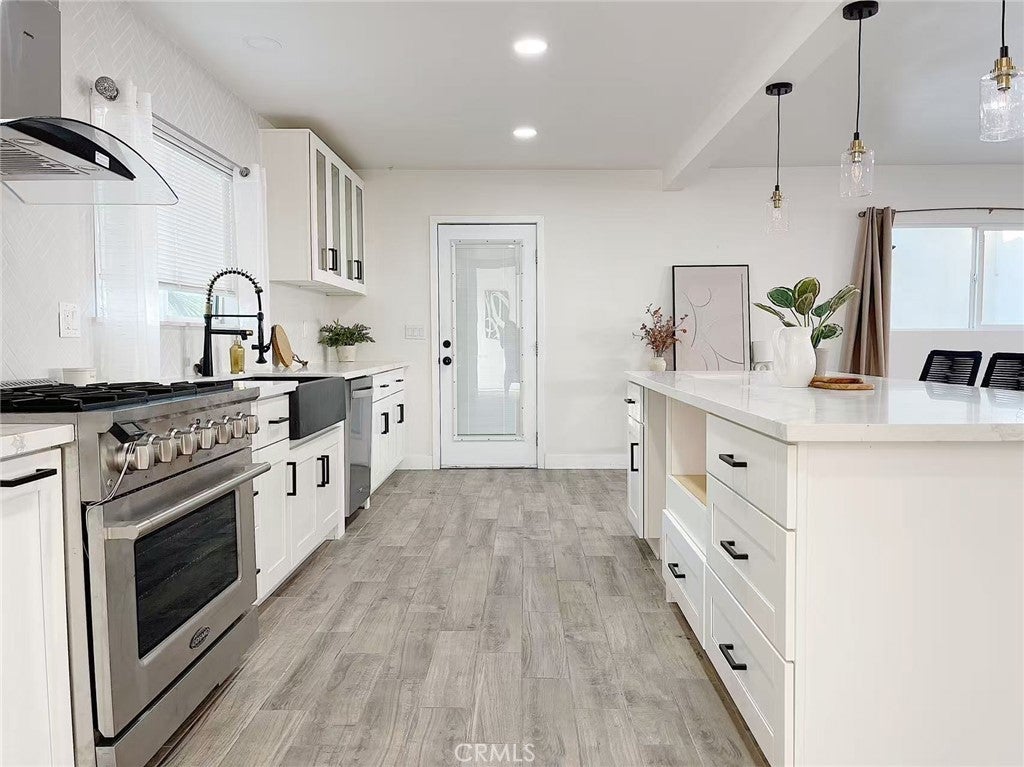 Beautiful remodeled Home. The modern entry opens to an elegant remodeled kitchen and dining area that will accommodate your large family gatherings. You will find stainless steel appliances and countertops with coordinating backsplash. The open living room boasts an abundance of light emanating from the sliding glass doors, plus a fireplace. New luxury flooring throughout. The primary oversized bedroom with an ensuite is located off the main living area. This split floor plan hosts an additional three bedrooms, one with its own ensuite. The attached two-car garage.