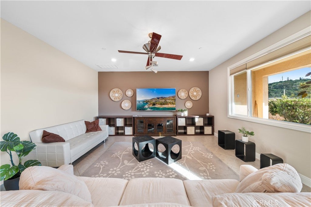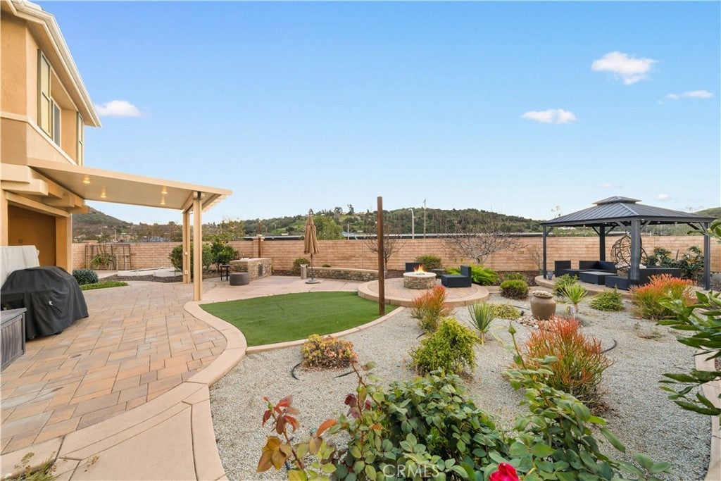 Welcome to 2023 Meadow Vista Place, a beautifully maintained 2016-built home tucked at the end of a quiet cul-de-sac in North Escondido, offering privacy and a peaceful neighborhood setting. Inside, the bright and spacious living room features soaring ceilings that create an open and inviting atmosphere. A beautifully designed kitchen anchors the main living areas, blending comfort and functionality for both everyday living and effortless entertaining. The rare tandem garage provides three parking spaces with dual access — including direct entry into the pantry and an additional hallway entrance for daily convenience. This home is equipped with solar, including a builder-installed system that has been fully paid off and an additional leased system with a low monthly cost that is transferable to the new owner. Enjoy enhanced comfort with a whole house fan. The beautifully landscaped backyard is designed for relaxation and gatherings, featuring a California sunroom, patio, outdoor fireplace perfect for s’mores nights, gazebo, outdoor kitchen counter, BBQ area, a charming fountain, and many fruit trees. The expansive side yard offers exceptional versatility, perfect for recreation such as 3-on-3 basketball or a ping pong setup. The flexible floor plan includes a bedroom on the main level, ideal for guests or multigenerational living. Upstairs features a versatile den with built-in desks, perfect for a home office or study space, along with a dedicated laundry room complete with sink, built-in cabinets, and shelving for added storage and convenience. The spacious primary suite offers a large walk-in closet and a well-appointed bath with double sinks, soaking tub, and separate shower. A secondary ensuite and two additional bedrooms — all with walk-in closets — provide ample space for family or work-from-home needs. Located within 10 minutes from the highly regarded Escondido Charter High School & Classical Academy High School, ranked among the top charter high schools in California, this home is positioned in a community where education is highly valued and families prioritize access to strong academic opportunities. No mello-roos.