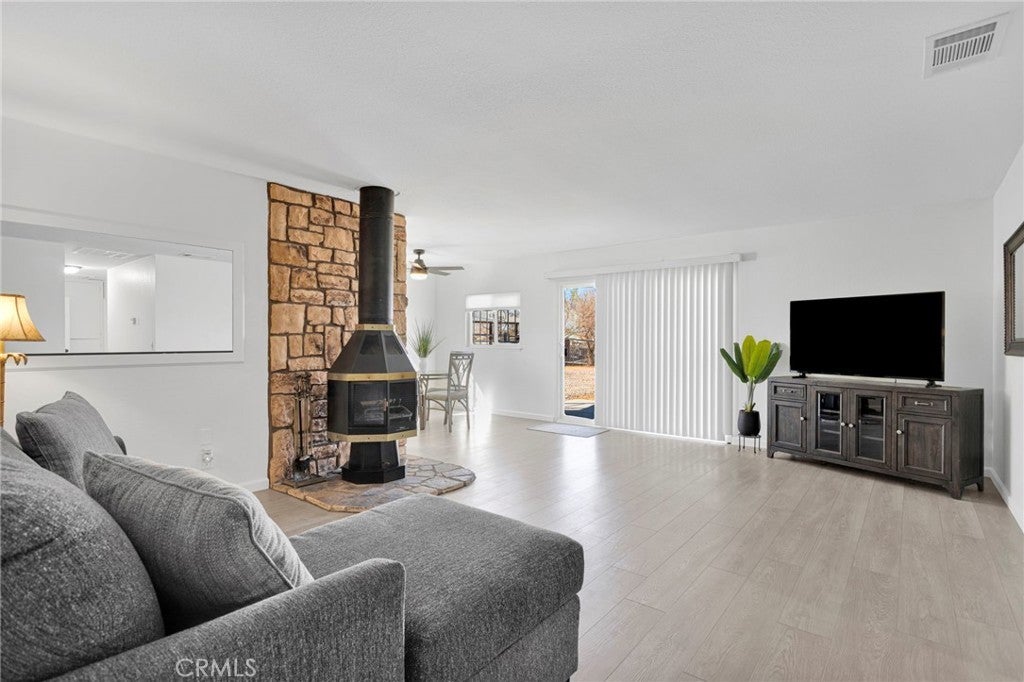 Opportunities like this don’t come along often. Welcome to 16020 Lime St. in Hesperia, a property offering space, privacy, and the freedom that comes with approximately one fully usable acre of land. This 3-bedroom, 2-bath home with approximately 1,153 sq ft has been updated with new flooring throughout and ceiling fans, creating a comfortable and inviting interior. The spacious living area is highlighted by a distinctive freestanding fireplace, adding warmth and character to the home. The kitchen provides ample cabinet storage and workspace, making it both functional and welcoming for everyday living. Step outside and you’ll immediately see what makes this property special. The fully fenced lot with cross-fencing offers flexibility for a variety of uses. Whether you need room for RV parking, recreational vehicles, equipment, animals, or outdoor hobbies, this property delivers. The RV drive-thru access allows easy entry to the rear of the property, and the expansive lot provides space for future possibilities such as additional structures, workshops, gardens, or expanded outdoor living areas. Enjoy wide-open desert skies, peaceful surroundings, and the privacy that acreage living provides while still being conveniently located near shopping, schools, and commuter routes. Properties with usable acreage, RV access, and this level of flexibility are increasingly hard to find.