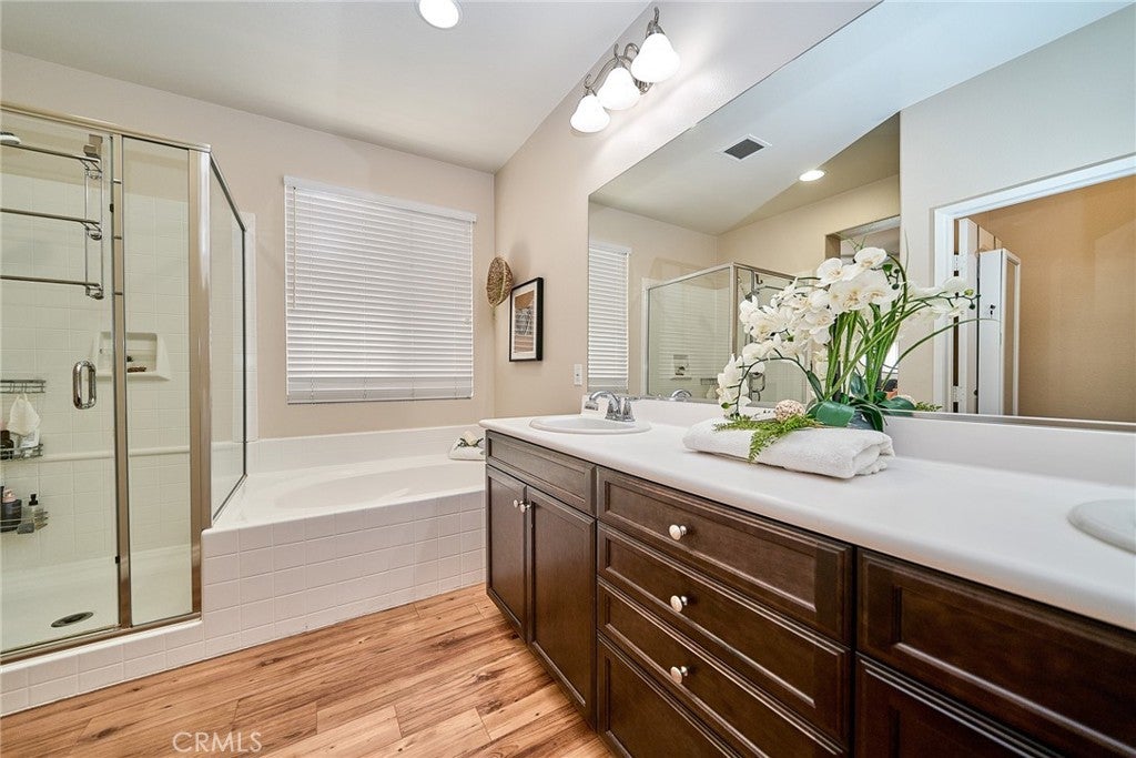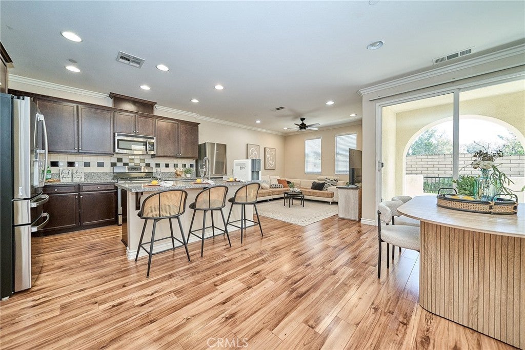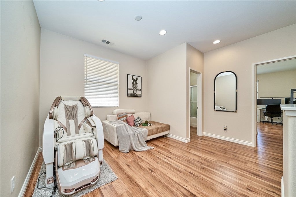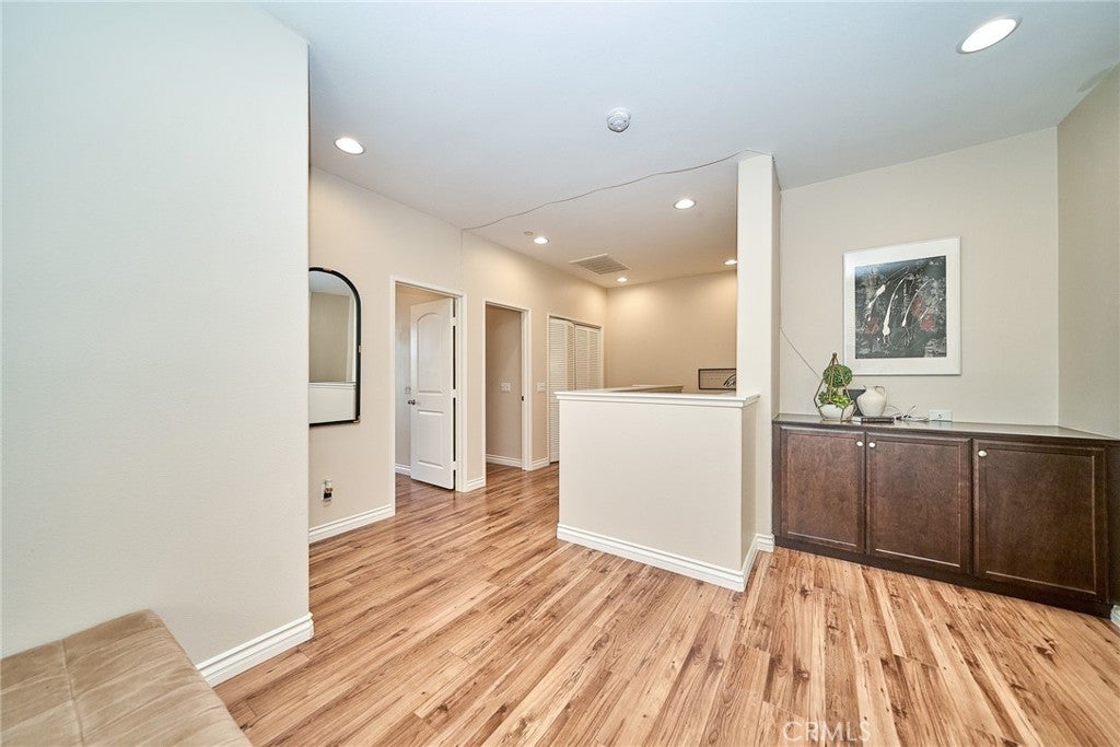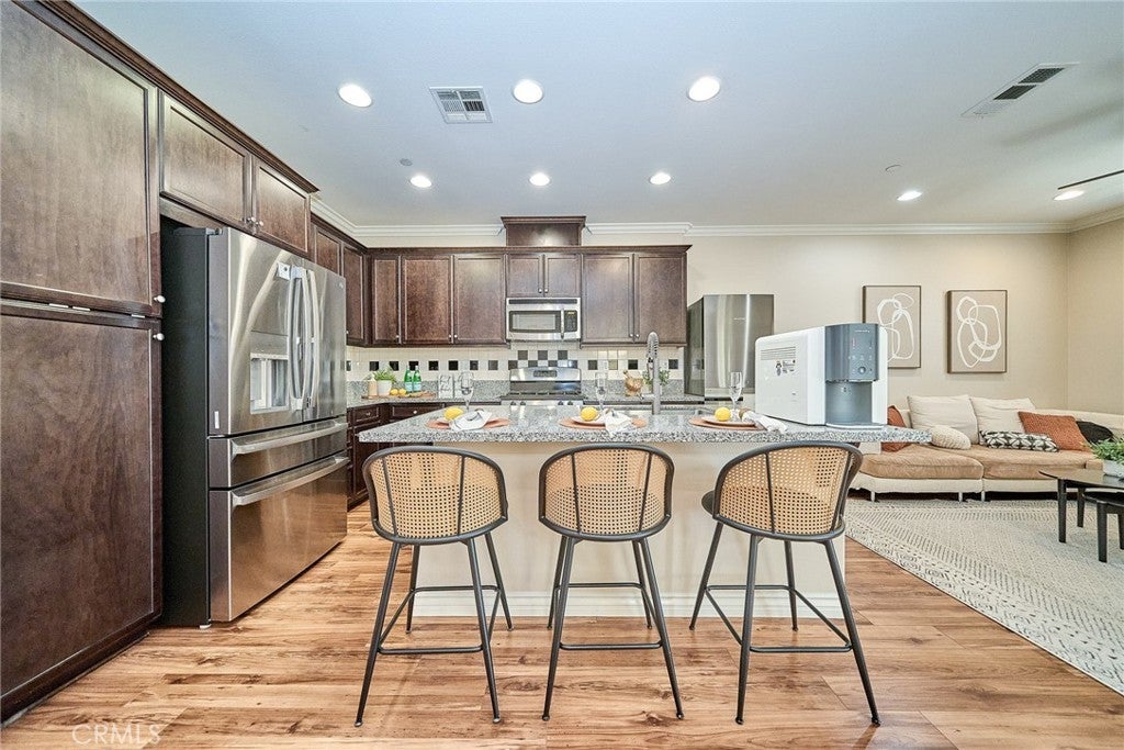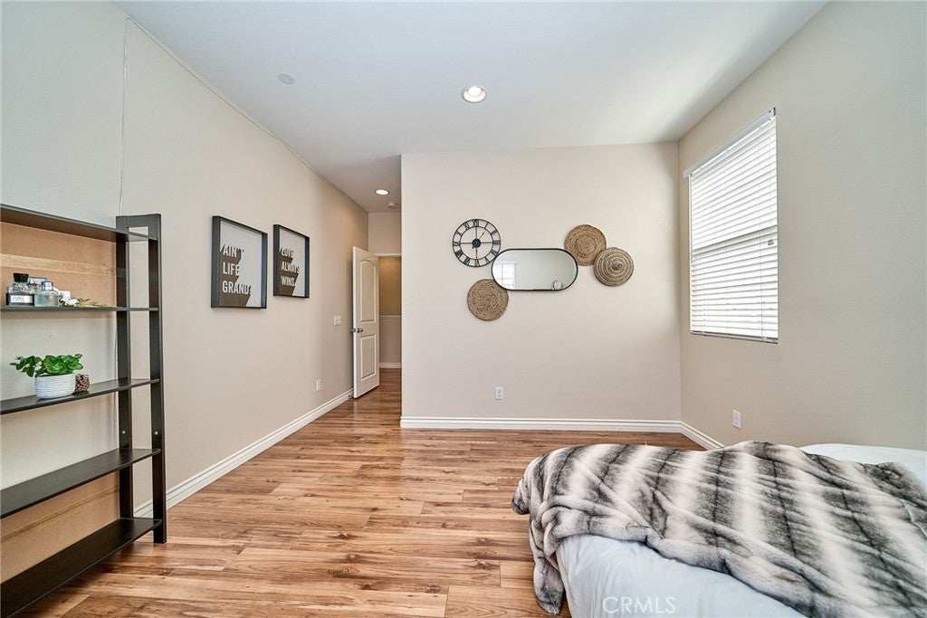 Welcome to this beautiful End Unit townhome, ideally situated on a premium corner lot in Elevage, one of the most desirable gated communities in Rancho Cucamonga. This beautifully appointed residence offers the perfect blend of style, comfort, and convenience. Residents of Elevage enjoy resort style amenities, including a sparkling pool and spa framed by swaying palm trees, as well as built-in BBQ areas that create a true everyday vacation atmosphere. Step inside to a stunning great room showcasing an open concept design, high ceilings, abundant natural light, and elegant laminate flooring throughout. The gourmet kitchen is thoughtfully appointed with granite countertops, an expansive center island, stainless steel sink, rich dark wood cabinetry, stainless steel appliances, and recessed lighting that enhances both form and function. The kitchen flows seamlessly into the dining area and spacious family room, where a large sliding glass door opens to your private patio, perfect for entertaining guests or enjoying peaceful evenings outdoors. Upstairs, you’ll find a versatile loft ideal for a home office or media space, a convenient laundry room with ample storage, a beautifully upgraded full bathroom, and two generously sized secondary bedrooms. The luxurious primary suite is privately tucked down the hall and features its own balcony retreat. Bathrooms throughout the home showcase tasteful upgrades and modern finishes. Additional highlights include direct access to a two-car attached garage and an energy-efficient tankless water heater. Ideally located just minutes from major freeways, premier shopping and dining at Victoria Gardens, outdoor recreation at Windrows Park, and within the highly acclaimed Etiwanda School District, this exceptional home offers the lifestyle you’ve been waiting for.
