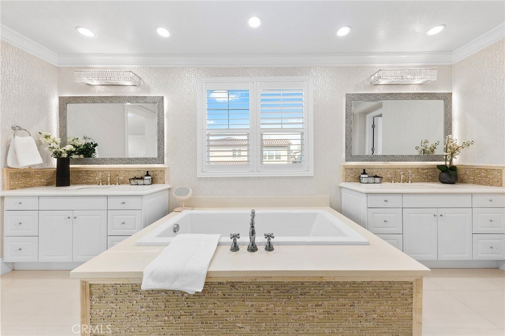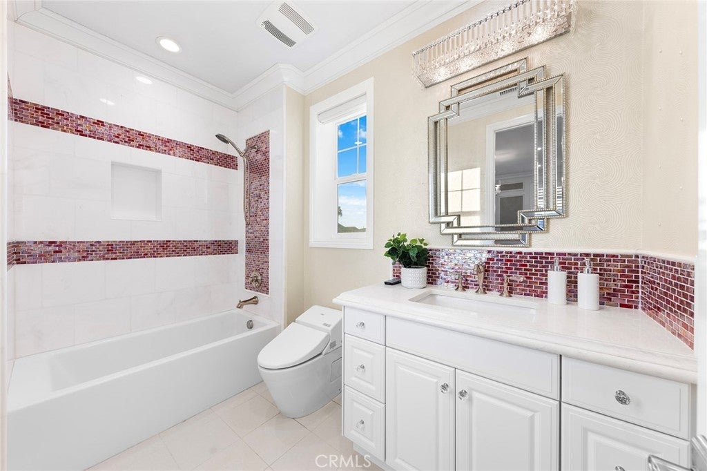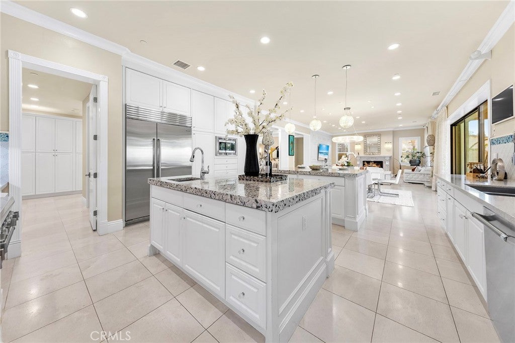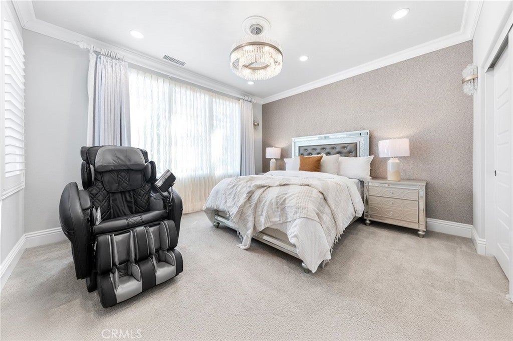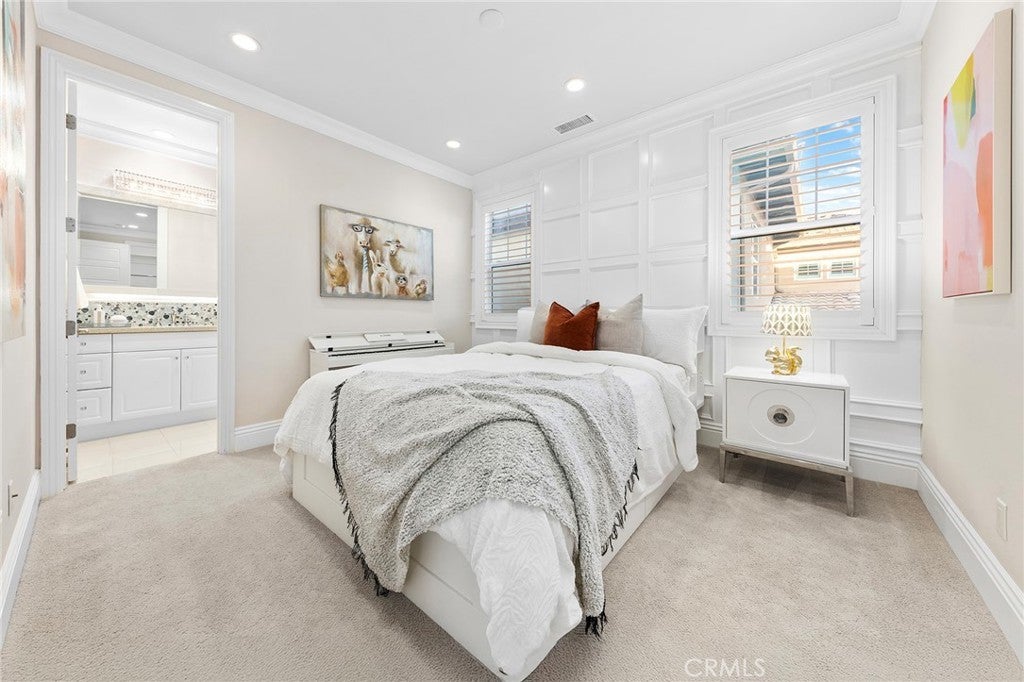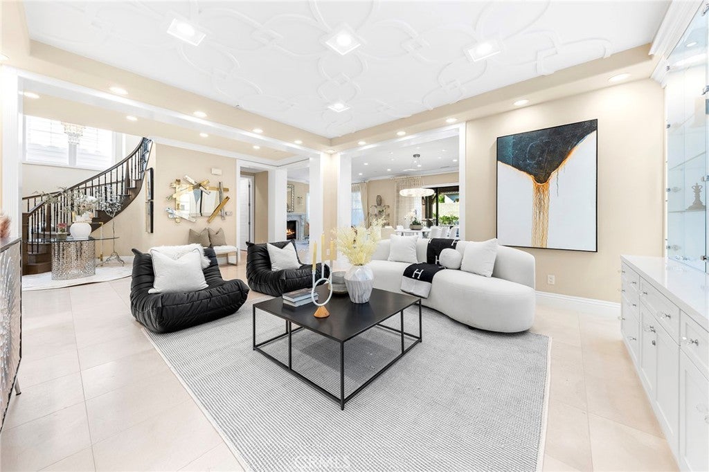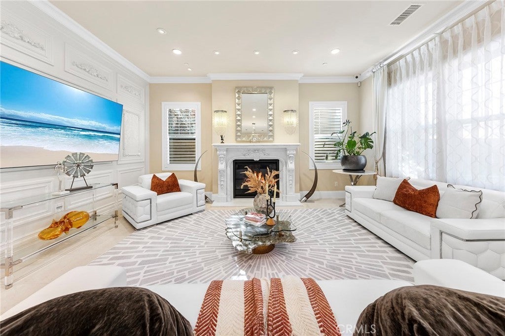 HUGE PRICE REDUCTION! PRICE TO SELL! MUST SEE TO BELIEVE! This customized and highly upgraded luxury home in The Great Park blends modern French aesthetics with European-imported materials, creating a truly unique and elegant living experience. Professionally designed by renowned interior designer w/over $1.7 million in upgrades. Largest Model in the Community, the home boasts the most desirable open floor plan with Imported natural stone and upgraded carpet. Kitchen opens to expanded great room w/ adjoining dining area & family room w/ built-in cabinets and High-end appliances. Large center islands with gorgeous quartz counter tops make the kitchen a great place not only for cooking but also for family gatherings and entertaining friends. Main floor bedroom & full bath, marble fireplace mantels, Italian made family room TV cabinet and upstairs with hardwood floors. Spacious master suite plus three additional en-suite bedrooms and an upstairs laundry room for added convenience. Expansive, flat backyard — a rare gem in Irvine — ideal for outdoor living and entertaining. Enhanced by $300K in Feng Shui-inspired landscaping with thoughtfully selected plants to promote prosperity and harmonious energy flow. Upgrades throughout include: Custom backsplash, Quartz Countertops, Subzero Refrigerator in Kitchen. Soundproof Media Room. Decorative wall panels in Great Room, inspired by Italian interior design. Marble Fireplace Mantle in Master Bedroom. Custom luxury furniture and draperies, transitional shades remote control for high ceiling & wood shutters. Custom 3D leather panels and wainscoting for Master Bedroom. Hydro massage walk in shower in Master Bathroom. Custom Wallpaper in every room. Crystal knobs for kitchen cabinets, Dining Room & Downstair Bathroom. Toto bidets in Master Bathroom. High-end European-imported crystal chandeliers and pendant lights, worth of 100k. Minutes from park/ pool, the newest shopping plaza The Canopy and award-winning Irvine schools.