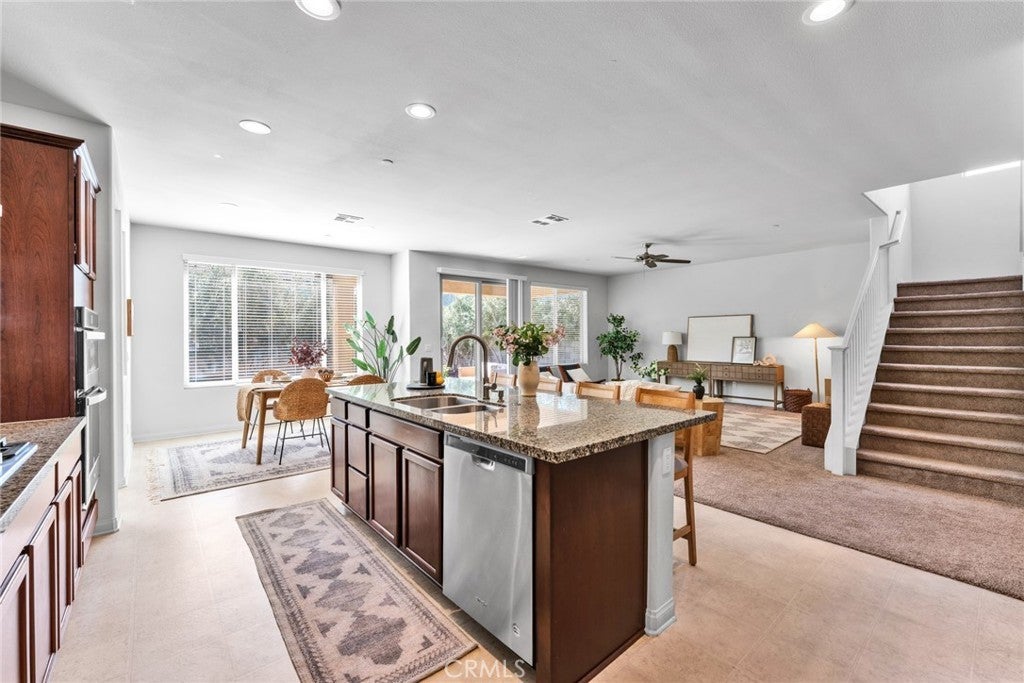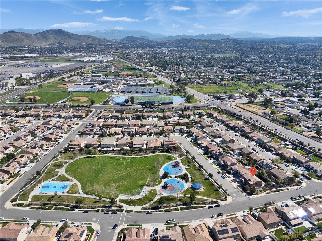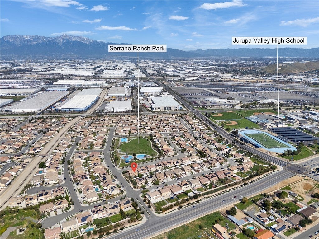 Welcome to the is stunning executive home in the highly sought-after community of Jurupa Valley. Step into this luxury living with this breathtaking Park front and Mountain view home. Its exceptional South-North home with 6-bedroom, 5-bathroom, every inch of this residence exudes elegance and sophistication. From the modern fixtures to the high-end finishes and open floor plan, no detail has been overlooked in creating a sophisticated and inviting atmosphere. The open concept living area is perfect for modern living, with the kitchen flowing seamlessly into the living room. The kitchen itself is a chef's dream, boasting sleek countertops, ample cabinet space, and a convenient island that doubles as a breakfast bar. Just off the main living space, you'll discover a private den, a versatile room perfect for a home office, study, or simply a quiet retreat for relaxation. This added space provides flexibility and functionality to suit a variety of needs. Two bedrooms has their own private bathroom on the main level. As you make your way upstairs, a large loft awaits, offering endless possibilities for a children's play area or a cozy entertainment space. And the primary bedroom, there is another suite and additional 2 bedrooms are Jack & Jill connected with a bathroom. Oversize two cars garage with tankless water heater. The backyard is perfectly tailored for entertaining, offering olive trees and lawns, expansive patio, and very appealing landscaped surroundings. Located in one of the top communities in Jurupa Valley, this executive home offers convenience at your fingertips. With proximity to shopping centers, schools, and easy access to freeways. Come experience the unique charm and spacious living this home provides!