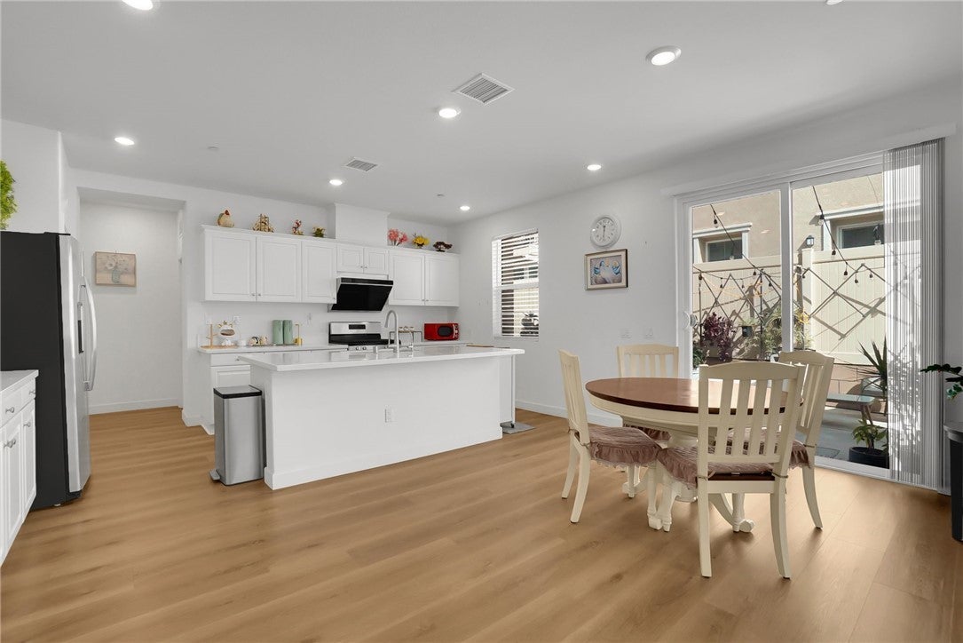 Built in 2022 and upgraded in 2025 with brand-new flooring throughout, this beautifully maintained 4-bedroom, 3-bath attached condo offers 1,837 sq ft of thoughtfully designed living space in a desirable North Upland community. A standout feature is the downstairs bedroom with a full bathroom, ideal for guests, multigenerational living, or a private home office. The open-concept layout connects the kitchen, dining, and living areas, creating a bright and welcoming space for everyday living and entertaining. Upstairs, the spacious primary suite offers comfort and privacy, while additional bedrooms provide flexible use options. The property also features a generously sized side yard, providing outdoor space suitable for gardening, planting vegetables or flowers, or creating a private outdoor retreat. Residents enjoy well-maintained community amenities including a swimming pool, BBQ area, dog park, and night patrol service, offering both lifestyle and added peace of mind. Conveniently located near parks, wholefood plaza, dining, and freeway access, this newer construction home delivers modern comfort, functional design, and community living all in one exceptional opportunity.