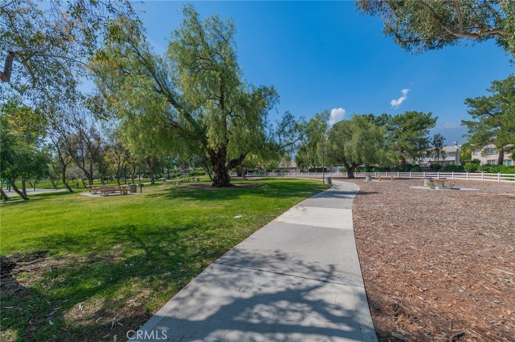 Welcome to your serene suburban oasis, nestled on a peaceful cul-de-sac in a highly desirable Rancho Cucamonga neighborhood. Making a striking first impression, this executive-style residence welcomes you with a grand double-door entry, soaring cathedral ceilings, and an elegant spiral staircase. Beautiful wood flooring flows gracefully through the formal living and dining areas, providing a sophisticated backdrop for hosting holiday gatherings or enjoying quiet evenings at home. At the heart of the home, the open-concept kitchen is thoughtfully designed with stunning granite countertops, a central island, double ovens, and a generous walk-in pantry. This bright and inviting culinary space seamlessly connects to the expansive family room, which is anchored by a cozy fireplace for effortless everyday living. Adding to the floor plan's incredible versatility is a highly sought-after main-floor bedroom and full bathroom, creating an ideal setup for a secluded home office or a comfortable suite for overnight guests. Upstairs, your private sanctuary awaits in the expansive primary retreat, complete with a massive walk-in closet and a spa-inspired en-suite bathroom featuring a luxurious soaking tub. Outside, the backyard extends your living space into the fresh Southern California air, showcasing a large covered patio that is absolutely perfect for weekend barbecues and al fresco dining. Complete with an attached three-car garage, this home champions an active and convenient lifestyle. You will love being within walking distance of Victoria Groves Park and the scenic Pacific Electric Trail, while premier shopping and dining at Victoria Gardens and top-rated local schools are just minutes away.