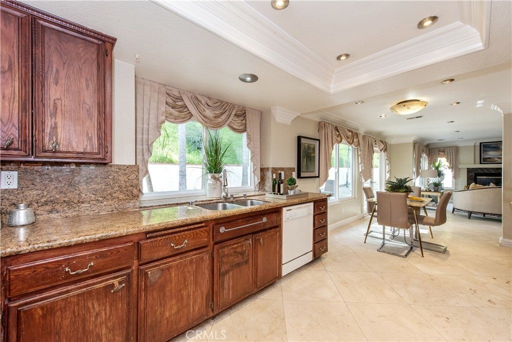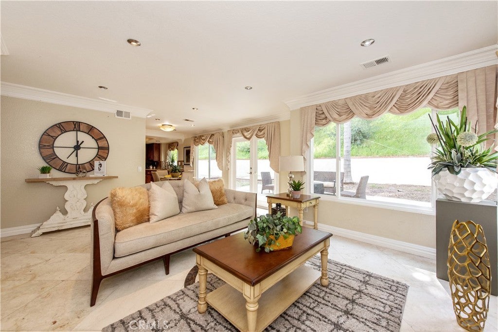 Welcome to this stunning retreat tucked away on a quiet street in the highly sought-after Sunrise Hill neighborhood of Rowland Heights. As you step inside, you are instantly greeted by soaring vaulted ceilings in the living room, elegant marble flooring, and an abundance of natural light that creates an airy, inviting atmosphere. The thoughtful floor plan is designed for both elegant entertaining and comfortable daily living, featuring beautiful crown molding and modern recessed lighting throughout. The heart of the home seamlessly connects the family room to the kitchen, where a sliding glass door opens to an expansive backyard—perfect for indoor-outdoor living and soaking in the sweeping city light and mountain views that Sunrise Hill is known for. Convenience and flexibility are front and center, featuring a highly desirable downstairs bedroom and full bathroom that is ideal for overnight guests, multi-generational living, or a quiet home office. Upstairs, you will find the remaining bedrooms, including a generously sized primary suite that serves as a true private sanctuary, complete with high ceilings and tranquil hillside views to wake up to every morning. An individual indoor laundry room and a spacious three-car garage provide ample storage and everyday practicality. Situated on nearly half an acre, the sprawling lot offers endless possibilities for creating your own personalized outdoor oasis. Beyond the property lines, this home places you in an exceptionally convenient location. You are just minutes away from highly rated public schools, diverse shopping centers, fantastic local dining, and easy access to both the 60 and 57 freeways for a seamless commute. This is a rare opportunity to enjoy elevated, serene living in the Sunrise Hill community with all the conveniences of the city right at your fingertips.