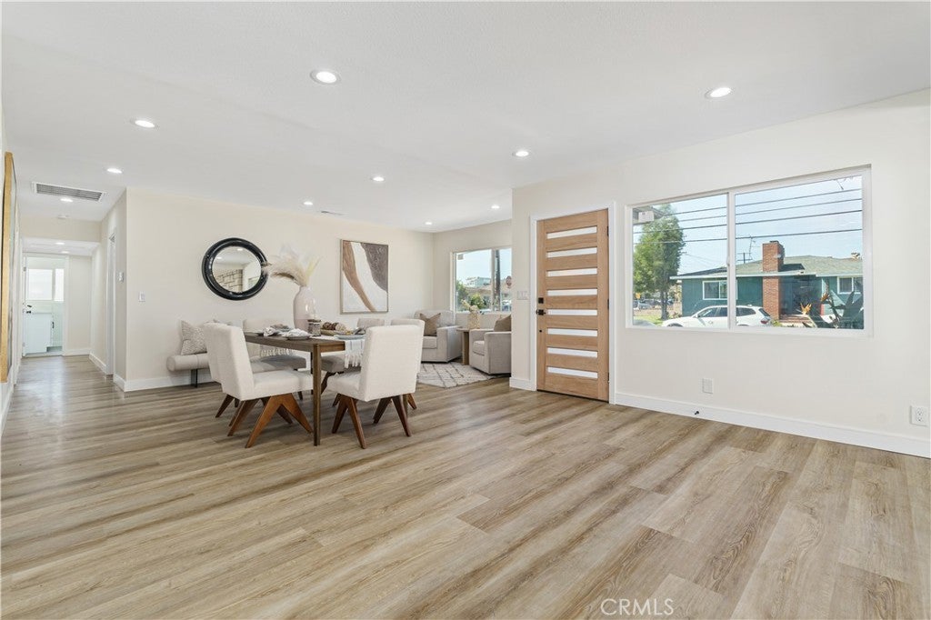 HUGE PRICE REDUCTION!! Welcome to this beautifully renovated four-bedroom, three-bathroom home located in the desirable neighborhood of Hawthorne. This residence perfectly combines comfort, style, and convenience. Recent upgrades include new windows, fresh interior paint, new vinyl flooring, new doors, modern kitchen cabinets with quartz countertops, a gas stove and range hood, dishwasher, undermount sinks, stainless steel appliances, recessed lighting, updated bathroom tile and vanities, renovated closets, and a redesigned laundry room. Enjoy cool ocean breezes just a few miles from the beach. The spacious layout features four well-sized bedrooms, including a large primary suite with an en-suite bathroom and ample closet space. The backyard features fruit trees and planters, perfect for entertaining or gardening. The home sits on a generous 6,202-square-foot lot and features a four-car garage with excellent potential to be converted into an Accessory Dwelling Unit (ADU)—offering new homeowners the flexibility to live in the main house while transforming the garage into a rental unit, guest house, or private workspace. The owner has invested over $300,000 in high-quality upgrades throughout the home, with all work completed using city permits—ensuring both quality and compliance. Upgrades also include a brand-new AC, providing lasting peace of mind for years to come. Located minutes from major attractions, LAX, beaches, and mountain getaways, this home offers the ideal Southern California lifestyle.