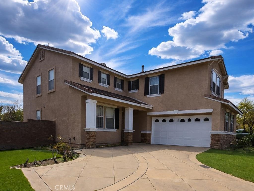 This Beautiful Two Story Home Located on Sierra Lakes Golf Course Community with view of the golf course; this home is ready for a big family to call home. This home features 5 bedrooms, 3.5 baths. Besides the expansive Master Suite, this home has an additional downstairs bedroom with their own bathrooms. The 2 additional bedrooms share the hallway bath upstairs. Homes has a combination of Tile and Marble flooring downstairs and carpet throw-out on the 2nd floor. Front yard and Backyard were updated with artificial turf. Home is located in close proximity to shopping, parks, schools and easy freeway access to the 210 and 15 FWY.