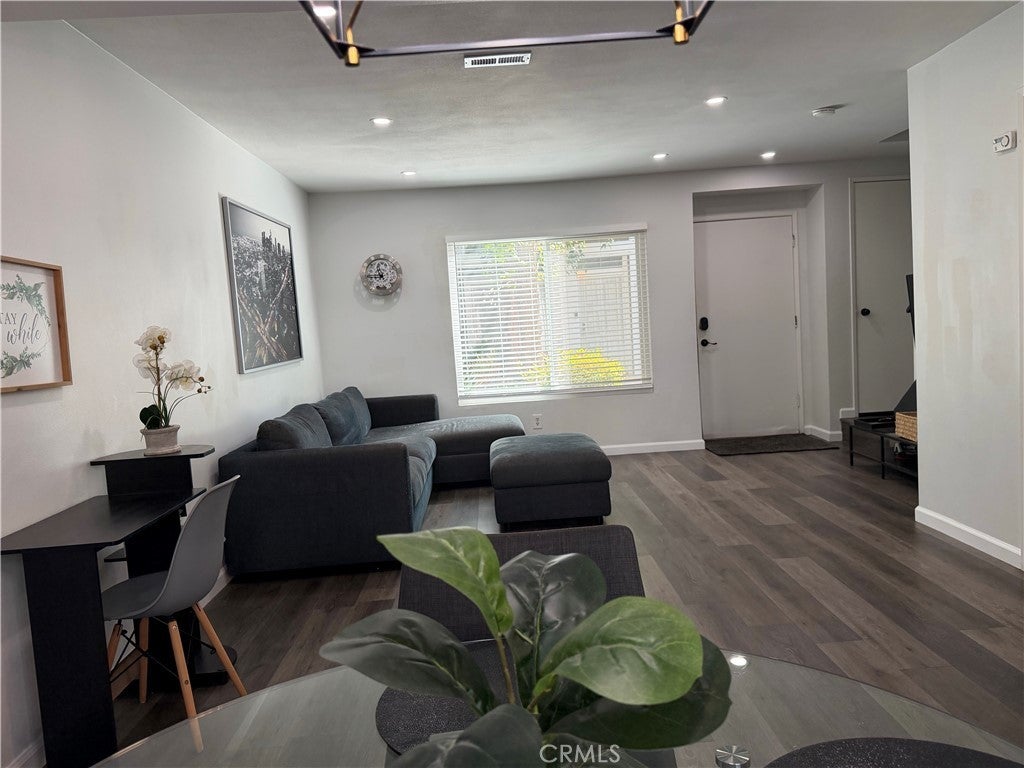 Beautifully updated 2-bedroom, 2-bath condo offering a modern, move-in-ready living experience in a well-kept Azusa community. This stylish home features a refreshed interior with a bright layout, upgraded kitchen, and contemporary finishes throughout. The living and dining areas open to a private patio, creating a comfortable indoor-outdoor flow. Both bedrooms are generously sized, including a primary suite with ample closet space. Additional highlights include in-unit laundry hookups, recess lighting, and central A/C and heating for year-round comfort. The home also includes one covered garage space with storage plus an additional parking spot. Conveniently located near shopping, dining, parks, the Azusa Metro station, and local colleges, this condo offers modern living in a prime location.