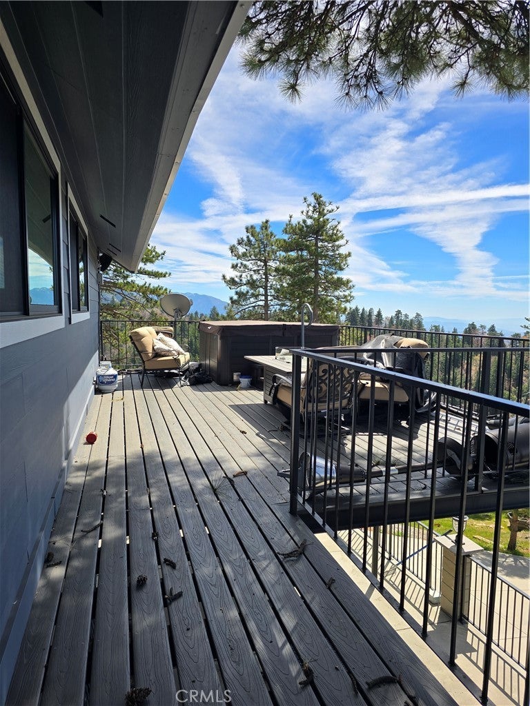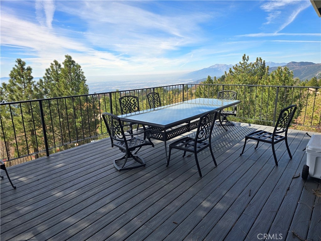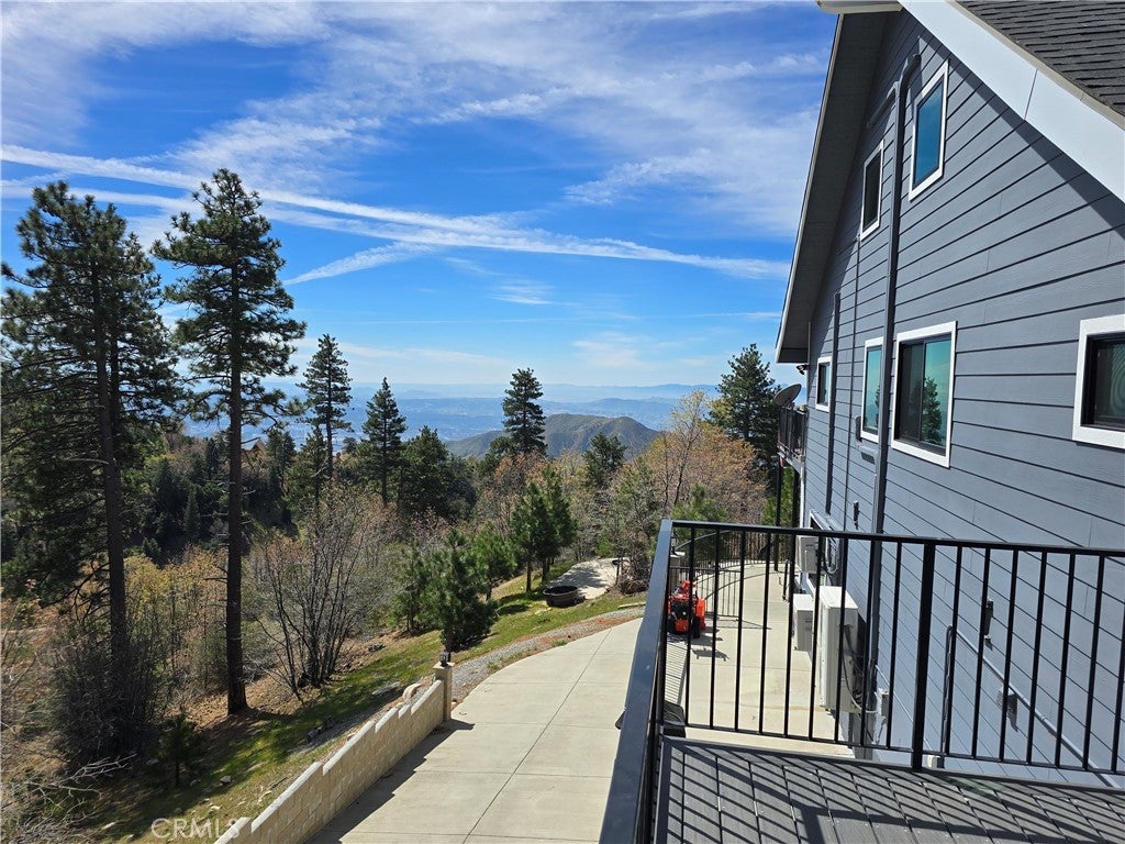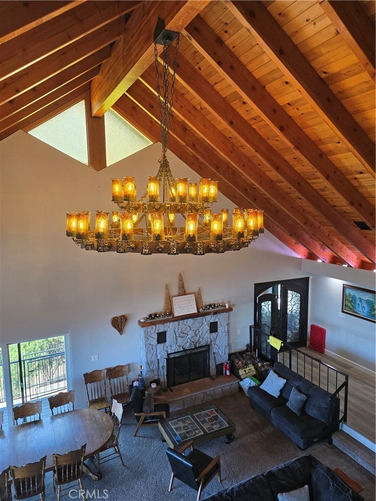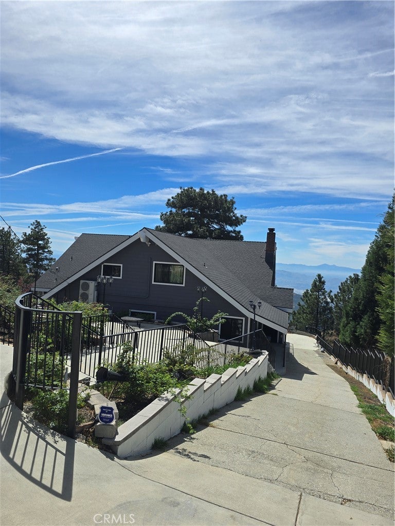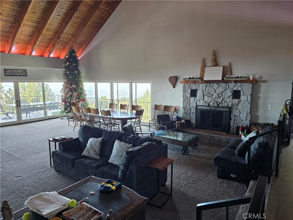 Mountain chalet estate situated on approximately 6.80 acres with expansive valley and mountain views, city lights, and the Pacific Ocean. near Running Springs and Snow Valley Ski Resort. Offering approximately 4,300+ sq ft of living space, this lodge-style home features a spacious open-concept great room with vaulted tongue-and-groove wood ceilings, exposed beams, and large windows that capture natural light and the priceless scenic vistas. The residence includes 6 bedrooms, 5 bathrooms, along with multiple living and entertaining areas. The updated kitchen features a large center island, farmhouse sink, stainless steel appliances, ample cabinetry, and extended counter space with unique quartz countertops with views. Additional interior highlights include a game room with a billiards area, bar space, and a remodeled bathroom with a soaking tub and a walk-in shower, and a rustic rock fireplace. Also, electrical updates, including a full solar system. newer heating/cooling high-efficiency system. Outdoor features include expansive decking and patio areas designed to take advantage of the surrounding priceless views, as well as an oversized two-car garage and extended driveway providing plenty of parking. The property consists of separate parcels, offering the potential for expansion, additional structures, or other uses (buyer to verify). Recent improvements include updated interior finishes, flooring, paint, plumbing (PEX), and roof. The grounds offer a natural setting with mature pine, oak, and cedar trees across gently sloping terrain. The current owners lovingly reimagined this home as a forever retirement sanctuary and poured their hearts into this Mountain retreat. refurbishing with the intention of retiring here amidst the stunning views. The seller's change of plans offers a unique opportunity for a new owner to step into a finished high-end property.
