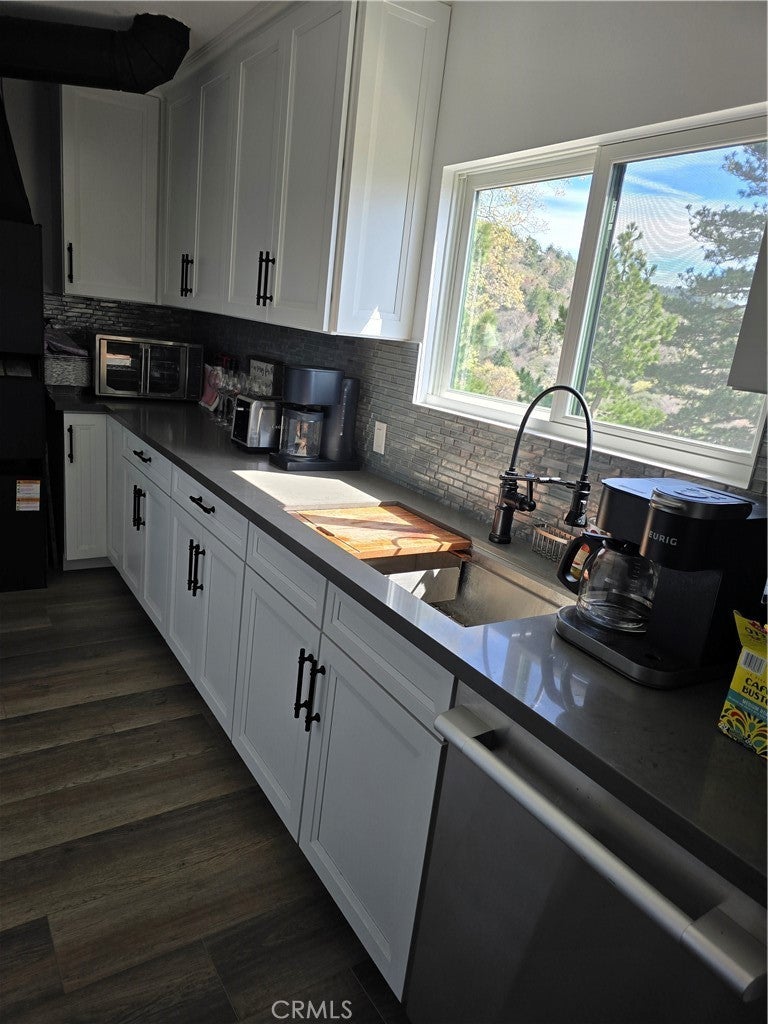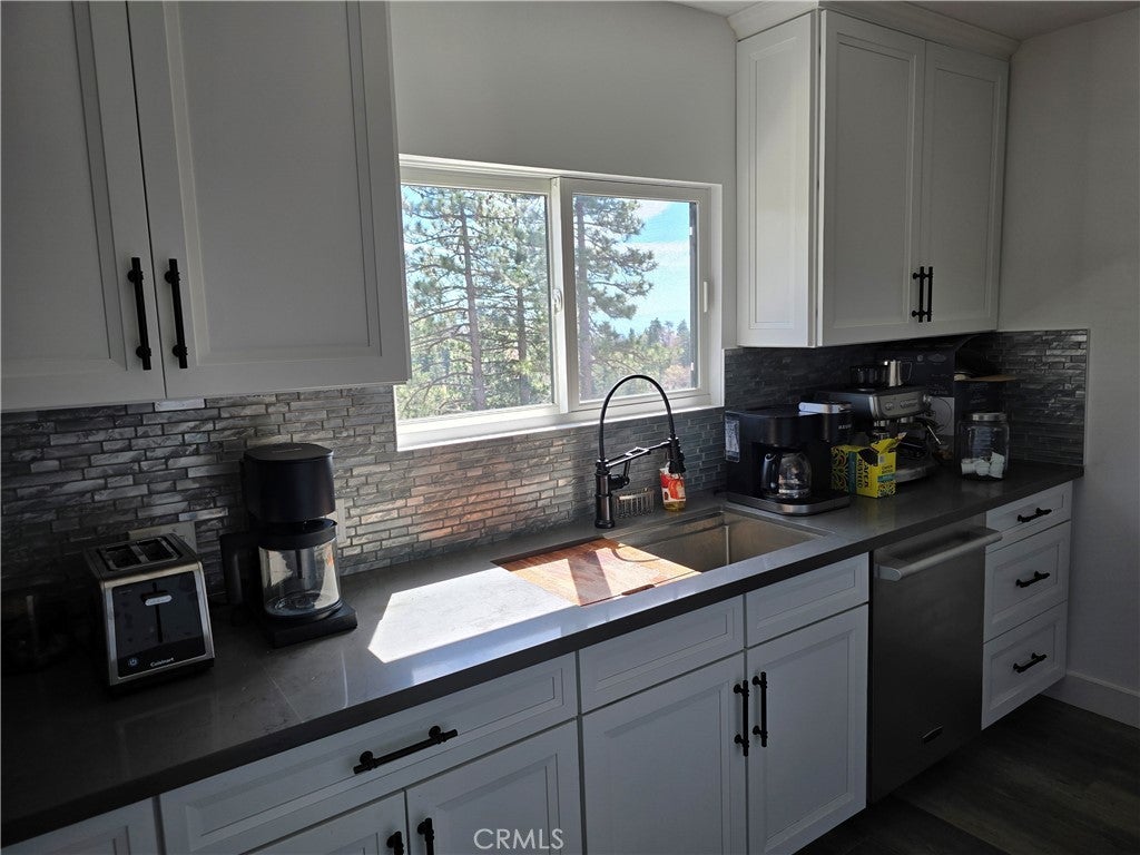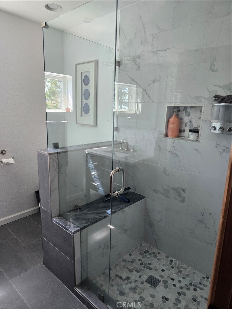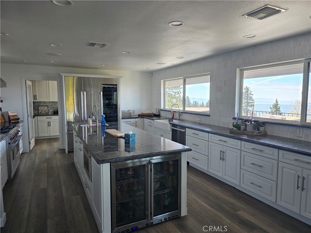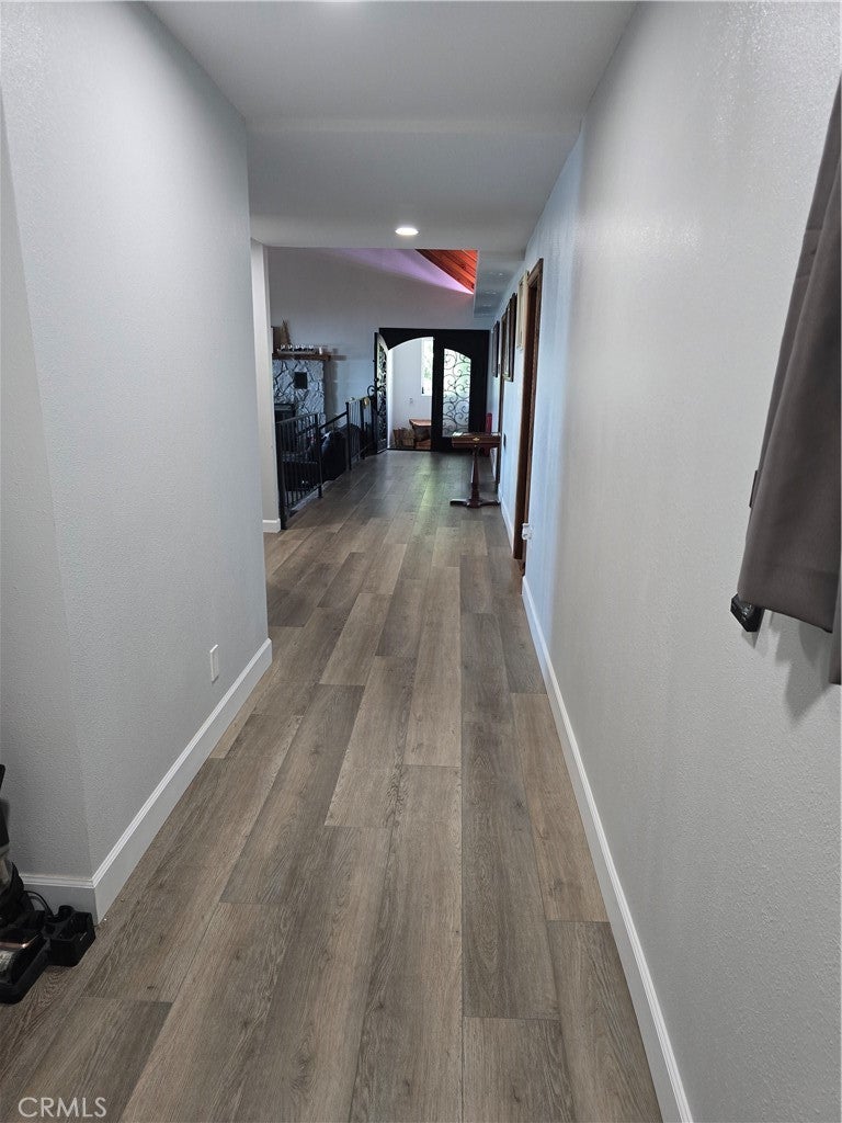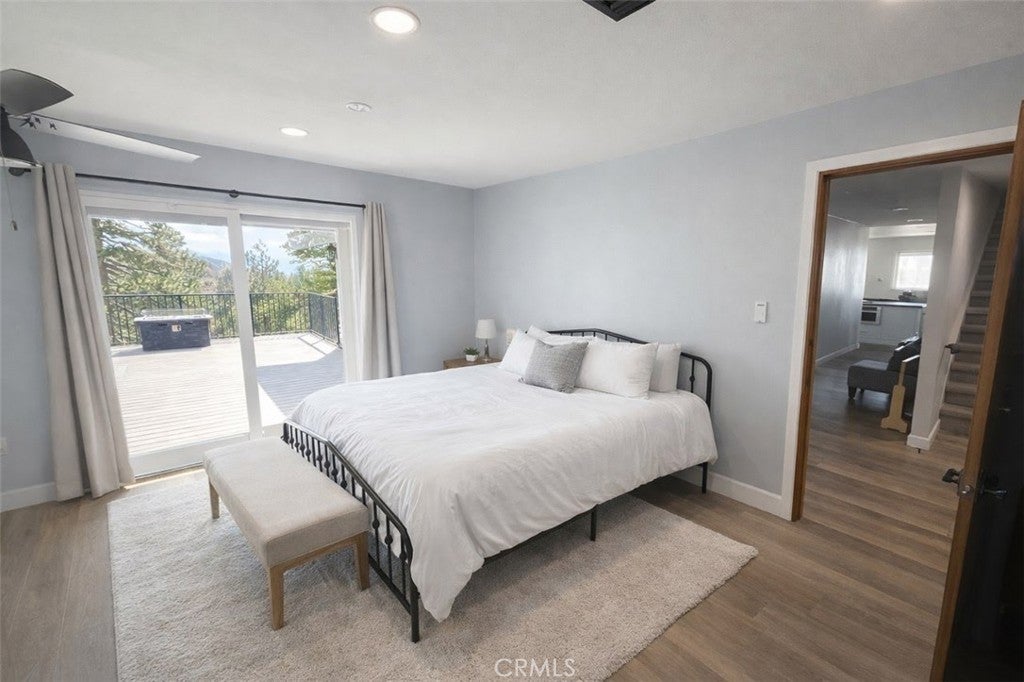 Mountain chalet estate situated on approximately 6.80 acres with expansive valley and mountain views, city lights, and the Pacific Ocean. near Running Springs and Snow Valley Ski Resort. Offering approximately 4,300+ sq ft of living space, this lodge-style home features a spacious open-concept great room with vaulted tongue-and-groove wood ceilings, exposed beams, and large windows that capture natural light and the priceless scenic vistas. The residence includes 6 bedrooms, 5 bathrooms, along with multiple living and entertaining areas. The updated kitchen features a large center island, farmhouse sink, stainless steel appliances, ample cabinetry, and extended counter space with unique quartz countertops with views. Additional interior highlights include a game room with a billiards area, bar space, and a remodeled bathroom with a soaking tub and a walk-in shower, and a rustic rock fireplace. Also, electrical updates, including a full solar system. newer heating/cooling high-efficiency system. Outdoor features include expansive decking and patio areas designed to take advantage of the surrounding priceless views, as well as an oversized two-car garage and extended driveway providing plenty of parking. The property consists of separate parcels, offering the potential for expansion, additional structures, or other uses (buyer to verify). Recent improvements include updated interior finishes, flooring, paint, plumbing (PEX), and roof. The grounds offer a natural setting with mature pine, oak, and cedar trees across gently sloping terrain. The current owners lovingly reimagined this home as a forever retirement sanctuary and poured their hearts into this Mountain retreat. refurbishing with the intention of retiring here amidst the stunning views. The seller's change of plans offers a unique opportunity for a new owner to step into a finished high-end property.