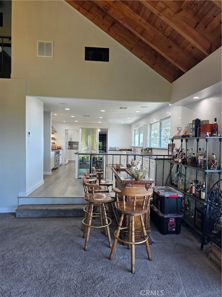 Beamed Ceilings, Balcony, Ceramic Counters, Cathedral Ceiling(s), Granite Counters, Living Room Deck Attached, Open Floorplan, Quartz Counters, Recessed Lighting, Storage, Loft, Main Level Primary, Multiple Primary Suites, Primary Suite, Utility Room, Bar, Partially Furnished