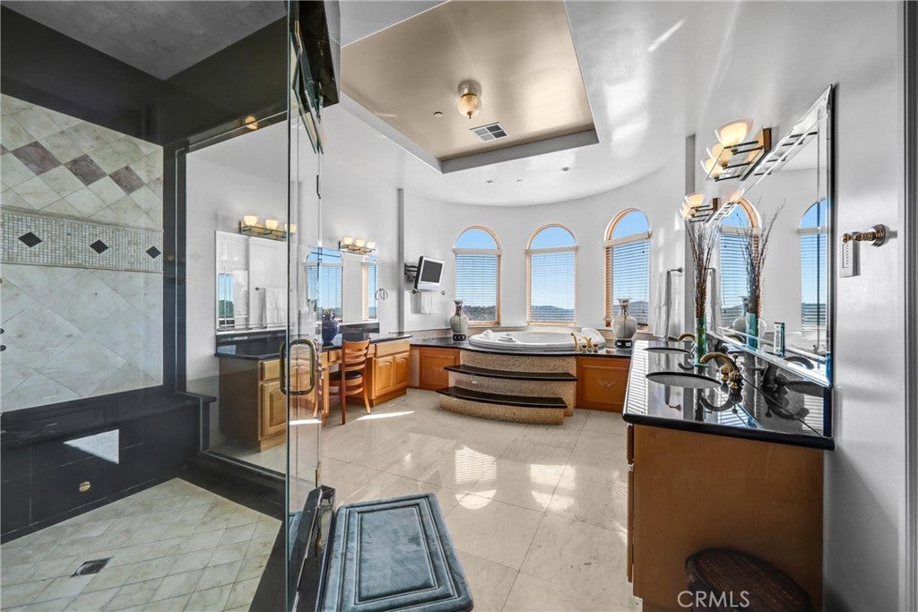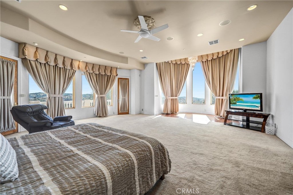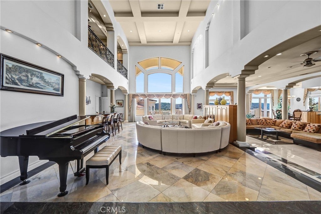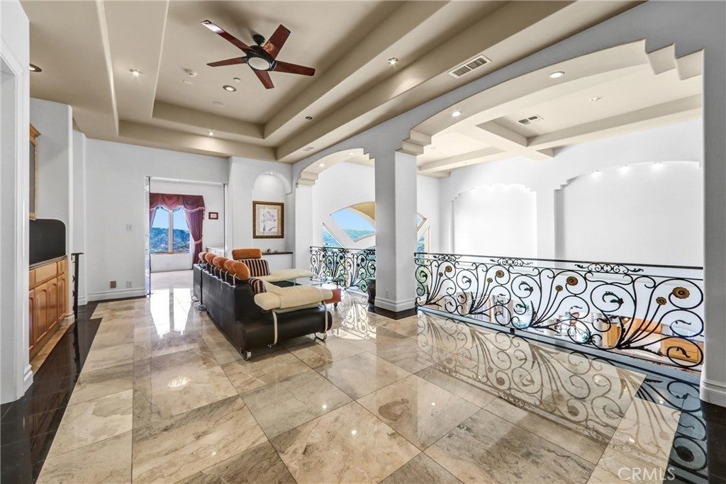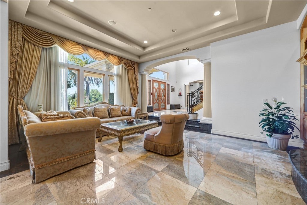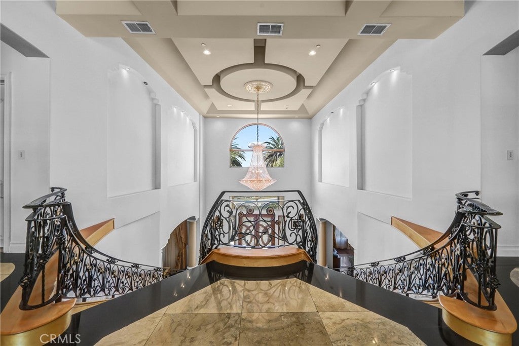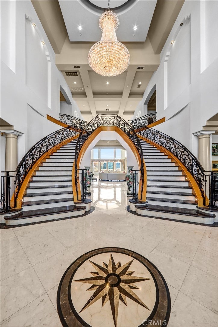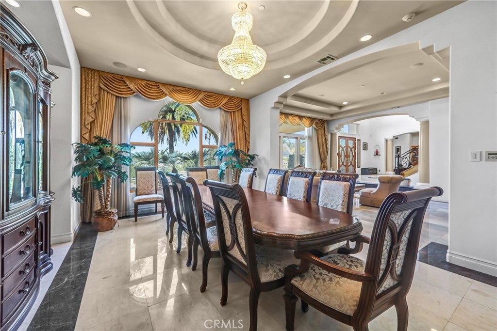 Luxurious 17,000-square-foot mansion located in the renowned “The Country Estates.” This efficiently designed residence features nine generously sized en-suite bedrooms, along with two huge primary suites and two powder rooms on the main level, totaling 11 bedrooms and 13 bathrooms. Situated on approximately 1.2 acres of well-maintained landscaping, the home captures breathtaking views of city lights and scenic hills from multiple vantage points. Upon entry, you’re welcomed by polished marble floors, soaring vaulted ceilings, and an impressive foyer with a dual staircase. The main level open-concept living areas create a bright and inviting atmosphere, ideal for both everyday living and entertaining and are equipped with two powder rooms and a bar area that’s perfect for hosting guests. The gourmet kitchen is designed for both functionality and style, featuring a large island, an oversized butler’s pantry, and additional high-end features to support daily living and entertaining needs. An elevator adds convenience and accessibility throughout the home. The ten-car garage provides ample space for large households or car enthusiasts. Additional interior highlights include a private game room, home theater, and a dedicated meditation room. The backyard offers an Italian villa-inspired retreat, designed for relaxation and complete with a Pool, Spa, BBQ station. Carefully crafted, this home blends refined elegance with everyday comfort. Located in a highly sought-after community with top-rated schools, the HOA includes 24-hour guard-gated security and amenities such as a community pool and spa, tennis courts, a clubhouse, and more. Come experience everything this exceptional property has to offer.