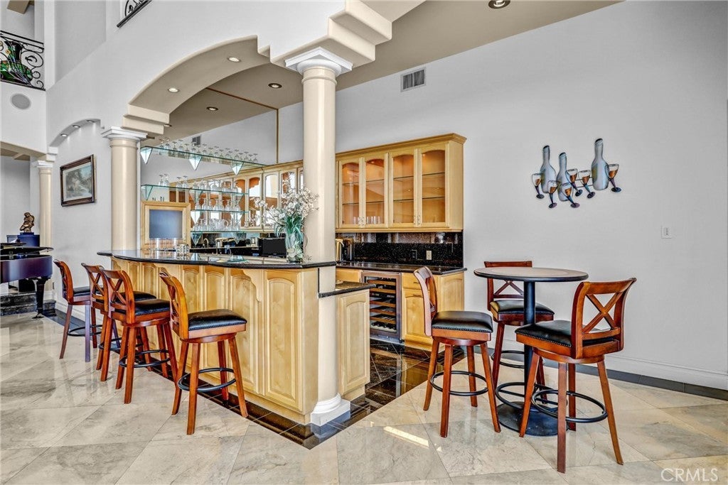 Wet Bar, Balcony, Crown Molding, Cathedral Ceiling(s), Elevator, Granite Counters, High Ceilings, Multiple Staircases, Open Floorplan, Pantry, Stone Counters, Recessed Lighting, Storage, Two Story Ceilings, Bar, Wired for Sound, Bedroom on Main Level, Entrance Foyer, Central Vacuum, Intercom, Partially Furnished