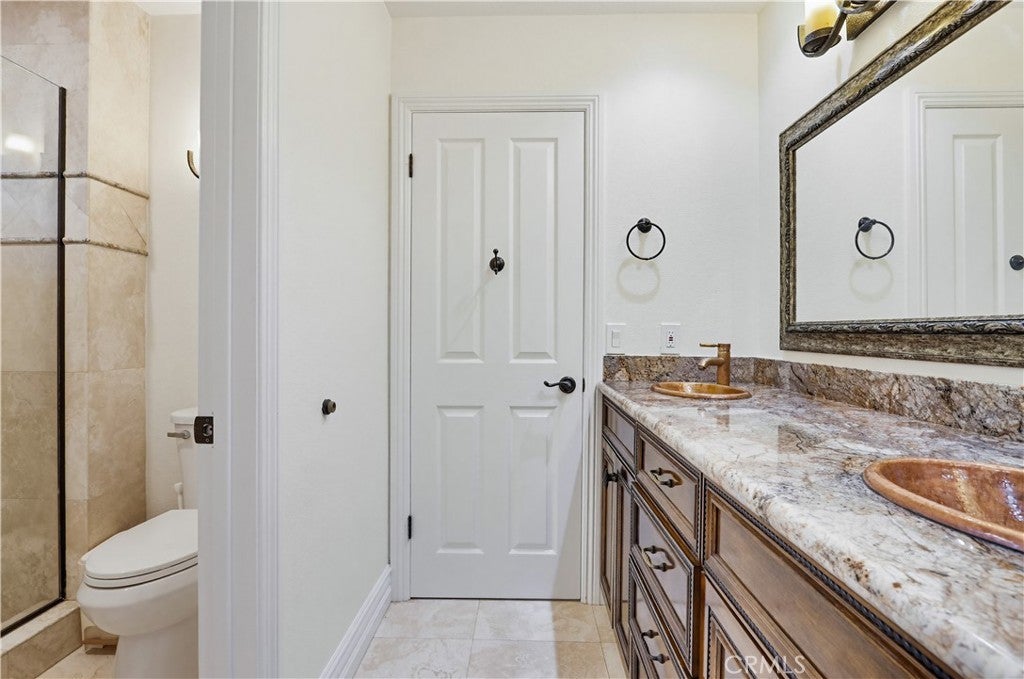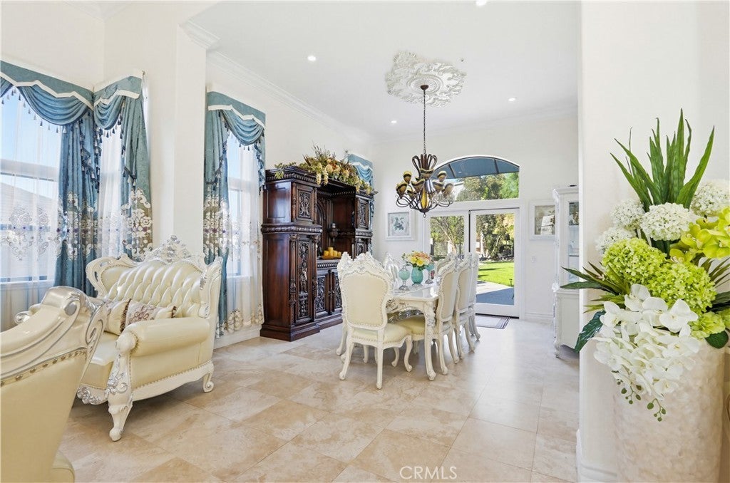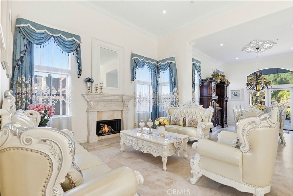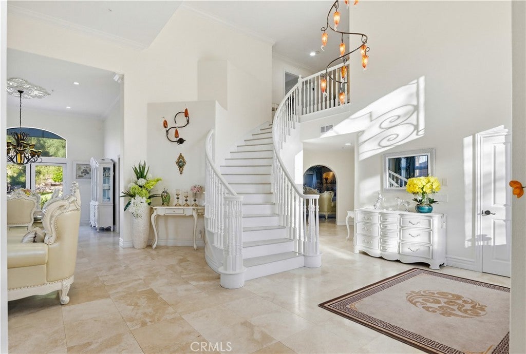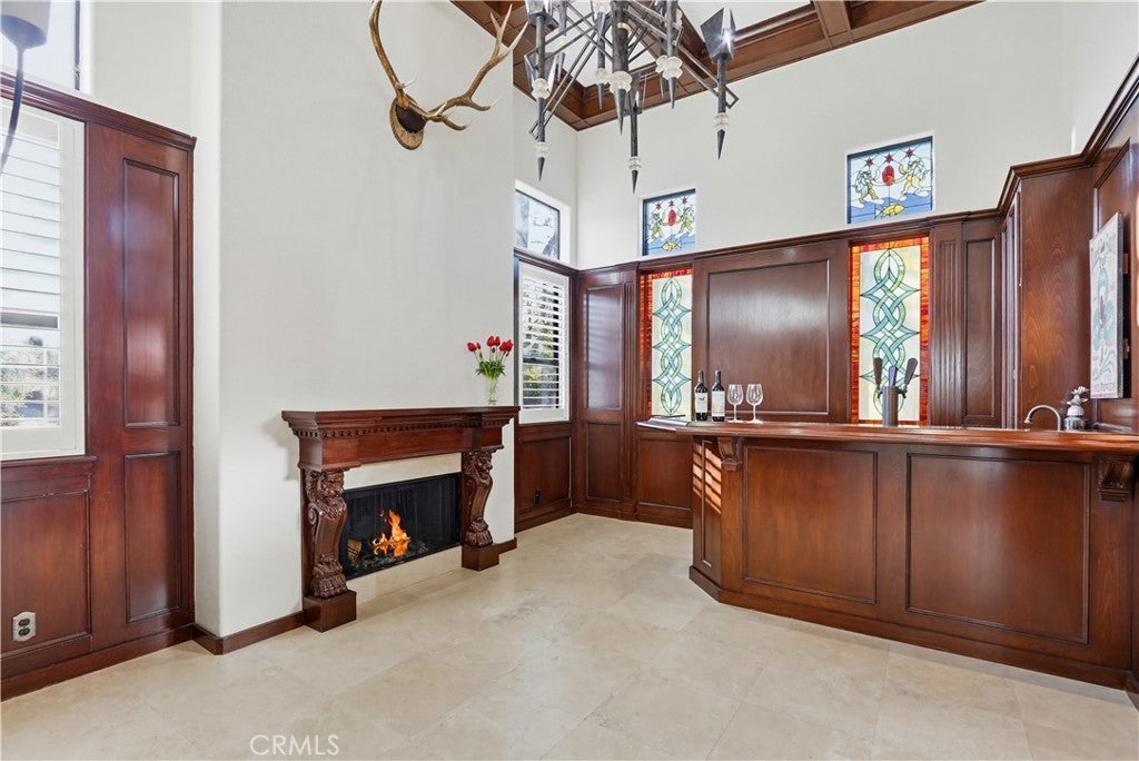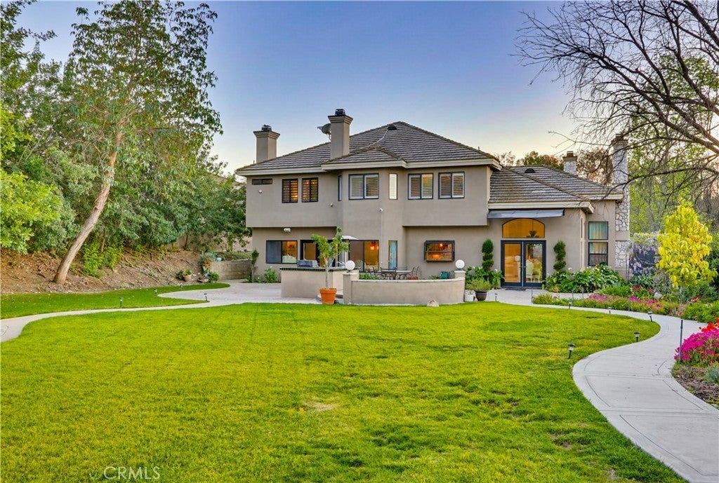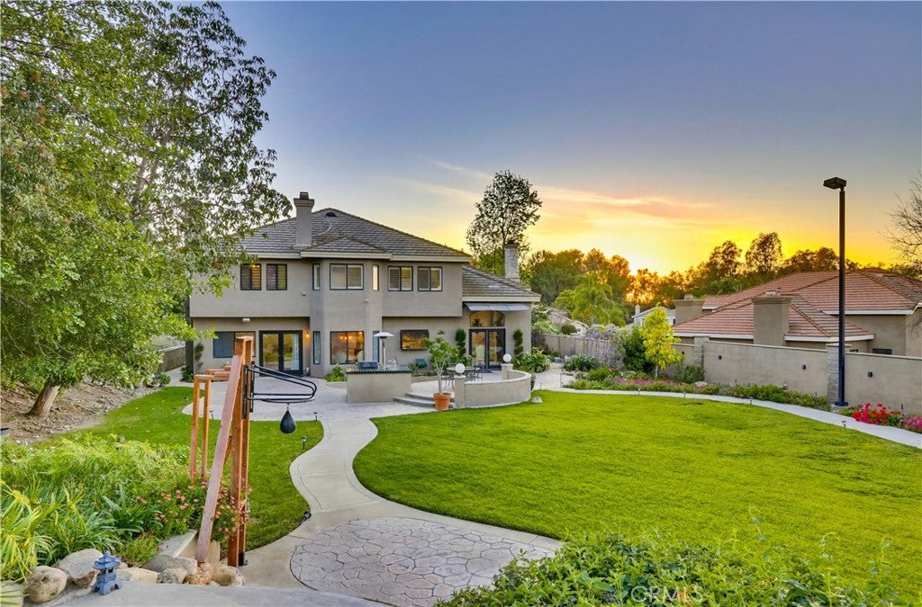 Expansive Backyard with Views & Mature Trees. Located within a desirable gated community in Anaheim Hills, this residence offers privacy, security, and a well-maintained neighborhood setting. Upon arrival, the home features manicured landscaping, stone accents, and a welcoming entry with a water feature, creating strong curb appeal. Inside, the home opens to a spacious foyer with high ceilings and a spiral staircase, complemented by marble flooring and abundant natural light. The formal living room includes a fireplace and is ideal for entertaining. Adjacent is a custom bar area with built-in cabinetry and decorative glass details, offering a unique space for gatherings. The kitchen is designed for functionality and space, featuring granite countertops, custom cabinetry, ample storage, and a breakfast nook. It opens to the family room with large windows and direct access to the backyard, providing a bright and open layout. A main-level bedroom/office includes built-in desk and storage, suitable for remote work or flexible use. Upstairs, the primary suite offers generous space, backyard views, and a fireplace. The primary bathroom features a soaking tub, separate glass-enclosed shower, dual vanities, and connects to a walk-in closet. Two additional bedrooms are located on the second floor and share a bathroom with dual sinks. One bedroom includes a private balcony. The highlight of the home is the spacious backyard featuring mature trees, open views, a hardscape patio, lawn area, garden space, and storage shed—ideal for entertaining, outdoor living, or relaxing in a private setting. Conveniently located near top-rated schools, shopping, dining, and major routes, offering both comfort and accessibility.