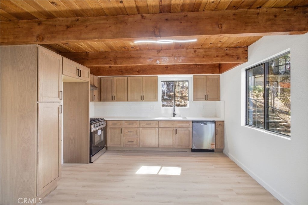 Charming mountain retreat nestled in the desirable Arrowbear Lake/Running Springs area! This 2-bedroom, 1.5-bath home offers approximately 1,050 sq ft of thoughtfully designed living space—blending cozy cabin charm with modern updates. Step inside to a beautifully updated kitchen featuring sleek quartz countertops, modern cabinetry, and stainless steel appliances—perfect for both everyday living and effortless entertaining. The inviting living area is anchored by a warm, cozy fireplace, creating the ideal setting for relaxing after a day in the mountains. Enjoy the best of indoor-outdoor living with a private deck showcasing peaceful mountain views, perfect for morning coffee, evening unwinding, or hosting under the pines. Surrounded by nature, you’ll love the easy access to hiking trails, skiing, and year-round outdoor recreation. Whether you're searching for a full-time residence, weekend getaway, or investment opportunity, this home delivers versatility and mountain charm. Conveniently located just a short drive from Lake Arrowhead, Big Bear, and major commuter routes—offering the perfect balance of seclusion and accessibility.