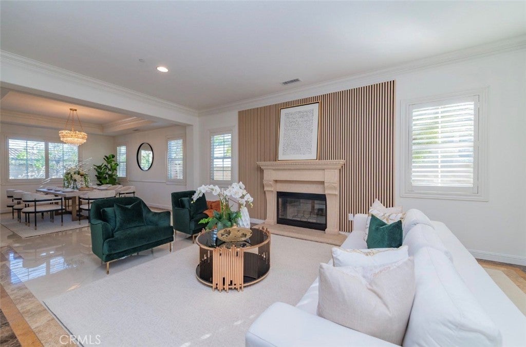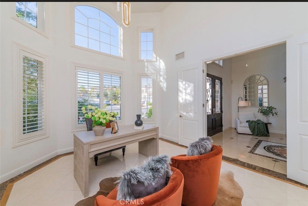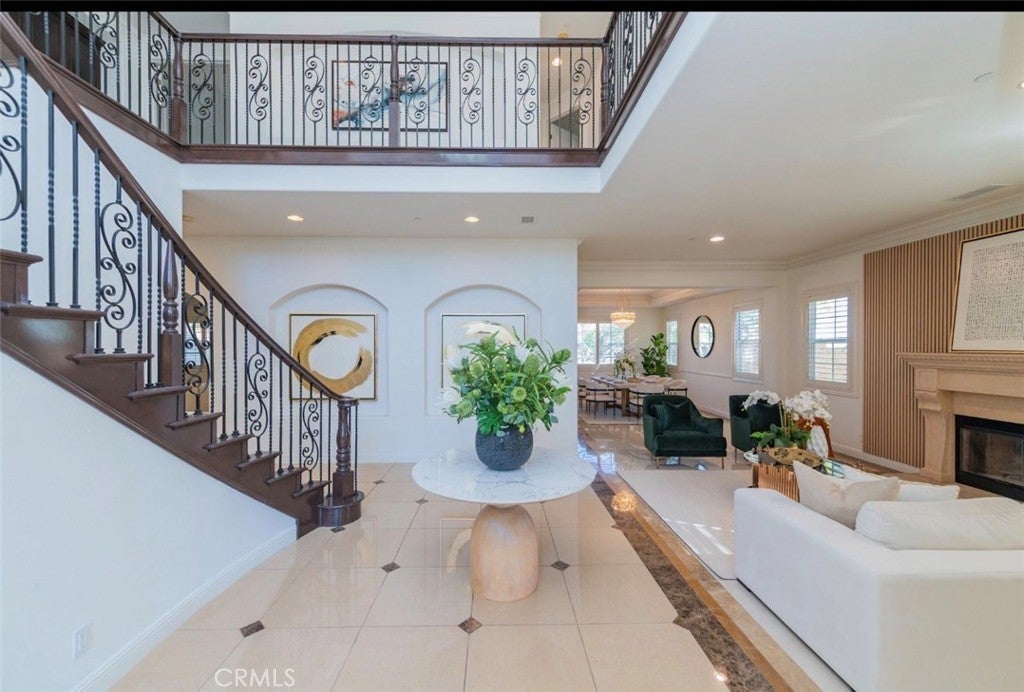 Introducing this property built by renowned builder Toll Brothers in a prime location at Vista Del Verde community in Yorba Linda. Also close to Black Gold Golf Club-- a lifestyle of convenience, health,and leisure. The school district is well-know as Placentia and Yorba Linda. Upon entry, you are welcomed by a stunning high ceiling foyer with an open and airy layout, next to the entry is a separate formal reception room or a private home office. The main floor features expansive classic-pattern tiles flooring, complemented by a grand crystal chandelier above,creating a luxurious and sophisticated ambiance. Upstairs, the graceful hallway design a cozy family lounge provides the perfect space for relaxation. The spacious primary suite, along with a covered viewing balcony with comfort,privacy,and an elevated living experience. Freshly painted throughout, brand new carpet,and a 3 car garage with upgraded pebble flooring. The backyard is beautifully landscaped with lush greenery, a flowing fountain feature, and dedicated BBQ area perfect for entetaining family and friends.