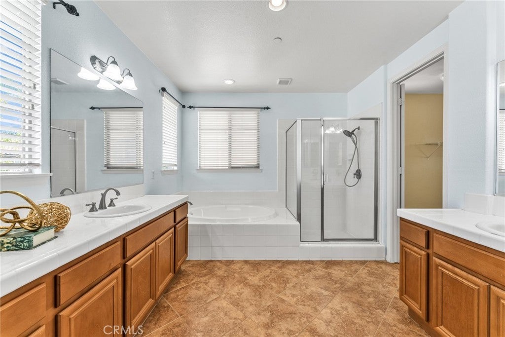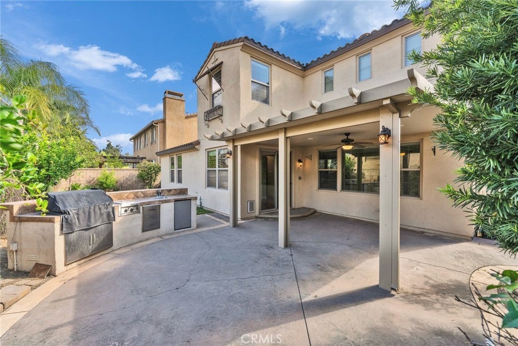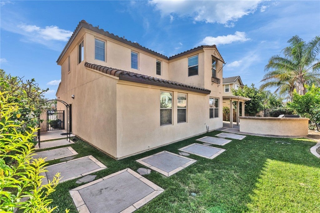 This beautifully maintained home features four spacious bedrooms and 3.5 bathrooms, ideally situated in one of Rancho Cucamonga’s most sought-after neighborhoods. Designed with both comfort and style in mind, the open-concept floor plan is perfect for modern living and effortless entertaining. Step inside to a thoughtfully upgraded interior showcasing brand-new laminate flooring and enhanced baseboards throughout. Abundant natural light pours in through large windows, creating a warm and inviting atmosphere. The main level offers a private home office with elegant French doors, a formal living room, and a sophisticated dining area. At the heart of the home, the gourmet kitchen boasts a large granite island, walk-in pantry, and a charming breakfast nook overlooking the beautifully landscaped backyard. The kitchen flows seamlessly into a spacious family room complete with a cozy fireplace. A convenient downstairs guest suite includes its own private bathroom and walk-in closet, ideal for visitors or multigenerational living. Upstairs, a versatile loft provides the perfect space for a home theater, game room, or fitness area. The expansive primary suite offers a relaxing retreat with a separate sitting area and a luxurious en-suite bathroom featuring dual vanities, a soaking tub, a separate shower, and an oversized walk-in closet. Two additional upstairs bedrooms share a well-appointed bathroom, each with its own vanity. A dedicated laundry room is conveniently located nearby. Additional highlights include a three-car garage with ample storage space. The backyard is designed for both relaxation and entertaining, featuring a built-in barbecue area complete with a sink, electrical outlets, double burner, stainless steel cabinetry, and a refrigerator. A covered patio provides the perfect setting for gatherings, while mature fruit trees add charm and character to the outdoor space. Situated on a quiet cul-de-sac, this beautiful home offers both tranquility and convenience. Enjoy being just steps from a scenic trail, perfect for outdoor walks and relaxation. The property is within walking distance of highly rated, award-winning elementary and middle schools, making it ideal for families. You’ll also appreciate the prime location just minutes from premier shopping and dining destinations, including Victoria Gardens and Ontario Mills. Commuting is a breeze with easy access to major freeways, including the 10, 15, and 210.