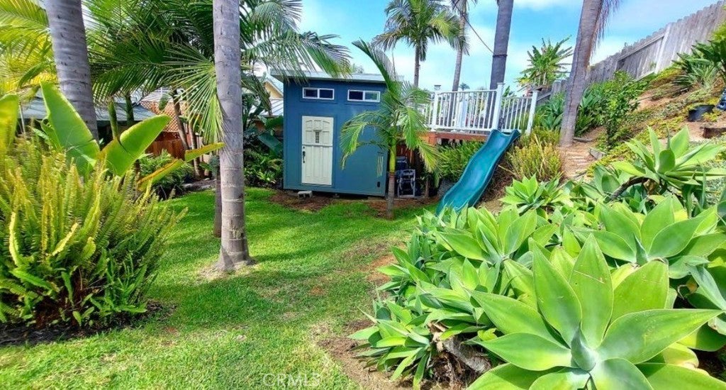 This beautiful 4-bedroom, 3-bathroom tri-level home in a desirable neighborhood in Carlsbad offers easy, living with thoughtful design. Step inside to soaring vaulted ceilings in the welcoming foyer, leading up to an open loft-style family room which has a full length bar for entertaining. The living/dining combination features a cozy gas fireplace with remote control for effortless ambiance. This opens up into a bright sunroom that beautifully frames the tropical backyard oasis. Note: The sunroom’s additional 322sf is not included in livable area. The split level design is ideal for comfortable living without excessive climbing. The primary suite includes a versatile bonus area with a loft bed, desk workspace below, and a convenient sink. Downstairs, the secondary bedroom connects to a permitted bonus room and full bathroom, can be used as an in-law floor plan, guest suite, or junior ADU, complete with a separate side-yard entrance for added privacy. Additional improvements include a newer roof, new system pavers in the driveway, fresh interior paint, a fully paid solar system for energy savings, whole house Halo water system and an electric car charging outlet in the garage. Enjoy outdoor living on the 200 sq ft deck off the family room, with stairs leading directly to the lush, gardener’s paradise backyard. This tropical retreat boasts mature palm trees and an impressive array of fruit trees. Additional backyard highlights include a charming shed combo with an upper deck, playhouse, and slide—perfect for extra storage. Nestled in popular Laguna Riviera—a no-HOA community with a true neighborhood feel—this home is just blocks from the scenic Agua Hedionda Lagoon for water sports and relaxing, and close to highly rated Kelly Elementary School. A rare blend of space, functionality, sustainability, and tropical outdoor living.