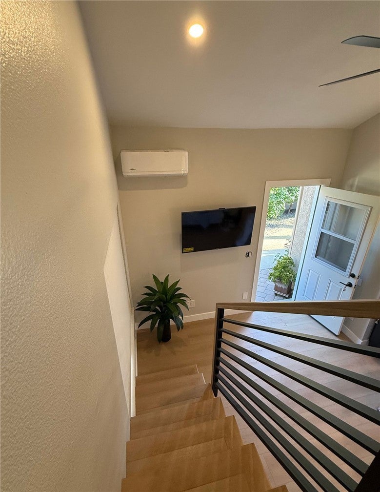 Tucked away on a quiet cul-de-sac in Yorba Linda, this loft-style Junior ADU offers the perfect blend of privacy, comfort, and modern living. With its own private entrance, this thoughtfully designed unit feels like a true home — not just a rental. The main level welcomes you with an open, airy living area that flows into a fully equipped kitchen featuring a refrigerator, microwave, induction hot plate, and generous cabinet and counter space. In-unit laundry is a genuine convenience here — a dedicated washer and dryer area means no shared laundry rooms or laundromat runs. Head upstairs to the loft level where a spacious walk-in closet keeps everything organized, and a private bathroom with a beautifully tiled walk-in shower gives the space a boutique hotel feel. Every inch has been well-utilized — bright, functional, and move-in ready. Street parking is available, all utilities are included except internet, and freeway access makes commuting a breeze.