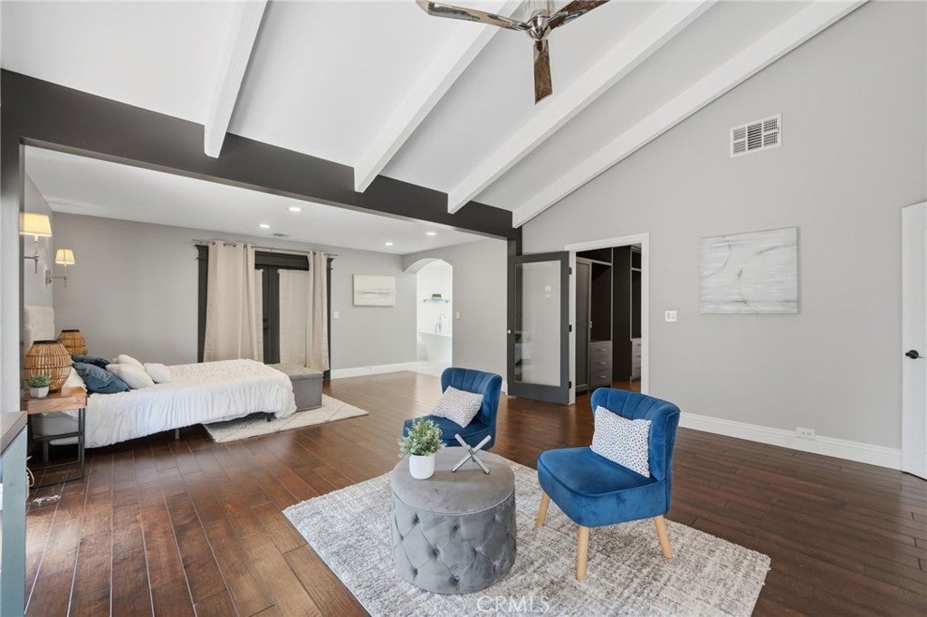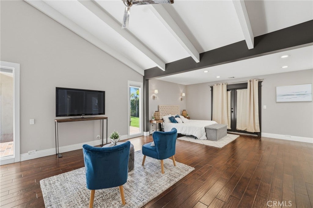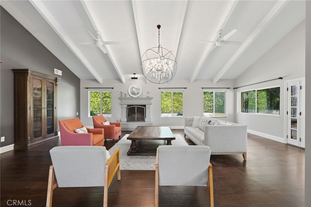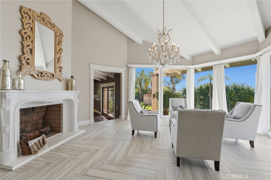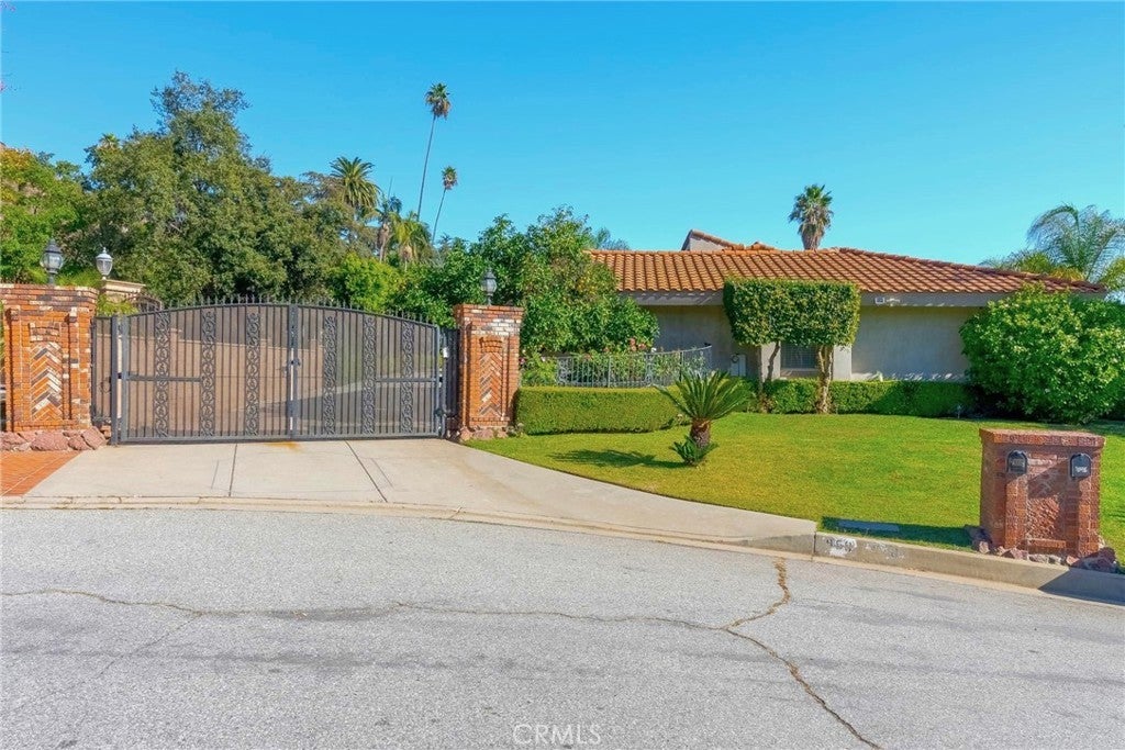 Spectacular Single Story House with City Lights & Mountain Views located in the gated community of Silent Ranch Estates in North Glendora. Exquisite style & modern finishing’s & materials are evident thru-out this 4 bedrooms and 5 bathrooms home. Property was completed renovated back in 2018 with hardwood & tile floors, open beamed high ceilings, gorgeous chandeliers & light fixtures, custom paint, home automation and camera system. Double door entry welcomes you to a gorgeous foyer with marble floors, French doors, formal living room with beautiful windows & cozy fireplace, amazing family/great room with hardwood floors, fireplace & French doors, gourmet kitchen with marble island, stainless appliances including Thermador double ovens, 6 burner gas cooktop, formal dining room with French doors & gorgeous modern chandelier. Private master suite with a separate retreat, French doors, large walk-in closet with custom built-in’s, luxurious master bathroom with marble oversized walk-in shower, stand alone bathtub & double vanities. Second master suite with walk-in closet & private en-suite bathroom with double sink vanity, stand-alone bathtub & large shower. Two additional bedrooms with walk-in closets & en-suite bathrooms, a gorgeous powder room & a spacious loft with spiral staircase that can be used for office, kids or workout rm. Private backyard with beautiful city lights views, large lawn area, pool & spa with waterfall, built-in BBQ & covered patio/entertaining area. Gated driveway with 5 car tandem garage, RV Parking & room for extra cars. Convenient location puts you near all Glendora finest schools, supermarkets, restaurants and much more!