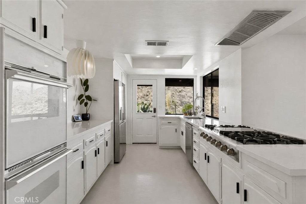 Escape and discover a rare opportunity to live above it all at 53744 Ridge Rd in Yucca Valley. Perched at approximately 4,000 feet in elevation, this stunning mountain retreat offers breathtaking panoramic views of the Valley below, where city lights sparkle at night and peaceful desert landscapes stretch for miles. Enjoy the best of both worlds: serene, private mountain living with an easy commute. Located just about 30 minutes from the Bob Hope exit, you can work in the Coachella Valley while coming home to cooler temperatures, fresh air, and virtually no traffic. This fully renovated home has been thoughtfully upgraded throughout. Inside, you’ll find beautiful concrete floors, a bright and modern design, and a chef-inspired kitchen featuring an impressive 48” professional-grade stove—perfect for cooking and entertaining. The owner’s culinary influence is evident in every detail. Step outside and experience true privacy and connection with nature. The property includes your own private hiking trails, allowing you to explore the surrounding landscape right from your doorstep. Enjoy evenings around the fire pit, take in the peaceful quiet, and appreciate the professionally designed outdoor lighting that enhances the natural beauty of the property. With solar power for energy efficiency and occasional winter snowfall adding to its charm, this home offers a unique lifestyle you simply won’t find in the lower desert. All of this comes at a more affordable price point compared to valley rentals, while offering significantly more space, privacy, and character. Perfect for someone seeking a tranquil, secluded living environment without sacrificing access to the Coachella Valley, this one-of-a-kind property delivers unmatched value and lifestyle