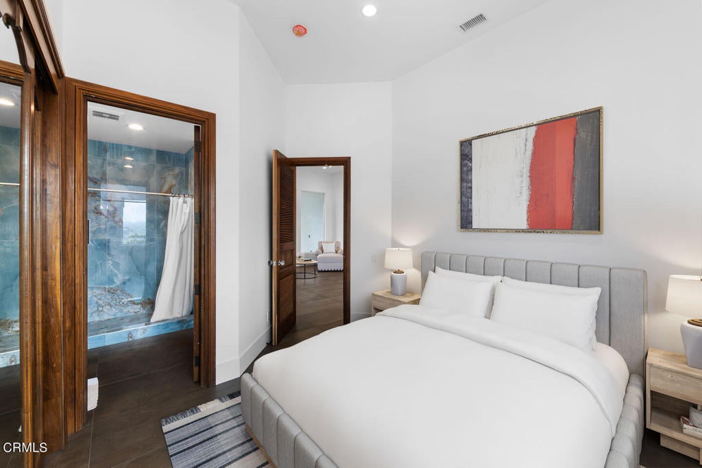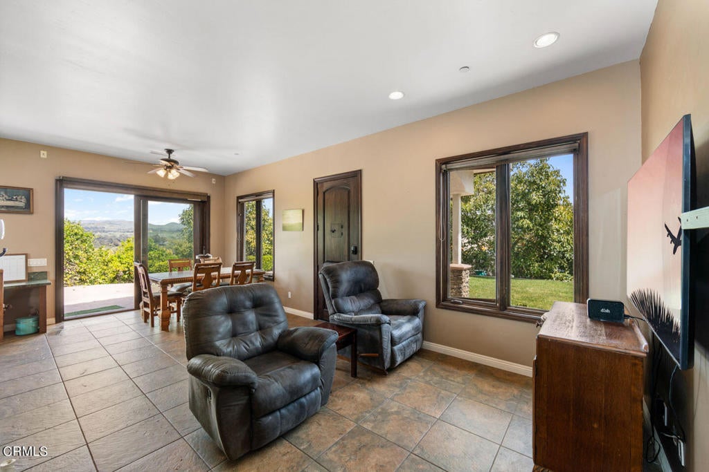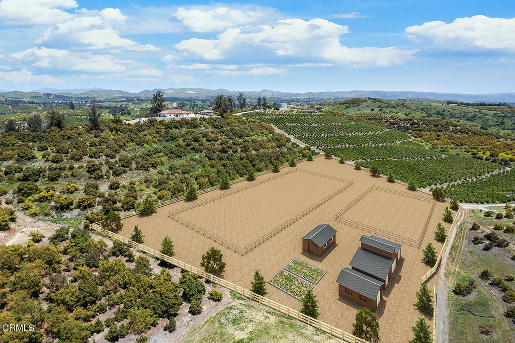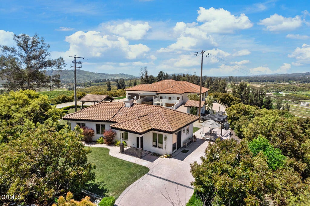 Welcome to 5927 St. Maarten Dr. in Moorpark, a custom-built sanctuary nestled atop nearly 24 sprawling acres in Ventura County's avocado country. This magnificent 4BR/6BTH single-story estate offers 4,610 sf of luxury living space, with an additional 1,800 sf under roof. The oversize patio with BBQ area and two outside restrooms was designed for large gatherings. For guests or extended family, a detached 1,200 sf GUEST HOUSE awaits, offering 2BR/2BTH and its own private retreat. Boasting panoramic views of lush orchards and the majestic Los Padres and Santa Monica Mountains, this hilltop haven offers unparalleled tranquility just minutes away from Moorpark and Camarillo.Upon entering the main residence, floor-to-ceiling windows invite the breathtaking landscape indoors, bathing the home in natural light and providing a seamless connection to the serene surroundings. The open floorplan effortlessly blends functionality with elegance, featuring a spacious kitchen and family room adorned with 12ft ceilings and sleek porcelain floors.The gourmet kitchen is a chef's dream, equipped with a generous center island, 60 inch range, and a Sub-Zero refrigerator, perfect for culinary enthusiasts and entertaining alike. Smart home technology elevates the living experience, with amenities such as an owned solar system, electric charging station, surround sound, and closed-circuit security, ensuring comfort, convenience, and peace of mind.Indulge in the ultimate retreat within the primary suite. This haven of relaxation boasts floor-to-ceiling windows that frame captivating views, creating an oasis of serenity. A generously-sized lounge area offers the perfect spot to unwind and take in the beauty of the surrounding landscape. Step into the luxurious marble walk-in shower or soak in the claw tube for a spa-like experience that rejuvenates the senses. His and her sinks, adorned with exotic Bolivian marblewood counters, provide both functionality and elegance. Separate water closets ensure privacy and convenience, while the oversized walk-in closet offers ample storage space for the most discerning wardrobe.Luxurious details abound throughout the home, including 12-foot ceilings, LED lighting, and energy-efficient features such as dual-zoned AC, energy recovery ventilation, and fire sprinklers. Outside, the property offers approximately 18 acres of thriving Haas avocado trees, with additional acreage ideal for equestrian or other agricultural pursuits.
