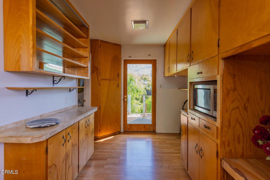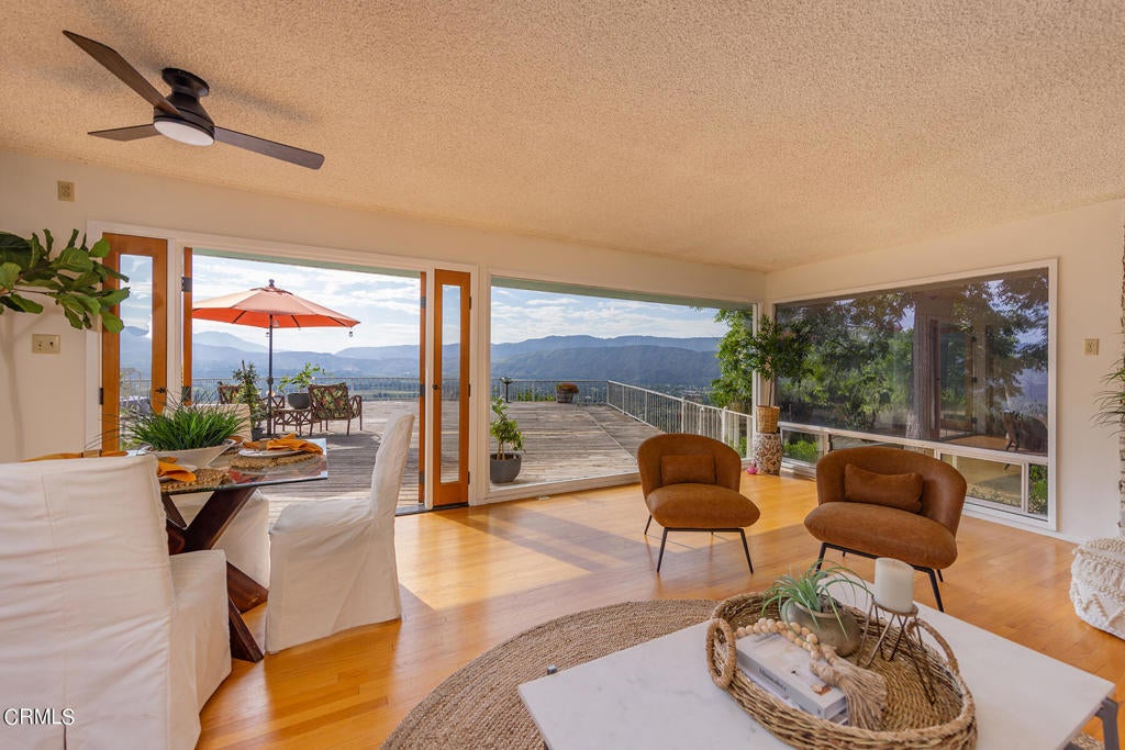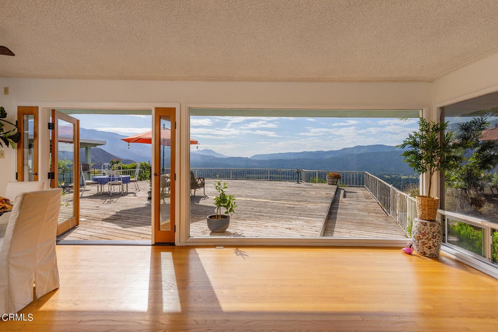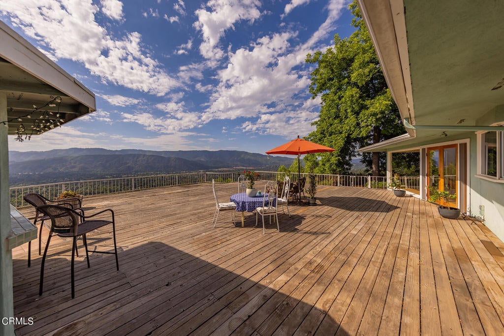 Epic views! Supreme privacy! Soul stirring! There is no other property in Ojai that offers such stunning views across the valley of Ojai and intimate privacy, while only a short walk to town. A place that transcends an abode, rejuvenates the senses and connects with nature. Owned by the same family for over 75 years and cared for with purpose, the house sits atop 3 acres, with a mid-century vibe, with it's oak floors and walls of glass. With enough deck space to host friends and family, sharing sunsets and sunrises that will stay with you forever. Existing pool under deck.