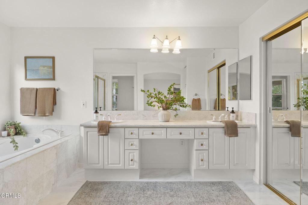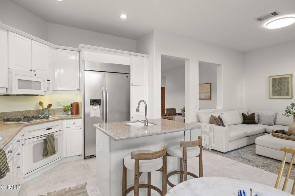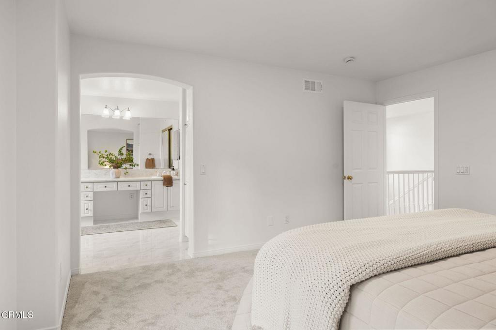 Experience beauty and tranquility nestled in the prestigious Golf Villas II gated community beside Spanish Hills Club. This light-filled, thoughtfully designed home offers a perfect blend of style, comfort, and unparalleled outdoor living with some of the best golf course, field and mountain views in the neighborhood.Step inside, be welcomed by high ceilings and an airy, open layout that radiates warmth and charm. Inviting living spaces feature a cozy fireplace that seamlessly flows into a private patio--ideal for soaking in panoramic views. The open kitchen is perfect for culinary enthusiasts, complete with quartz countertops, ample cabinetry, and a stainless steel refrigerator--making meal preparation and entertaining both stylish and functional.Offering a generous backyard--a rare find in this exclusive community. The private outdoor oasis has a built-in bbq and ample space for dining, relaxing, and enjoying Ventura County's mild climate. Whether you're savoring your morning coffee, hosting a gathering, or watching the sunset, this backyard offers an unbeatable setting for memorable moments.Upstairs, the primary suite is a peaceful sanctuary, with a private balcony showcasing stunning views of the golf course and hills. The spa-like ensuite bathroom features dual vanities, a soaking tub, and a glass-enclosed shower, creating the perfect place to unwind. The additional bedrooms provide versatile living options--great for guests, creative pursuits, or a dedicated home office, ideally suited for working from homeThis property truly embraces California living, with access to resort-style amenities, including a community pool, spa, clubhouse, and RV parking. The HOA also maintains front yard landscaping, offering a convenient, low-maintenance lifestyle. This home provides the perfect blend of privacy, luxury, and convenience in one of Ventura County's most desirable neighborhoods.Ideally located just minutes from Camarillo's best dining, shopping, beaches, and the airport, with easy access to the 101 Freeway for a quick drive to Ventura, Malibu, or Santa Barbara. Don't miss the chance to own one of the most desirable properties in Golf Villas II--schedule your private tour today and experience fantastic views and the best of coastal living.