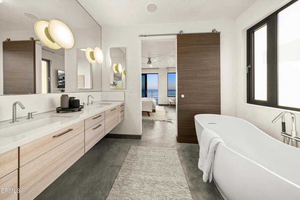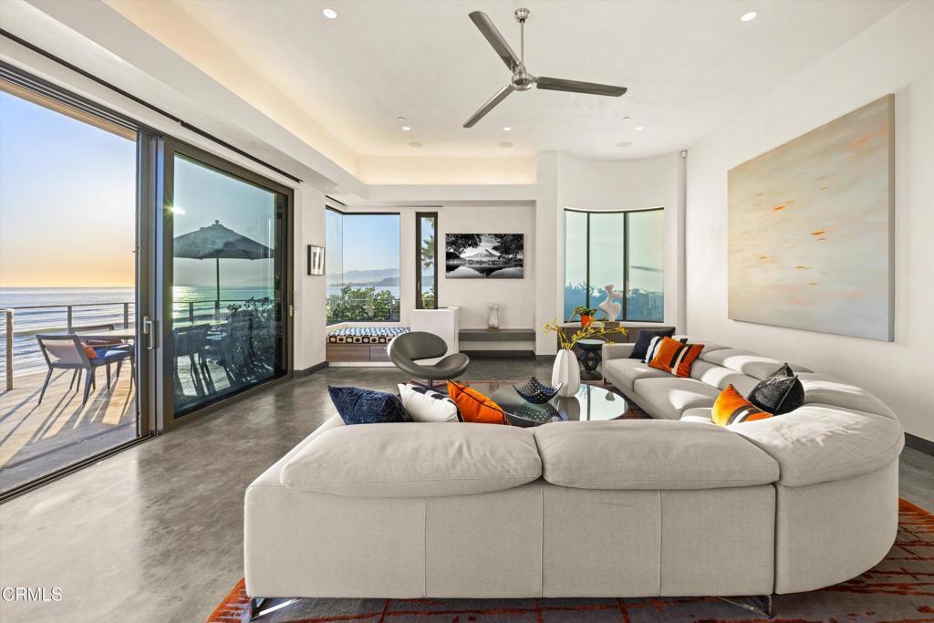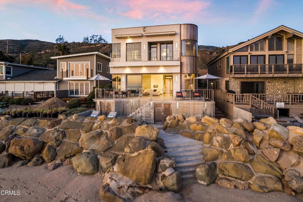 On a secluded stretch of beach, minutes from Santa Barbara, you will discover a modern masterpiece and one of California's most eco-conscious homes. A beacon of sustainable luxury. Designer John Turturro displayed almost DaVinci level precision with a profound use of space, a marriage of science and art in a project that took six years to complete. Finely crafted details, subtle surfaces and minimalist feel are complimented by Poggenpohl cabinetry, shelving and closet treatments that celebrate the beauty and timelessness of the essence of the home. Curated artwork, sculptures, Louis Poulsen statement light fixtures and designer furnishings from Roche Bobois are included with this turnkey luxury offering.A titanium exterior trim, dramatic walls curved of glass, polished concrete floors and artisanal details come together in creating a vision of luxury beachfront living that few have ever experienced. The high-performance exterior shell and passive solar system, compliment a net-zero energy concept with a home that will anticipate your every wish as you relax, entertain and indulge in luxury coastal living redefined.