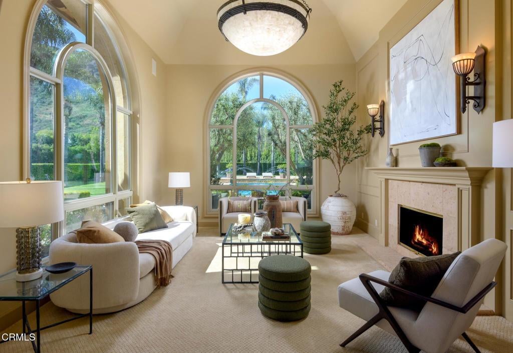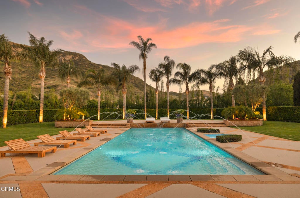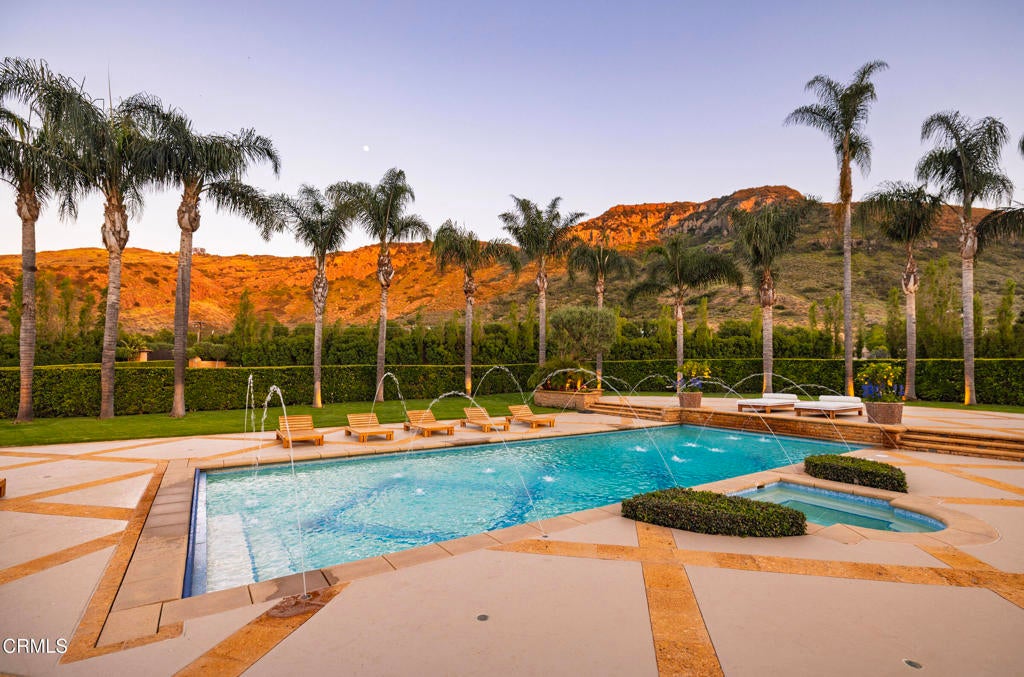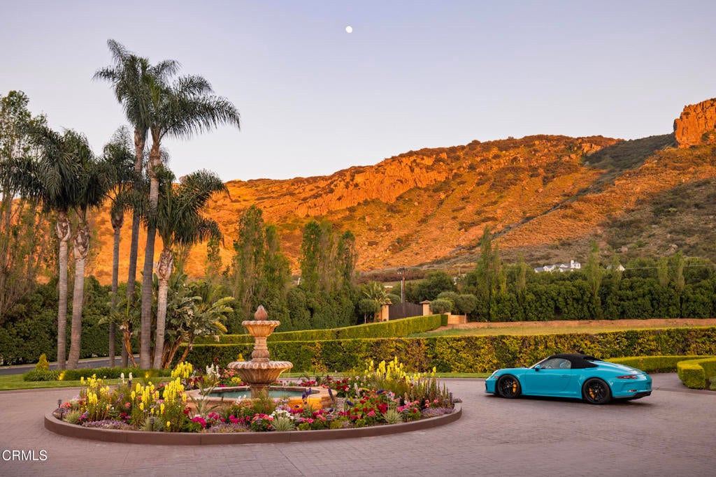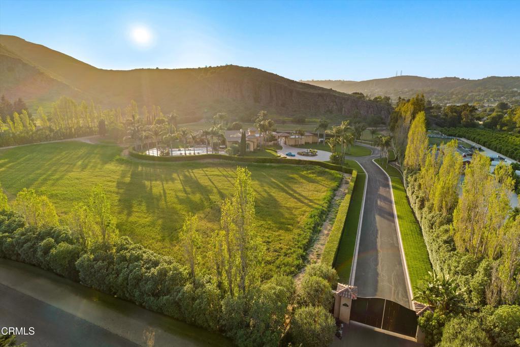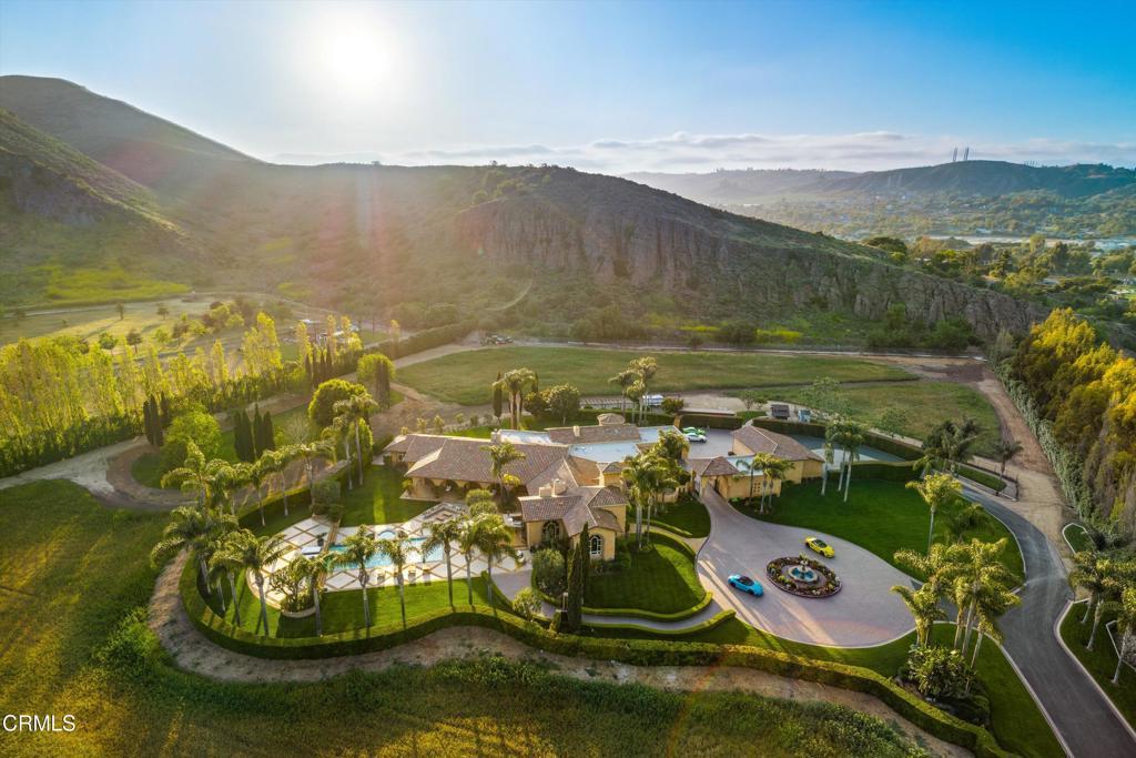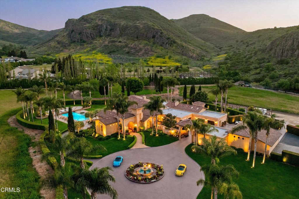 Ultra-Private Luxury Mediterranean Resort-like Sanctuary in the Santa Rosa Valley! Discover unparalleled privacy and prestige in this exquisite 10-acre Estate in Santa Rosa Valley's most exclusive, celebrity-favored enclave. Set against a breathtaking mountain backdrop, this gated retreat perfectly marries timeless architecture with the graceful, understated grandeur of California living. A grand gallery-style hallway welcomes you with soaring ceilings, gleaming marble floors, and custom lighting, creating a lavish and unforgettable first impression. Walls of floor-to-ceiling windows and elegant French doors flood the interiors with natural light, framing panoramic views and seamlessly connecting indoor and outdoor living. The home's design feels inherently at home here, nestled gracefully within the landscape and harmonizing with the serene beauty of the valley. This ultimate family compound offers over 7,500 square feet of refined single-level living, featuring five bedrooms and seven bathrooms. The show-stopping primary suite is a private sanctuary, while spacious guest suites and thoughtfully designed living areas provide ideal spaces for family, creativity, and retreat. An Entertainer's Dream, the state-of-the-art chef's kitchen, outfitted with professional-grade appliances and elegant finishes, is a culinary masterpiece. For alfresco dining, the outdoor kitchen boasts a wood-fired pizza oven, a built-in BBQ, and an expansive patio perfect for gatherings under the stars. The resort-style grounds feature a sparkling pool with graceful fountains, manicured lawns, lush gardens, and mature trees, offering a breathtaking backdrop for grand celebrations and tranquil relaxation. Enjoy unforgettable movie nights in the immersive theater or marvel at the mesmerizing 500-gallon saltwater aquarium. Every detail caters to discerning tastes, from an air-conditioned doghouse with filtered water to an eight-car garage ideal for collectors or entertainers. Fruit orchards dot the landscape, while a private sports field adds playful energy. Soaring red-tail hawks drift overhead, underscoring the Estate's peaceful exclusivity. More than a home, this extraordinary Estate is an immersive experience and a legacy to be cherished for generations. Furnishing is negotiable. Discover the ultimate in privacy, luxury, and California's graceful elegance--where every moment is utterly unforgettable! Welcome home!