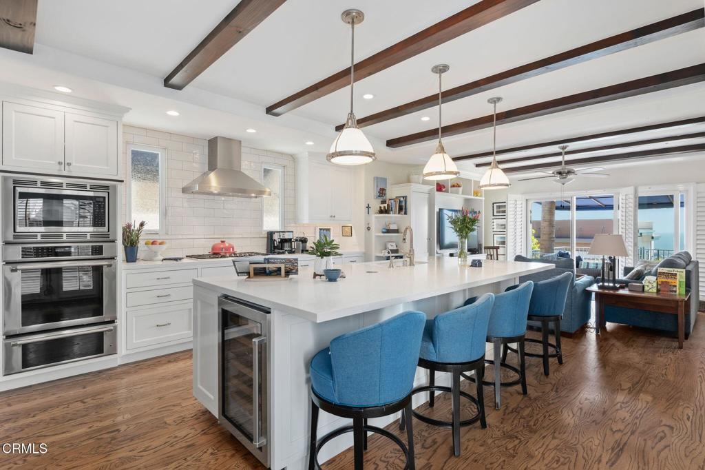 Experience timeless coastal elegance in this stunning Mediterranean retreat located in Ventura's sought-after Hobson Heights neighborhood. Showcasing panoramic ocean, island, and mountain views, this 3,164 sq ft home features 3 bedrooms, 3.5 baths, and a design that blends comfort with sophistication.Originally built in 1989 and extensively renovated in 2018, the home offers elevated finishes throughout--from oak hardwood floors and high coffered ceilings to a dramatic dark marble fireplace in the light-filled living room. The open-concept layout flows seamlessly into the dining area and a gourmet kitchen with an oversized granite island, prep sink, Sub-Zero wine fridge, and abundant storage.The main-level primary suite is a true retreat with a private view balcony, sitting area, spa-inspired bath, and a walk-in closet with built-ins. The lower level includes two guest bedrooms, a stylishly appointed den with patio access, an office with a separate entrance, and a versatile bonus room perfect for a gym or studio. Enjoy outdoor living in the 1,307 sq ft private backyard with a built-in BBQ, fireplace, and lush landscaping featuring Meyer lemon and peach trees. With three fireplaces, recessed lighting, plantation shutters, and dual-pane Milgard windows, every detail has been carefully curated. A spacious three-car garage and upgraded systems, including newer ductwork and a Champion security system, complete this exceptional home.Don't miss your chance to own a piece of California coastal luxury in one of Ventura's premier neighborhoods. www.LincolnDrive.com
