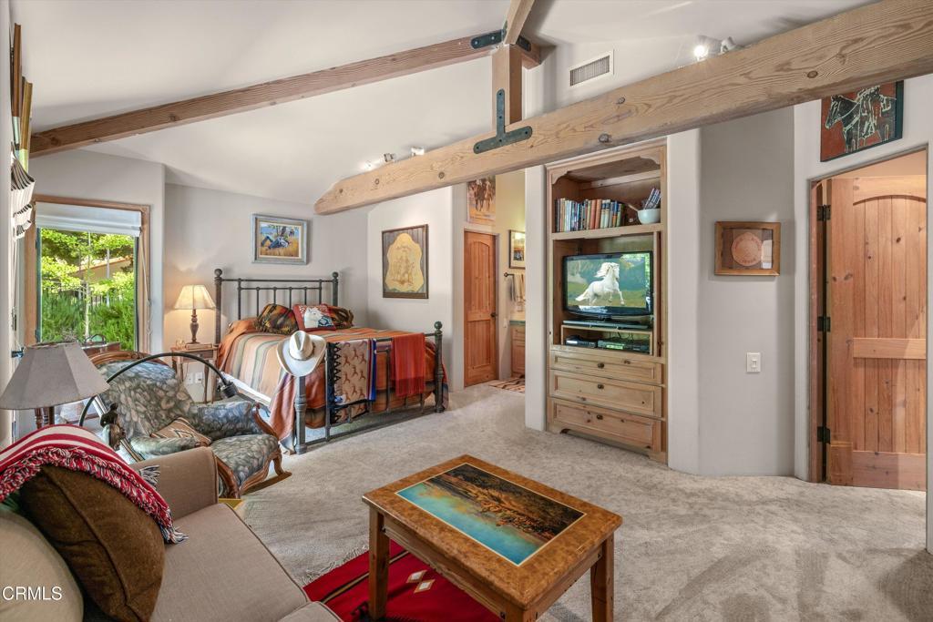 Tucked behind gates in the coveted Woodstock Ranch enclave, this exceptional Santa Ynez estate offers a rare blend of privacy, sophistication, and relaxed ranch living. Set on over 20+/- acres and surrounded by centuries-old oaks and manicured grounds, the property spans multiple thoughtfully designed structures, perfectly suited for entertaining, recreation, and retreat.At its heart is a 3,542+/- sq. ft. main residence where expansive living spaces flow seamlessly from indoors to out, ideal for everything from laid-back gatherings to elegant events. A 1,200+/- sq. ft. detached garage includes a gym and office, offering flexible space for work and wellness. The 600+/- sq. ft. cabana, with a kitchenette, bath, and lounge or sleeping area, serves as a charming guest quarters or poolside hideaway.A dramatic 2,000+/- sq. ft. party barn sets the stage for grand-scale entertaining, while a 4-stall barn with tack and storage rooms makes the property fully equipped for equestrian pursuits. Beyond the gates, residents enjoy access to miles of riding and hiking trails across Woodstock Ranch's 2,400+/- oak-dotted acres--one of the Santa Ynez Valley's most celebrated communities, known for its wide-open vistas, Mediterranean climate, and deep-rooted equestrian heritage.Just minutes from the acclaimed wineries, restaurants, and boutiques of Los Olivos and Santa Ynez, and a scenic drive to Santa Barbara's beaches, this peaceful estate captures the very essence of California ranch living.