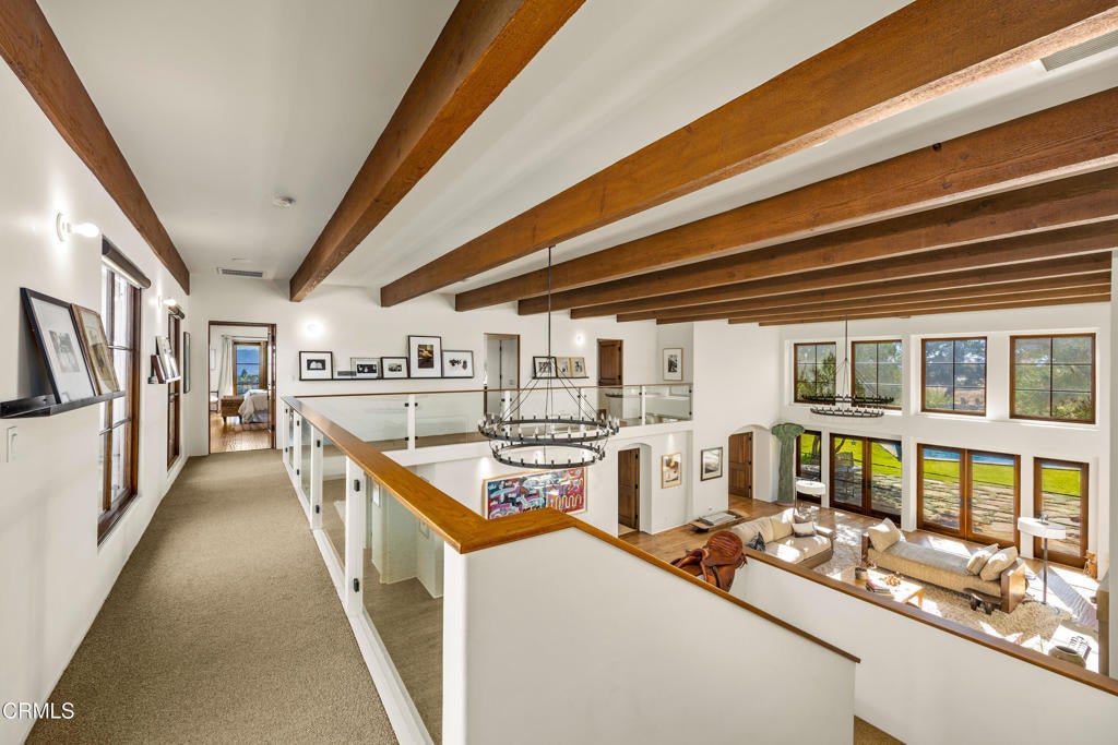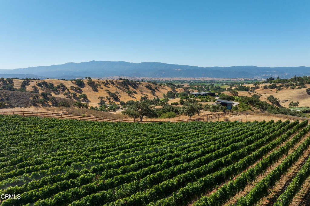 Commanding Hilltop Estate in Santa Ynez Wine Country. Elevated on nearly 20+/- acres of spectacular, unspoiled land, this estate stands as a force of nature--private, powerful, and impossible to overlook. With uncompromising 360 views, a working vineyard, and a deeply luxurious residence, this is not simply a home--it's a stronghold of elegance and self-sufficiency. The 6,236+/- sq. ft. main residence was fully reimagined, merging scale, sophistication, and structure. Massive wood-beamed ceilings crown a grand living room anchored by a formidable stone fireplace and framed by wrought iron chandeliers. Walls of French doors and picture windows pull the landscape inward--flooding every space with light and purpose. A chef's kitchen built to perform features a granite-clad island with seating, commercial-grade appliances, and a walk-in pantry. Formal and casual living areas flow effortlessly to the outdoors--designed for both high-impact entertaining and quiet seclusion. Six bedrooms and eight bathrooms deliver space, scale, and autonomy. Dual primary suites offer private wings with deep soaking tubs, walk-in showers, gym or office space, and breathtaking views to the surrounding landscape. Heated floors and UV-protected doors and windows. Every inch has been considered. Outside, the land tells its own story--bold, abundant, and productive. Over 4,000 own-root vines--Mourvedre, Grenache, Syrah, Roussanne, Viognier, and Sauvignon Blanc--stand in perfectly aligned rows...producing fruit of serious quality. A vast orchard supplies dozens of rare and heirloom varietals, while mature olive trees yield a robust annual harvest for the estate's own Sunset Harvest Olive Oil Company.A two-bedroom, two-bath guest house ready for your personal enhancements, offers complete privacy for visitors, while a 10-foot-deep pool and expansive flagstone patio command center stage for recreation and relaxation.Located within the prestigious Woodstock Ranch, the property offers secured access to private wells, an extensive riding trail network, and a tightly managed infrastructure.This is a property for those who demand scale, presence, and capability. A fortress in wine country. A legacy that stands above.
