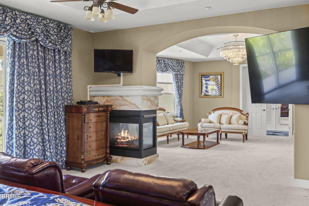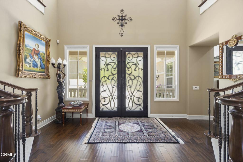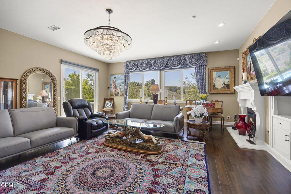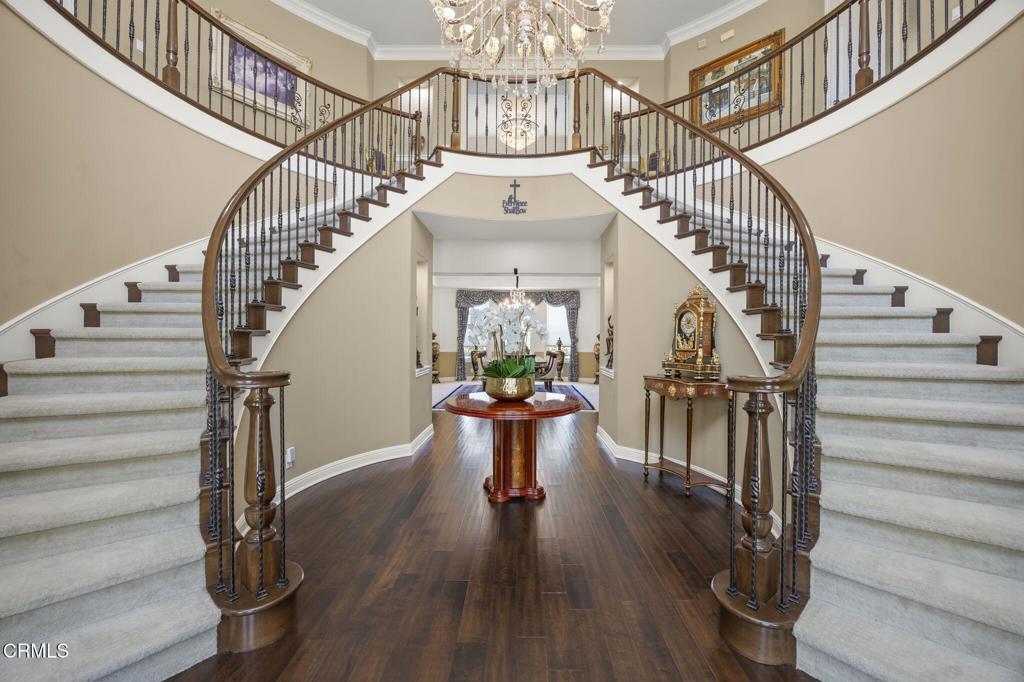 Exquisite Luxury Living in the Moorpark Country Club EstatesStep into refined elegance at 12390 Nelson Road, a grand residence nestled within the gates of Moorpark Country Club Estates. Perched along two scenic fairways, this remarkable estate offers over 5,800 square feet of thoughtfully designed living space with breathtaking views of the surrounding hills and championship golf course.Inside, a dramatic two-story foyer with a sweeping dual staircase sets the tone for timeless sophistication. The layout is ideal for both entertaining and everyday comfort, with a gourmet chef's kitchen that flows seamlessly into a spacious family room, and a formal dining room perfectly suited for hosting elegant gatherings. A private home office offers a quiet retreat for working or studying from home.With five generously sized bedrooms and five-and-a-half bathrooms, the floorplan includes a convenient guest suite on the lower level and an impressive primary suite upstairs complete with a cozy fireplace, spa-like bath with soaking tub and separate shower, dual vanities, dual walk-in closets, a private sitting room, and a balcony overlooking panoramic vistas.Beautiful hardwood flooring, architectural accents, and oversized windows enhance the home's classic Mediterranean charm. Other highlights include upstairs laundry, a walk-in pantry, and dual two-car garages offering ample parking and storage.Situated on nearly half an acre, this estate offers the perfect blend of privacy, elegance, and convenience. Tucked away in the rolling hills of Moorpark, you'll feel a world apart--yet you're just minutes from local shopping, dining, and top-rated schools. Enjoy easy access to the best of Southern California: coastal getaways like Malibu and Ventura are less than an hour away, and you can be in Los Angeles in under 45 minutes. Whether you're heading to the beach, the city, or the mountains, this location places you at the center of it all--while still offering the serenity of country club living.Experience resort-style living at its finest--schedule your private tour today.