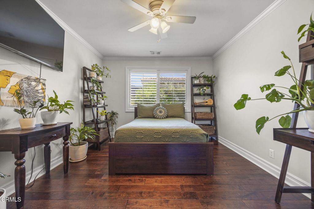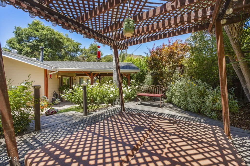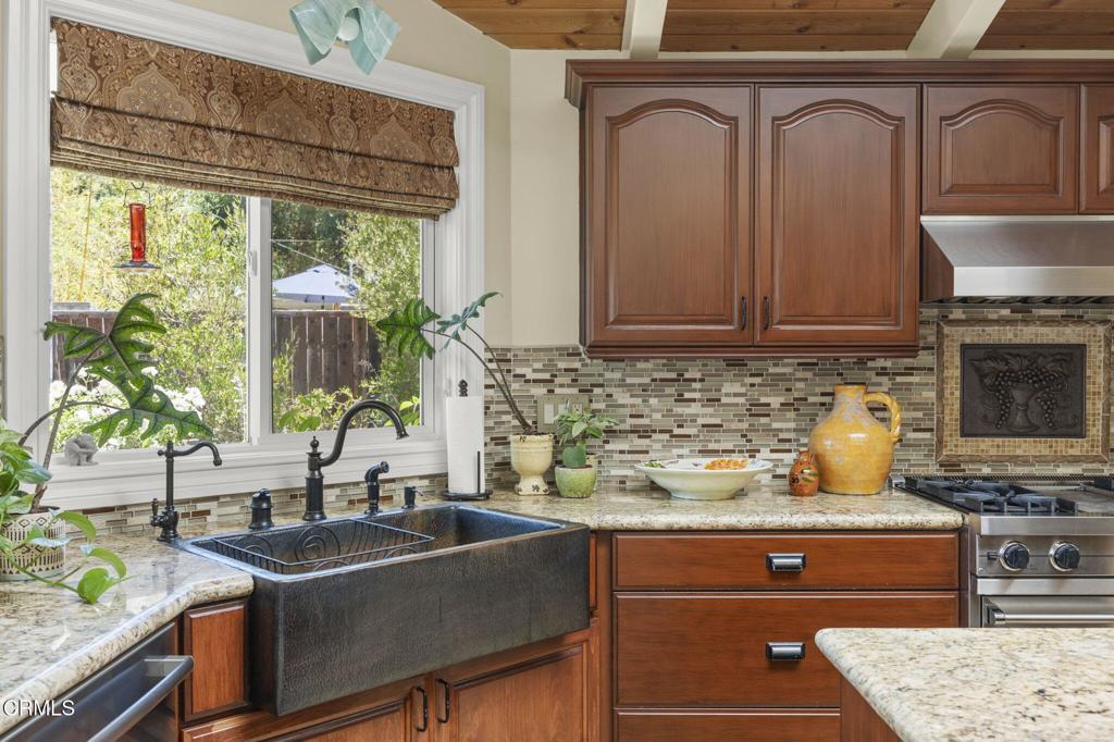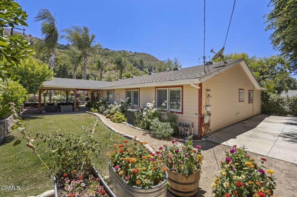 Welcome to Your Entertainer's Dream Home in the Heart of Ojai!This stunning 3-bedroom, 2.5-bath residence with a dedicated office combines elegant upgrades with an enviable lifestyle--nestled in one of Ojai's most picturesque and sought-after neighborhoods.Step inside to find rich hardwood flooring, 6-inch baseboards, crown molding, recessed lighting, and thoughtful details throughout. The spacious bedrooms feature custom closet organizing systems, while the main bath delivers a spa-like escape with a jacuzzi soaking tub.The chef's kitchen shines with granite countertops, a high-end Viking range, and beautiful natural light--perfect for casual mornings or gourmet evenings. Flowing seamlessly into the living room, you'll find an entertainer's bar with a wine fridge, built-in entertainment center, and a cozy gas fireplace. French doors open wide to a private backyard sanctuary.Whether you're hosting under the covered patio, grilling at the built-in BBQ, or soaking in the outdoor jacuzzi, this yard is made for unforgettable gatherings. Surrounded by native plants, succulents, and a bounty of fruit trees--orange, lime, lemon, peach, apple, and even a pixie tree--this fully landscaped paradise invites you to unwind. Bonus: full RV parking with hookups for visiting guests.Smart and secure features include Nest temperature control and wiring for a home alarm system.Beyond your door, experience all that Ojai has to offer--from serene hiking trails and lush nature preserves to seasonal summer festivals, artisan markets, and a thriving arts scene. Families will appreciate the area's excellent selection of private schools and a strong sense of community.This is more than a home--it's an invitation to live the Ojai lifestyle to the fullest