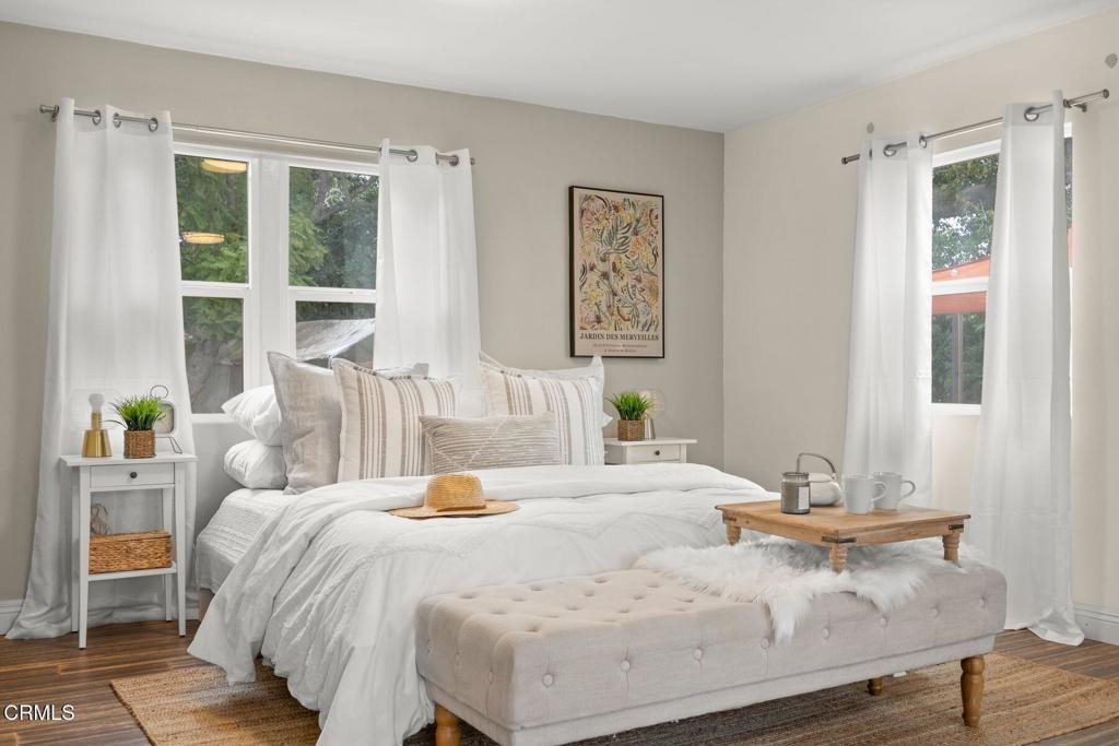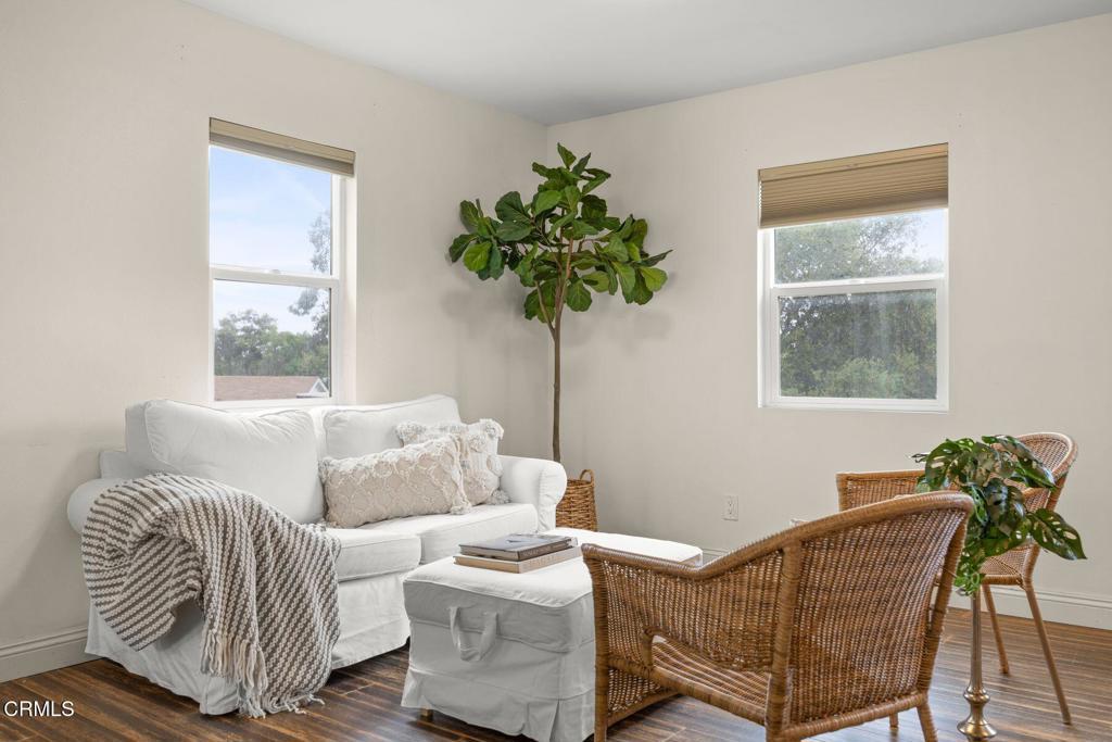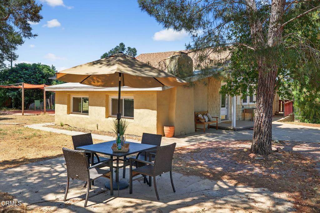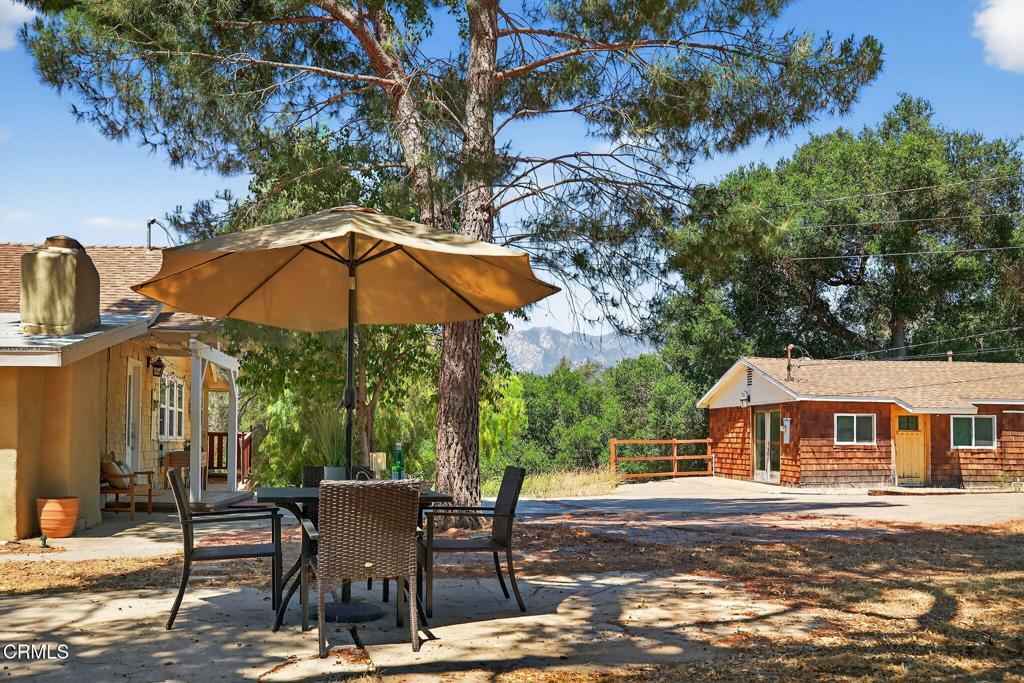 Welcome to Your Private Ojai Oasis...Two Beautiful Single-Story Homes on 1.29 Acres! Discover the perfect blend of comfort, charm, and versatility with this rare Ojai property featuring two separate single-story homes and a large multi-purpose workshop/storage building, all set behind a secure electric gate on a spacious and beautifully maintained 1.29-acre lot. The main house offers 3 spacious bedrooms and 2 full bathrooms across a thoughtfully designed floor plan. Step into the inviting living room with a cozy wood-burning fireplace, perfect for relaxing evenings. The gourmet kitchen boasts white shaker cabinets, stainless steel appliances, granite countertops, and a decorative tile backsplash. The expansive primary suite includes a private sitting area, remodeled bathroom with granite countertops, and barn-style closet doors for added character. Engineered bamboo flooring, stone tile, and a dedicated laundry room (washer & dryer included) complete the main residence. The guest house is equally impressive with 2 bedrooms, 2 full bathrooms, and an open-concept living space featuring the same high-quality finishes--white shaker cabinets, stainless steel appliances, granite counters, and tile accents. Enjoy a private laundry room, a tankless water heater (less than 1 year old), and an attached 2-car garage--perfect for extended family, guests, or rental income. A large, detached building offers ideal space for a workshop, studio, storage, or additional garage use--endless possibilities for creatives, hobbyists, or small business owners. Outside, enjoy fresh eggs from your own chicken coop, ample room to garden, and space to relax under the stars. Located just minutes from Villanova School, Ojai Valley Trail, the Ojai Valley Inn, and the charming downtown Ojai with its unique shops and top-rated dining. This is a truly unique opportunity to own a versatile, move-in-ready compound in the heart of the Ojai Valley. Whether you're seeking multi-generational living, investment potential, or your own private sanctuary, this property checks all the boxes!