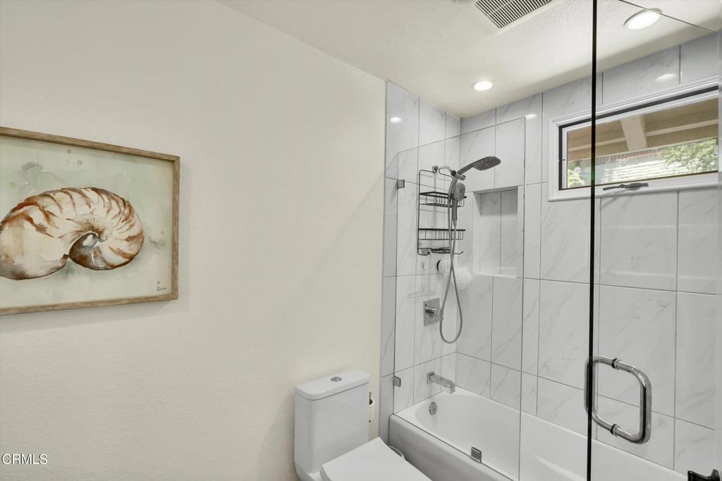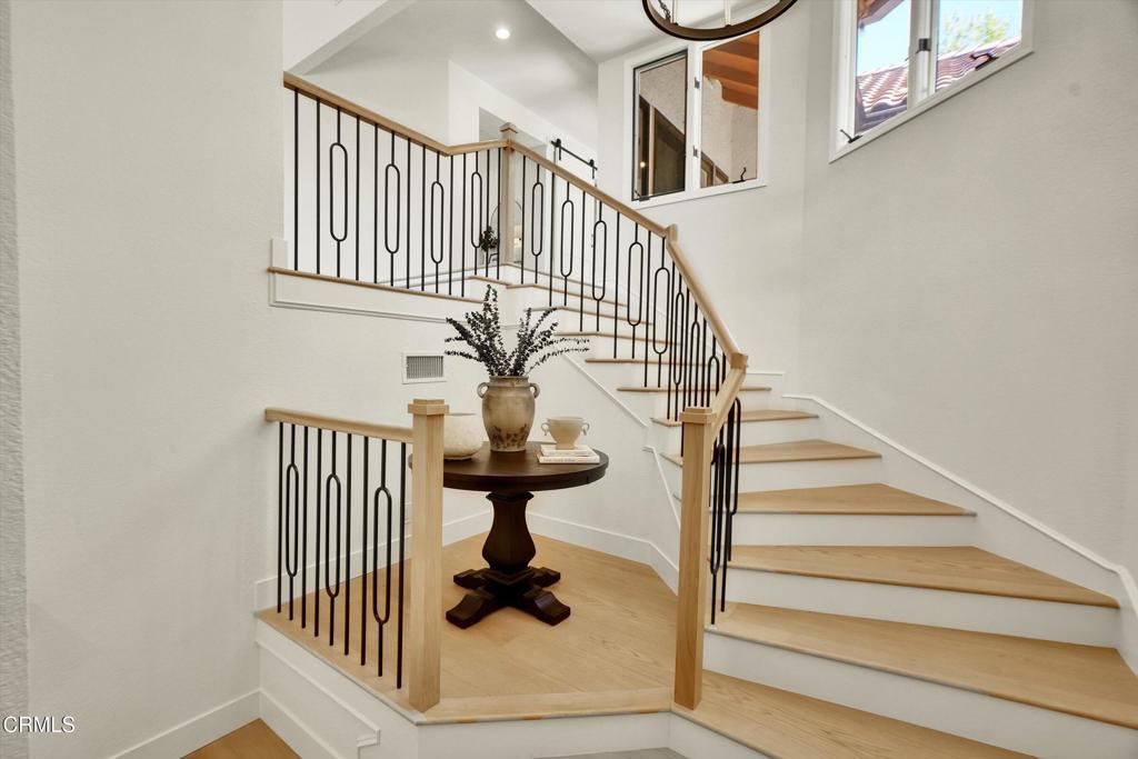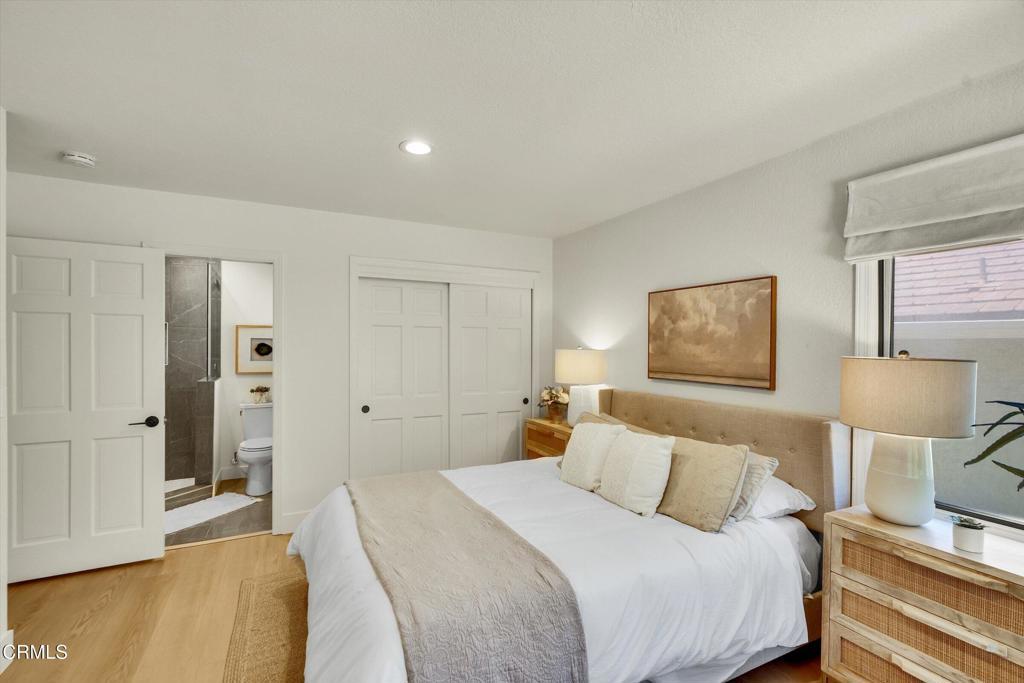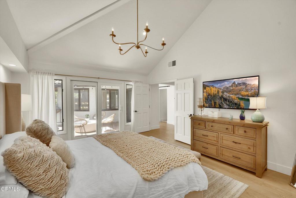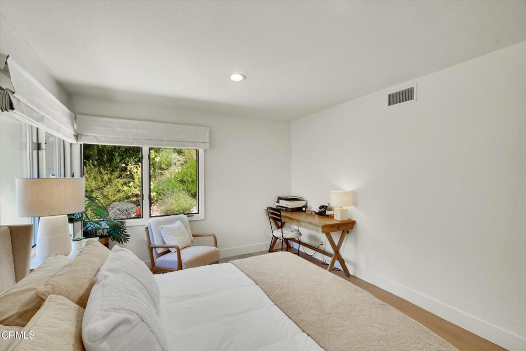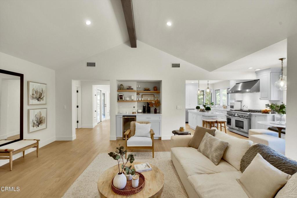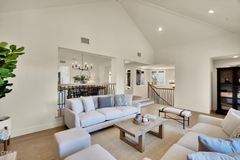 Rare opportunity to own a fully renovated Master Series home in the prestigious North Ranch Country Club. One of only a handful of detached Westlake Village homes under $2M offering over 2,500 sq ft and move-in ready designer finishes. Across from golf course, perfect for those who want North Ranch prestige with a lock-and-leave, low-maintenance lifestyle. A home of exceptional character, thoughtfully designed with unique architectural details that set it apart from the norm. Fully detached home. Main living area is all on one level, with room for an elevator, 3 bedroom + office. Wide-plank luxury vinyl flooring flows throughout, paired with a custom white oak stair rail. Formal living and family rooms feature stacked stone fireplaces and soaring vaulted ceilings. The gourmet kitchen features custom off-white cabinetry with Champagne Bronze fixtures, Silestone quartz countertops with gold veining, and soft-close pullouts. Top-tier Thermador appliances include a 6-burner range with griddle, 3 ovens, warming drawer, paneled refrigerator, and built-in breakfast nook. The spacious primary suite is a serene retreat with walk-in closet and spa-style bath. The bath features floor-to-ceiling quartz slabs, freestanding soaking tub, oversized shower, and dual-sink vanity. The bedroom opens to an entertainer's courtyard with fireplace. A new coffee bar with wine refrigerator and quartz counters adds a sophisticated touch off the family room. Additional upgrades include designer light fixtures, custom window treatments, fresh neutral paint inside and out, en-suite baths and powder room, lush landscaping, newer tile roof, FULLY PAID SOLAR, new soft water and reverse osmosis systems, oversized 2-car garage with golf cart space, and single-level living convenience. Low HOA of $350/quarter and Blue-Ribbon schools. Elegant living with designer-curated finishes throughout, plus finished office/workshop off the garage. This turnkey North Ranch home won't last at this price point.