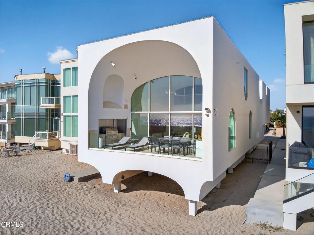 The Vault House - A Modern Architectural Icon on Mandalay Shores.Welcome to The Vault House, a globally recognized architectural masterpiece designed by Johnston Marklee, set on the sands of Mandalay Shores with 40 feet of coveted oceanfront. Located on one of the largest beachfront lots, the home extends beyond the neighboring residences to the north and south offering unmatched privacy and truly exceptional panoramic views.This one-of-a-kind residence offers 3,727 square feet of visionary design, seamlessly blending form, function, and natural light to create an unforgettable beachfront living experience.Featuring 4 spacious bedrooms and 5 luxurious bathrooms, the home is organized through a rhythmic series of unidirectional vaulted rooms, each sculpted to frame ocean views and filter sunlight throughout. Elevated above the sand for coastal resilience, the primary living spaces are arranged across a soaring, vaulted interior that feels both expansive and intimate.At the heart of the home is a sunlit courtyard that connects public and private wings, with vaulted ceilings varying in curvature to define each space from the sleek kitchen to serene sleeping quarters. The architecture is both minimalist and monumental, with a crisp white exterior made of seamless Grail Coat and warm limestone floors flowing throughout the interior.The contemporary layout encourages indoor-outdoor living, capturing panoramic views of the Pacific Ocean from multiple vantage points. Built to the highest coastal engineering standards, the foundation is designed to withstand the elements while the inland-facing garage is thoughtfully engineered to absorb impact in the event of storm surge.Winner of multiple international awards including Wallpaper Magazine's Best New Private House and an American Architecture Awards. The Vault House is more than a home. It's a museum-worthy statement on the future of coastal architecture.Rarely does a property of this architectural significance come to market. Come experience modern beachfront living like never before.