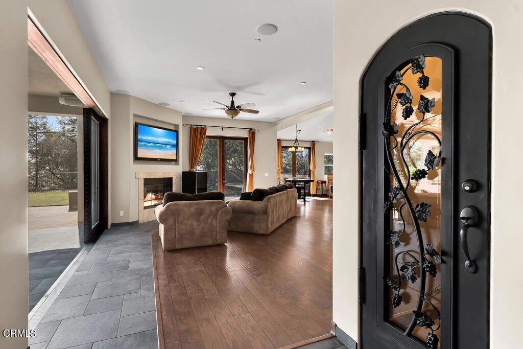Tucked away on a quiet, flat cul-de-sac in the coveted Las Posas Estates, this spacious and versatile home offers breathtaking views and room to grow. Step through custom iron and glass double doors into a light-filled great room and dining area where natural light floods every corner. Designed for flexibility and comfort, this home features two primary suites on the main level--perfect for multigenerational living--plus a total of five bedrooms, a bonus room, and an oversized loft. Built-in desks in the great room create functional spaces for work, study, or creativity. Set on a large, flat lot, there's ample room for a boat, trailer, or toys, and even space for a future pool. The accordion-style patio doors open seamlessly to a covered outdoor living area with a fireplace, creating the ideal setting for indoor-outdoor entertaining. Upstairs, a generous deck showcases sweeping views from the Santa Monica Mountains, Point Mugu, the Pacific Ocean, the Channel Islands then around to the Topa Topa mountains--spectacular sunsets await you year-round. The vaulted-ceiling game room offers space for a pool table, poker nights, and a potential wet bar. Additional highlights include a wine cellar, walk-in pantry, three fireplaces, and a 2008 addition that doubled the home's square footage, adding a new primary suite, expanding the garage, adding a new upstairs level, and reimagining the layout for modern living. The oversized 2-car garage is extra deep and tall, while the separate RV garage accommodates vehicles up to 40'. Thoughtful upgrades include laminate wood and slate-look porcelain tile flooring, a handicap-accessible second primary suite, and artificial turf for low-maintenance yards. Even the driveway offers recreation with half-court basketball lines etched in. Located near three private country clubs, just 20 minutes to the beach, and under an hour to both Santa Barbara and Los Angeles--this is Camarillo living at its finest.