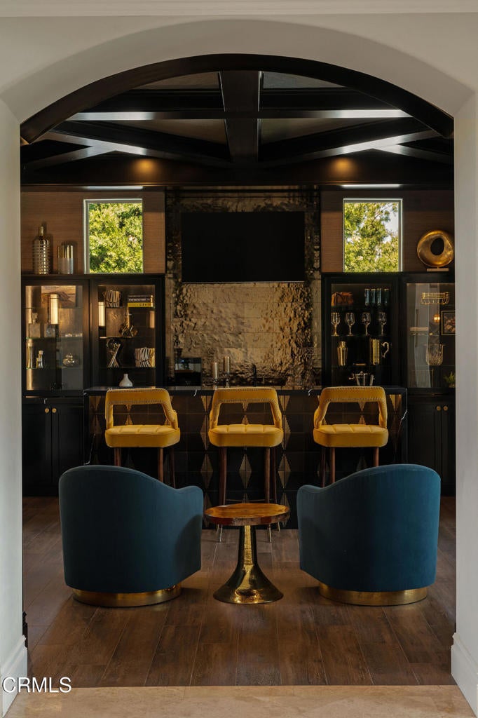 Breakfast Bar, Built-in Features, Balcony, Ceiling Fan(s), Crown Molding, Cathedral Ceiling(s), Coffered Ceiling(s), Separate/Formal Dining Room, Eat-in Kitchen, High Ceilings, Open Floorplan, Pantry, Quartz Counters, Recessed Lighting, Storage, Two Story Ceilings, Bar, Bedroom on Main Level, Dressing Area, Entrance Foyer, Main Level Primary