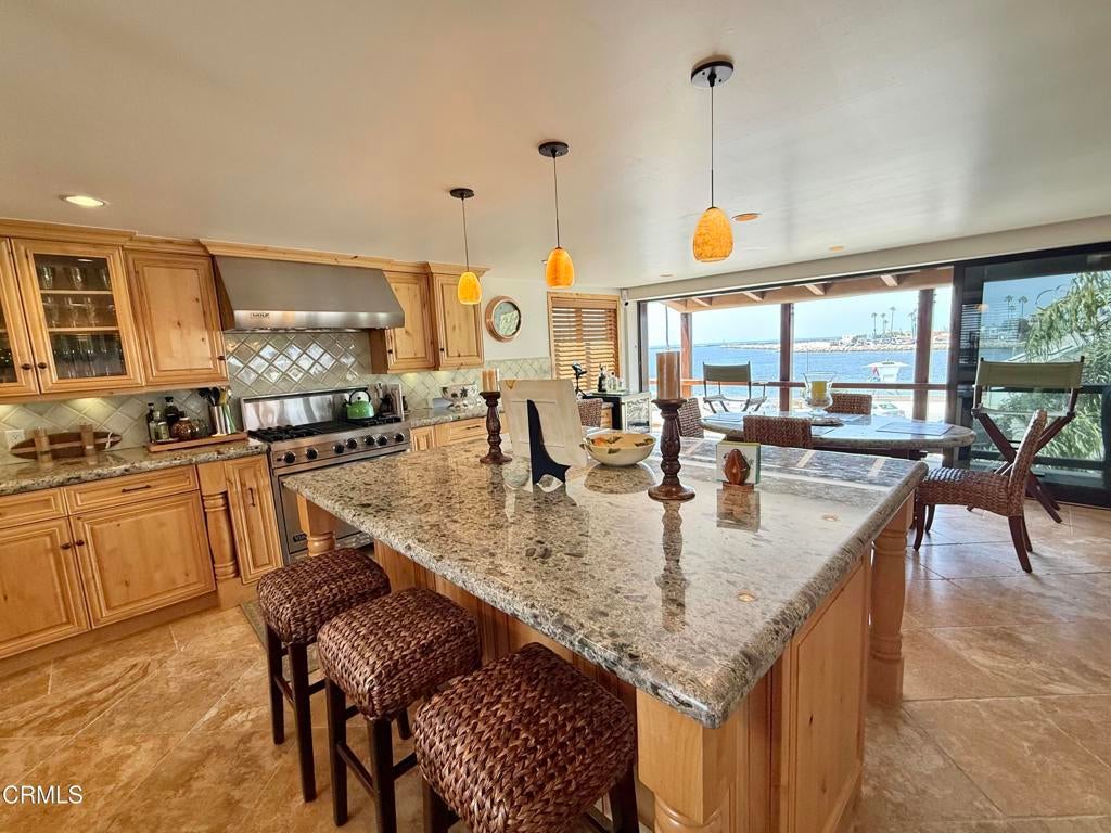 Expansive Water Views!! Discover your private Shangri-La at the entrance to Channel Islands Beach & Harbor--where luxury living meets panoramic ocean, island, and sunset views.This extraordinary 4-level beach home is a masterpiece of design and craftsmanship, offering captivating views from nearly every room and multiple outdoor decks on the 2nd, 3rd, and 4th level.Built with meticulous attention to detail, the home showcases natural stone flooring, solid knotty Alder wood cabinetry and doors, and a grand Brazilian Mahogany staircase that elevates the home's coastal elegance.The first level features a private guest quarters with its own entrance, guest bedroom & bath plus family room, wet-bar, laundry area, ideal for visitors or multigenerational living.On the second floor, soak in even more coastal views from the family room and step out to a view deck with ocean breezes. Entertain with ease at the built-in wet bar or unwind in the spacious guest bedroom and full bath. The primary suite offers tranquil harbor views and a spa-like en-suite bath with an oversized walk-in shower, jetted tub, and double vanity.An elevator provides effortless access to all floors, including the third level, where the home truly shines. Soaring custom wood beam ceilings, dramatic ocean views, and a stunning open-concept living space await. The gourmet kitchen is fitted with Viking Professional stainless appliances and striking granite countertops. The living area, complete with fireplace, flows seamlessly to an expansive wraparound deck--perfect for entertaining or relaxing by the sea.Crowning the home is the fourth-floor rooftop deck, offering 180 views of the beach, harbor, islands and marina. Complete with an outdoor fireplace, built-in BBQ, and refrigerator, this is the ultimate setting for sunset soirees or your own private sky lounge. This view location is a rare opportunity to own a legacy coastal property blending luxury, design, and the very best of beachside living.