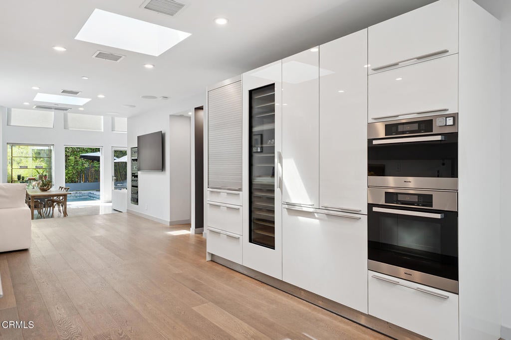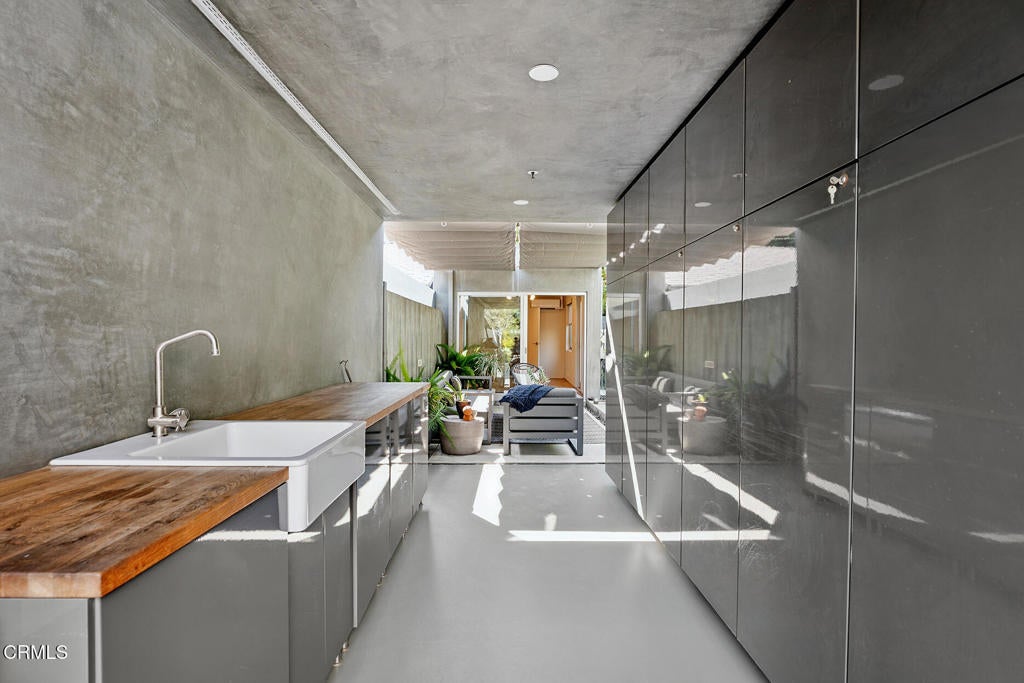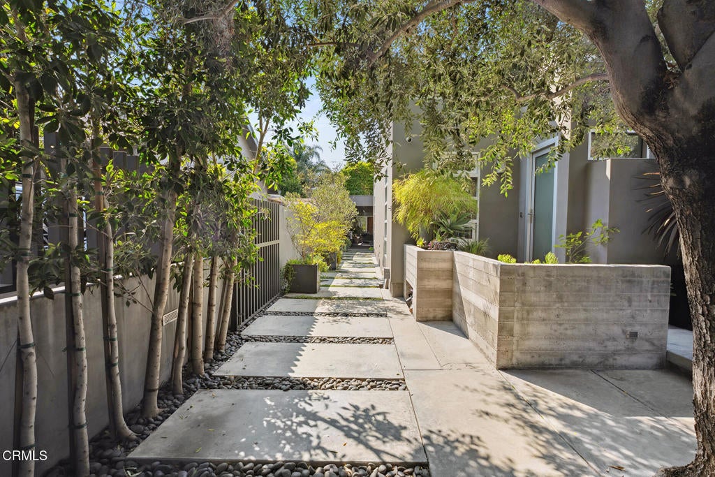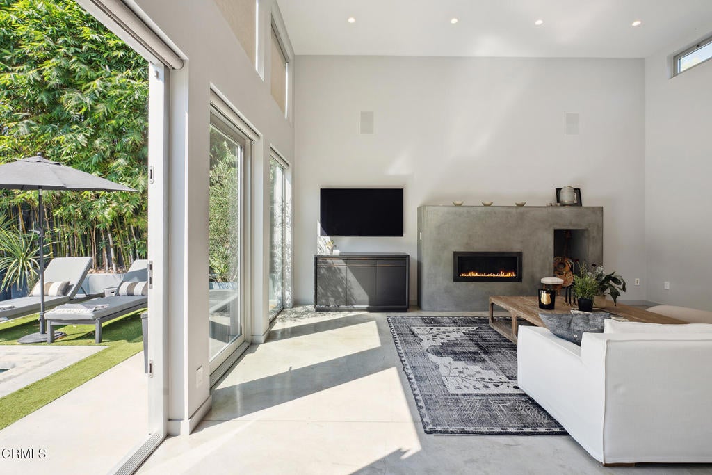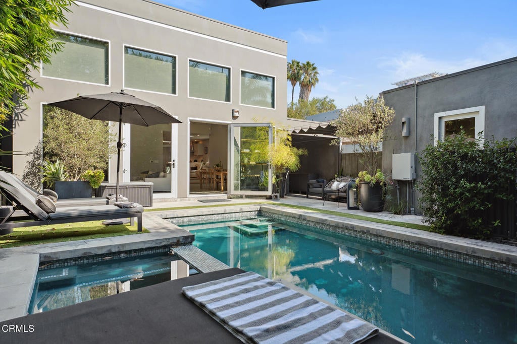 Behind sleek double gates, this architectural modern offers the ultimate in privacy, style, and comfort. Designed with clean lines and high-end finishes throughout, this residence blends form and function in every detail.The entire home is wrapped in Fleetwood windows and doors, flooding interiors with natural light while maintaining a sleek modern aesthetic. Inside, oak floors lead through a Bulthaup kitchen outfitted with Gaggenau appliances, including refrigerator, wine fridge, range with oven and steamer, plus a Miele dishwasher--a true showcase for those who appreciate culinary design. For convenience, a Miele washer and dryer complete the home's top-tier appliance package. Skylights and glass walls illuminate the open layout, connecting the kitchen, dining, and lounge areas.At the heart of the home, the dramatic Great Room features soaring 14-foot ceilings, polished concrete floors, and a contemporary fireplace. Walls of glass open to the heated saltwater pool and spa, creating seamless indoor-outdoor living.Two serene bedroom suites each offer Siberian marble baths, while thoughtful upgrades elevate everyday living--a whole-home water filtration system and air conditioning with integrated air purification.Outdoors, entertain in style with a galley kitchen complete with BBQ, sink, and prep space. A fully legal guesthouse (with certificate of occupancy) adds flexibility, offering its own grotto-style bath. Additional highlights include secured storage and a water cistern reclamation system. Close proximity to the best restaurants in LA and walking distance from CedarsSinai Medical Center, this is the prime location for luxury living.
