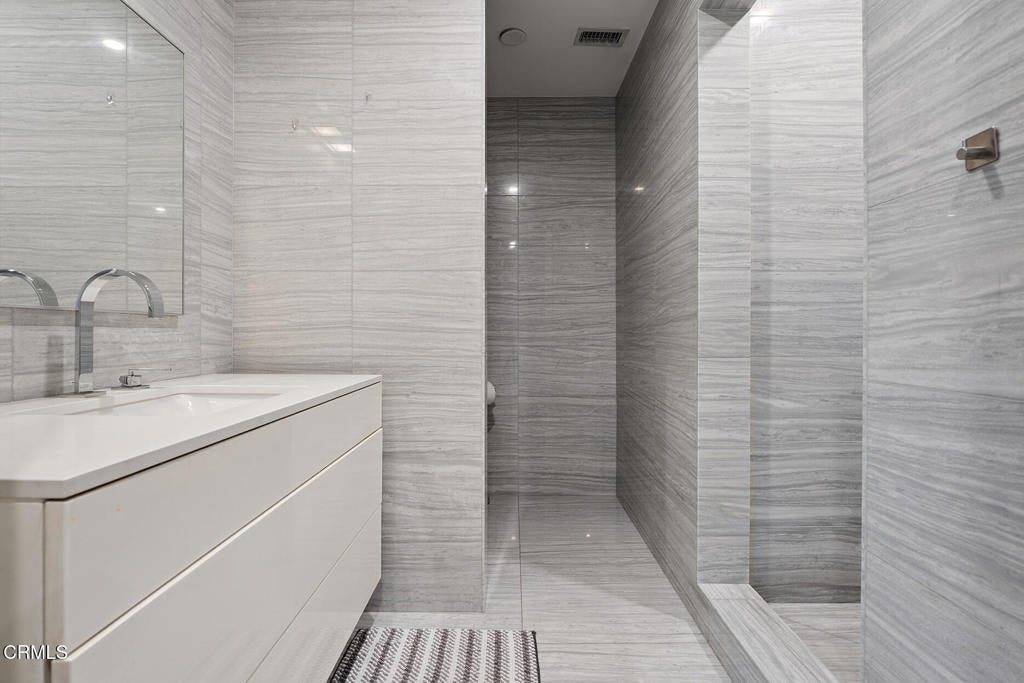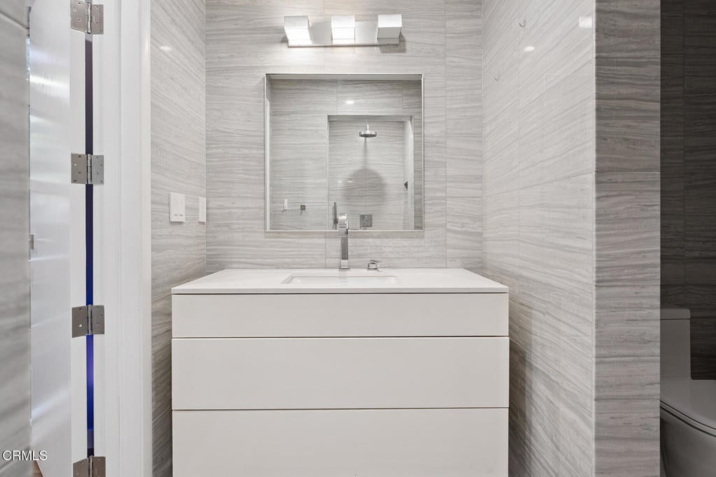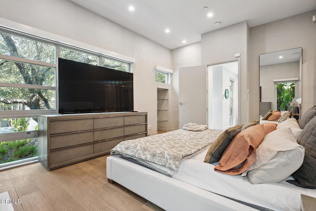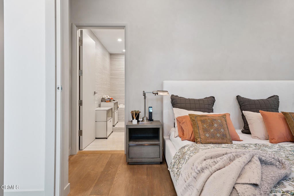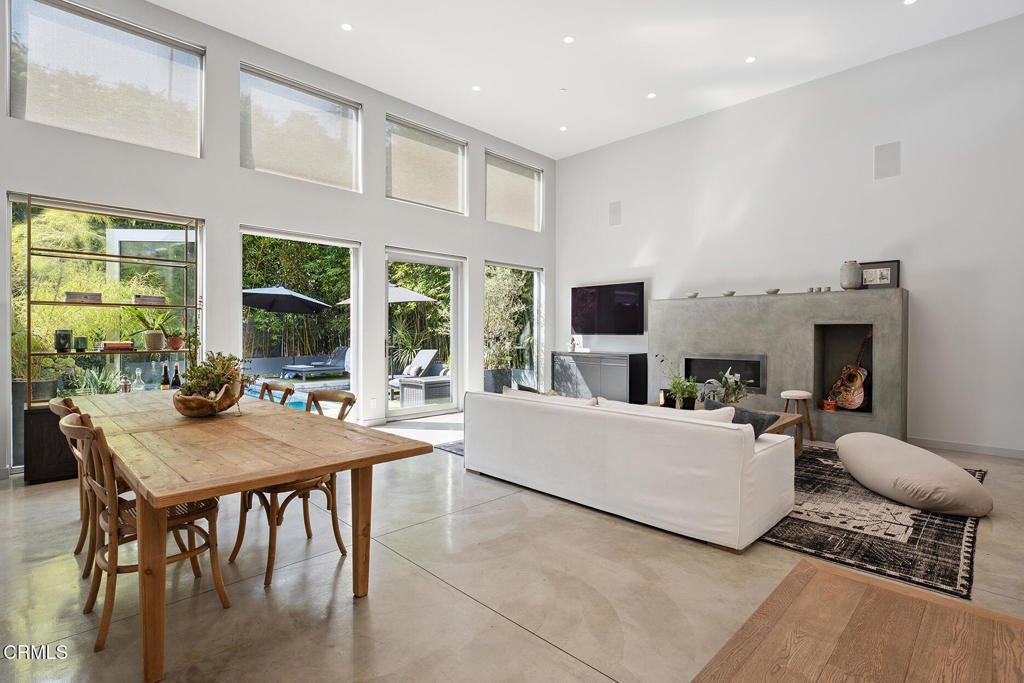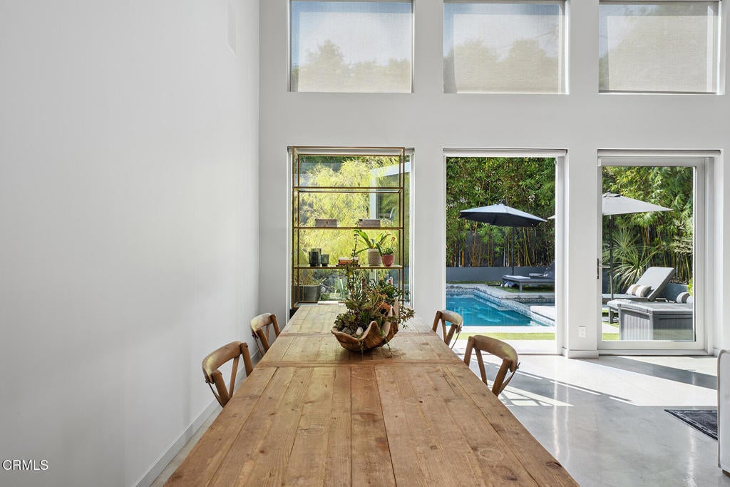 Behind sleek double gates, this architectural modern offers the ultimate in privacy, style, and comfort. Designed with clean lines and high-end finishes throughout, this residence blends form and function in every detail.The entire home is wrapped in Fleetwood windows and doors, flooding interiors with natural light while maintaining a sleek modern aesthetic. Inside, oak floors lead through a Bulthaup kitchen outfitted with Gaggenau appliances, including refrigerator, wine fridge, range with oven and steamer, plus a Miele dishwasher--a true showcase for those who appreciate culinary design. For convenience, a Miele washer and dryer complete the home's top-tier appliance package. Skylights and glass walls illuminate the open layout, connecting the kitchen, dining, and lounge areas.At the heart of the home, the dramatic Great Room features soaring 14-foot ceilings, polished concrete floors, and a contemporary fireplace. Walls of glass open to the heated saltwater pool and spa, creating seamless indoor-outdoor living.Two serene bedroom suites each offer Siberian marble baths, while thoughtful upgrades elevate everyday living--a whole-home water filtration system and air conditioning with integrated air purification.Outdoors, entertain in style with a galley kitchen complete with BBQ, sink, and prep space. A fully legal guesthouse (with certificate of occupancy) adds flexibility, offering its own grotto-style bath. Additional highlights include secured storage and a water cistern reclamation system. Close proximity to the best restaurants in LA and walking distance from CedarsSinai Medical Center, this is the prime location for luxury living.