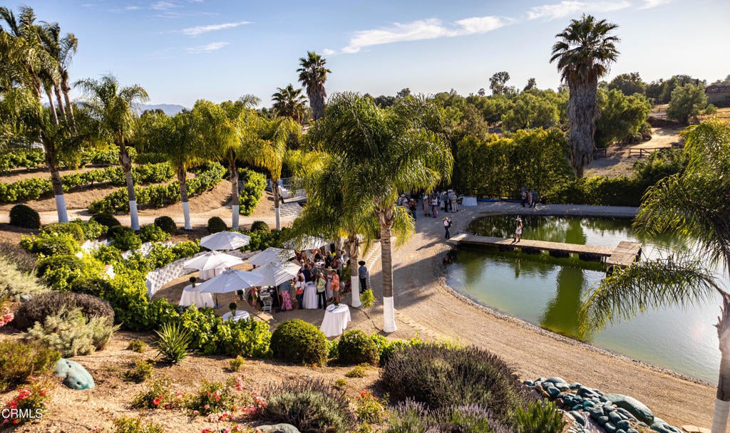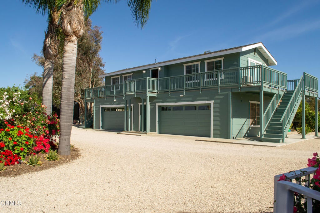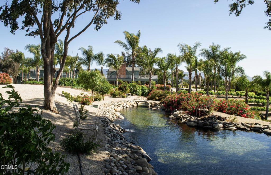 Resort-Style Ranch! This meticulously maintained 7.23-acre estate offers luxury, sustainability, and resort-style living with equestrian and canine amenities. Ideal for those who value open space and a self-sufficient lifestyle, the property features abundant well water, two solar systems, three water meters, and a commercial-grade drip irrigation system. A high-yielding well supplies the entire property, including a private lake, while solar systems power the main residence and well. A separate commercial property with its own entrance includes 3-bedrooms, 2-baths with multiple office spaces and an oversized yard, creating income potential and added flexibility. Towering palms, lush table grapes, and sweeping views of the Santa Ynez and San Rafael Mountains set a stunning scene. Two one-one-bedroom apartments above dual garages provide guest or staff accommodations. Expansive decks and patios offer seamless indoor-outdoor living, with the upstairs primary suite featuring a private deck and breathtaking views.Located off Highway 154 with ample trailer space, this estate is a rare blend of comfort, luxury, and off-grid living. Live the dream in your own private paradise.